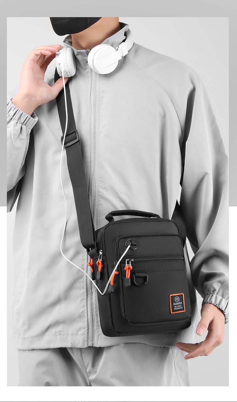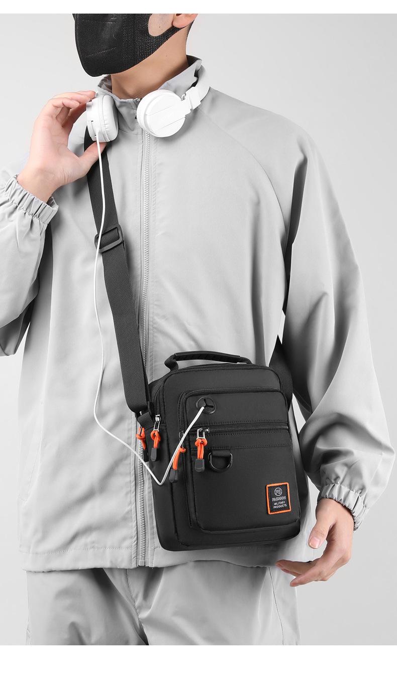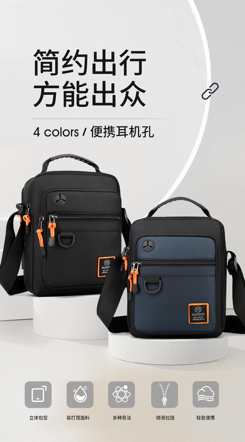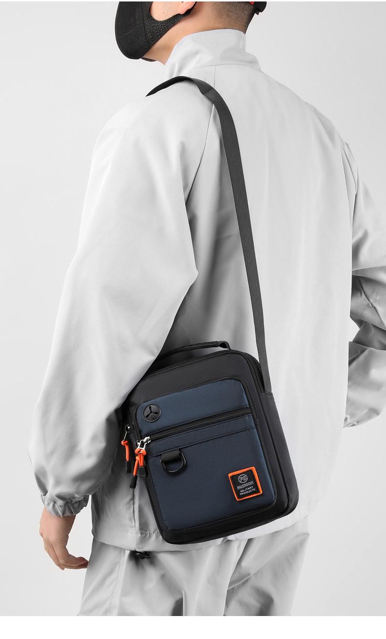 Bolso de Hombro Simple y Moderno para Hombre Color Contrastante Nylon Impermeable Casual Bandolera Viaje al Aire Libre Venta Directa de Fábrica