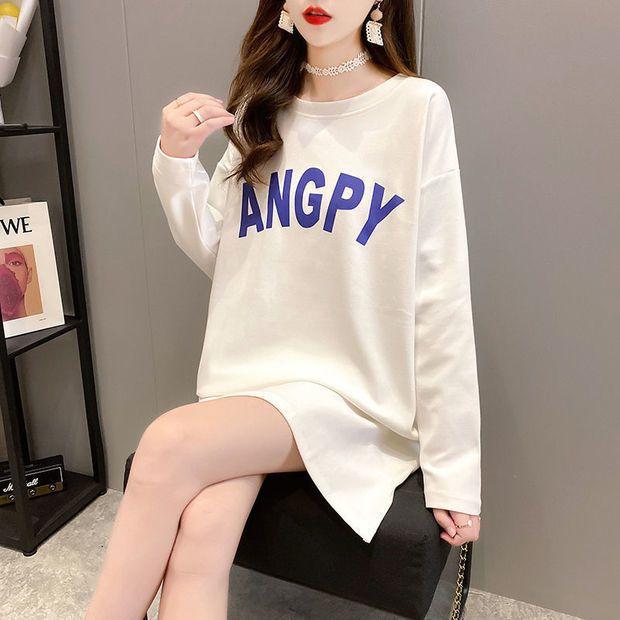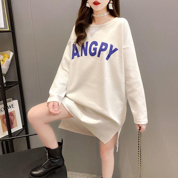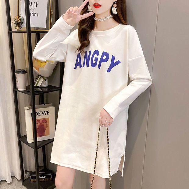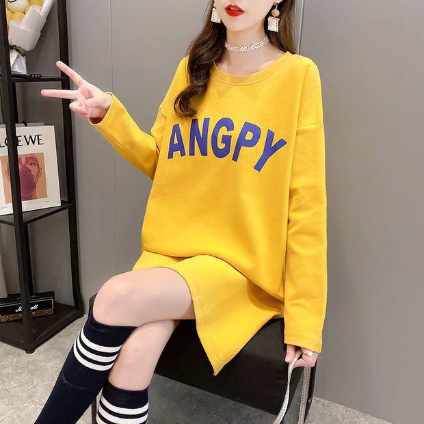 Vestido de maternidad Largo medio Falda sudadera Primavera y otoño Estilo coreano Suelto Manga larga Camiseta para mujer embarazada Top Otoño Delgado