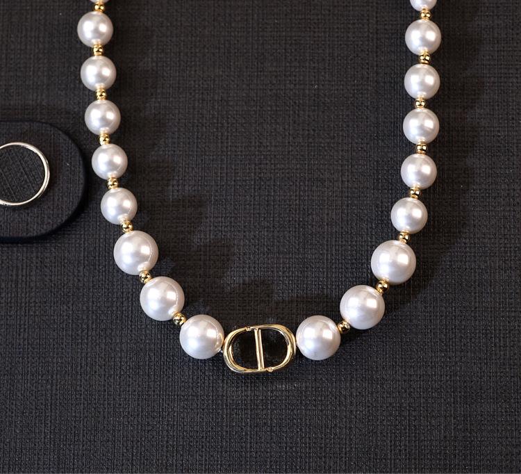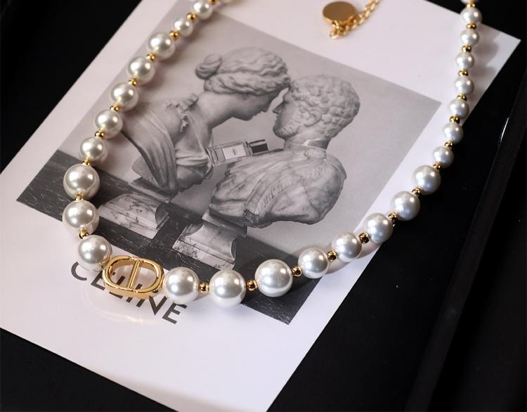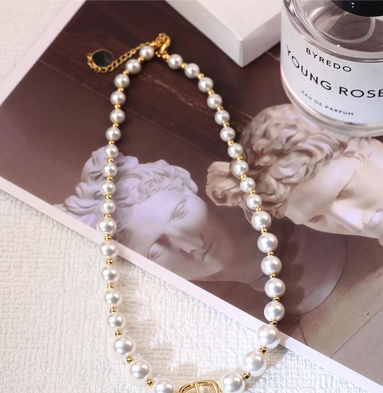 Collar de perlas con degradado D Home, elegante gargantilla de nicho de lujo ligero, cadena de clavícula retro estilo Chanel de alta calidad