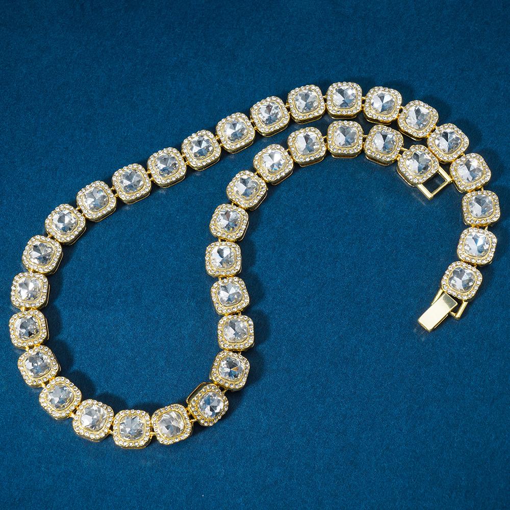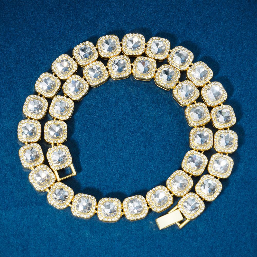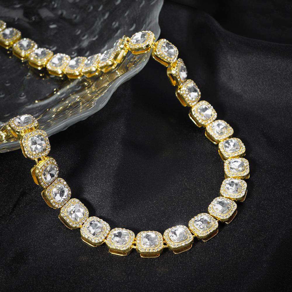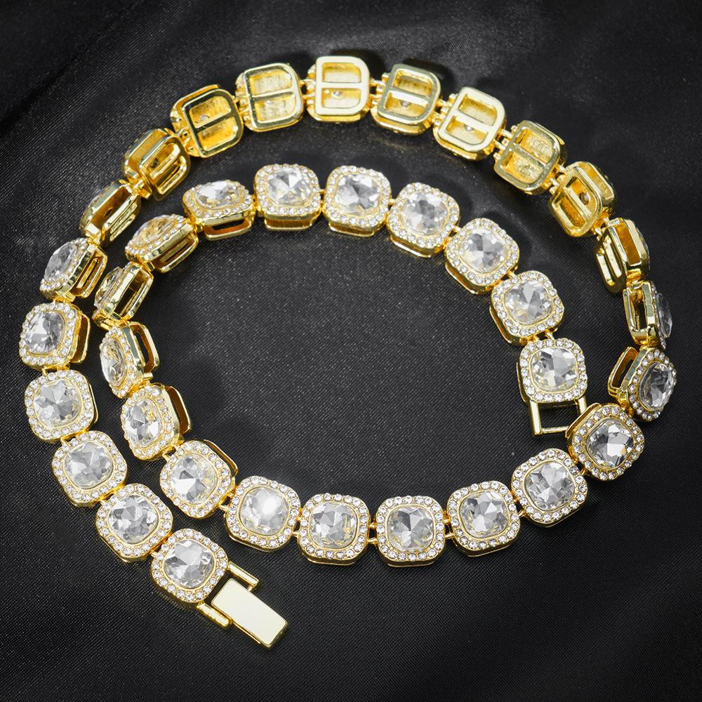Hip-Hop Europeo y Americano para Hombre 13mm Cadena de Azúcar de Roca de Diamantes Completa Cadena Cubana Aleación de Zinc Hiphop Diamante Completo Collar de Diamantes Redondos Cuadrados