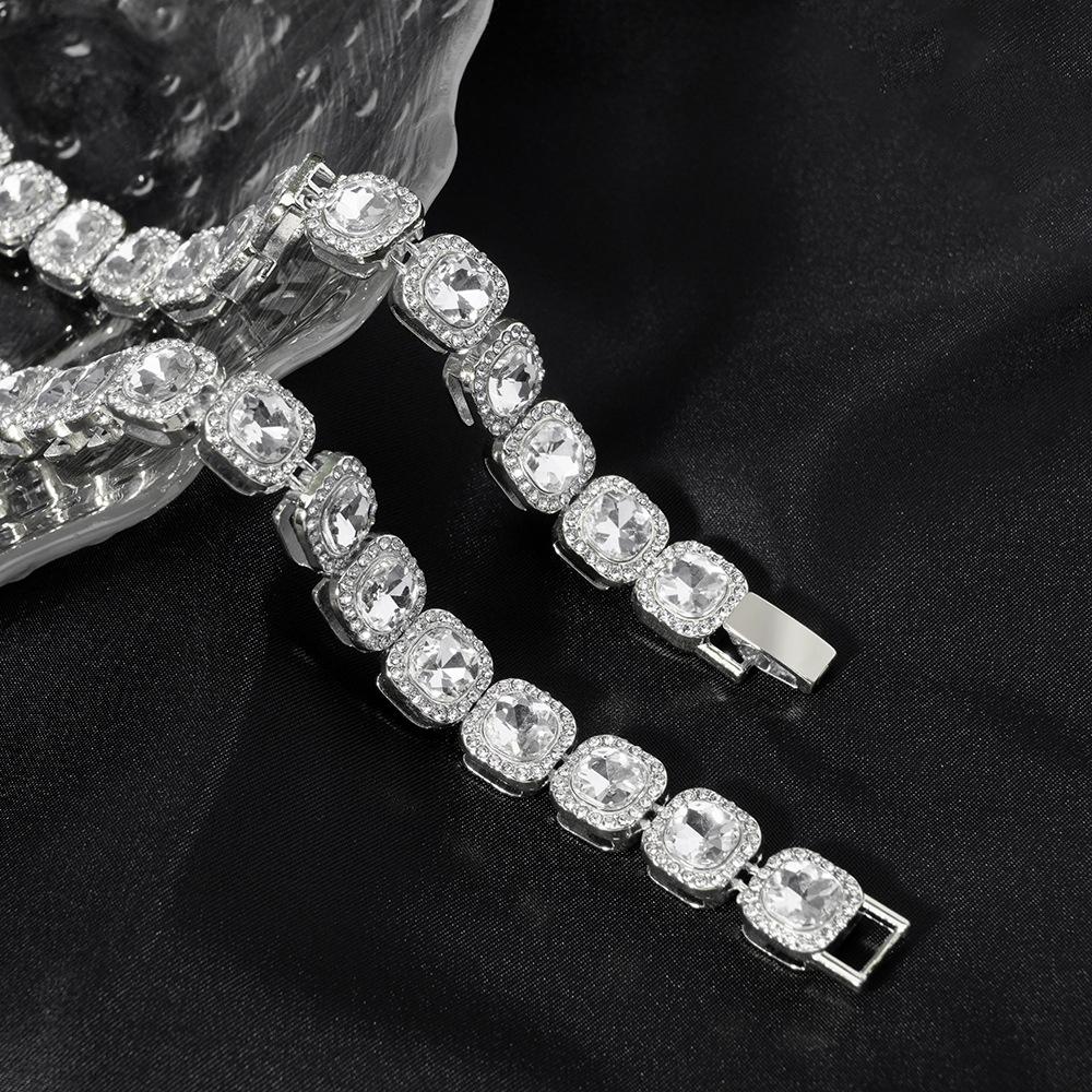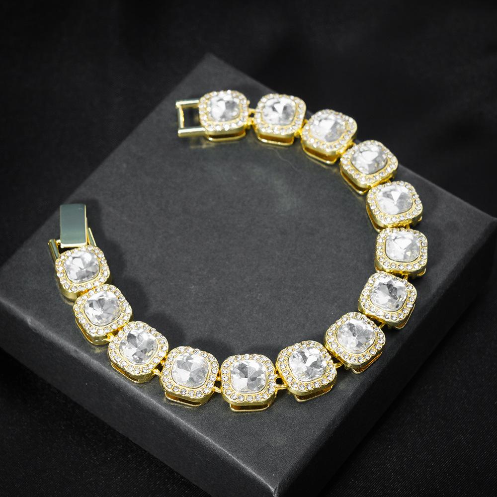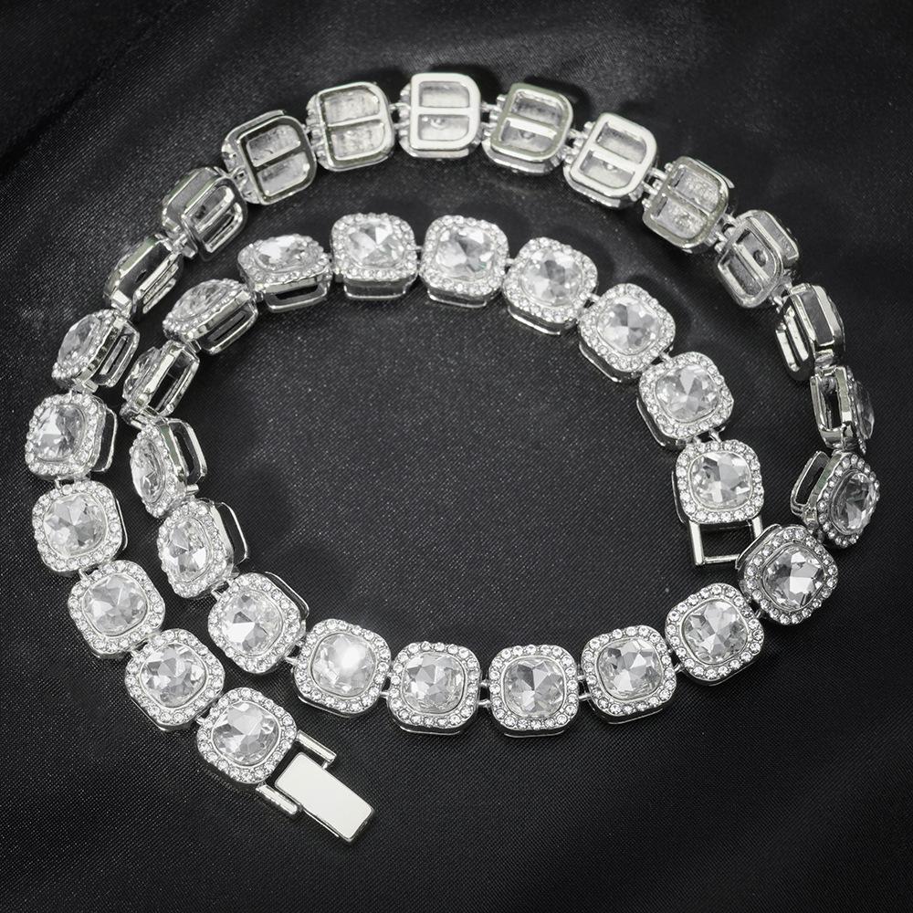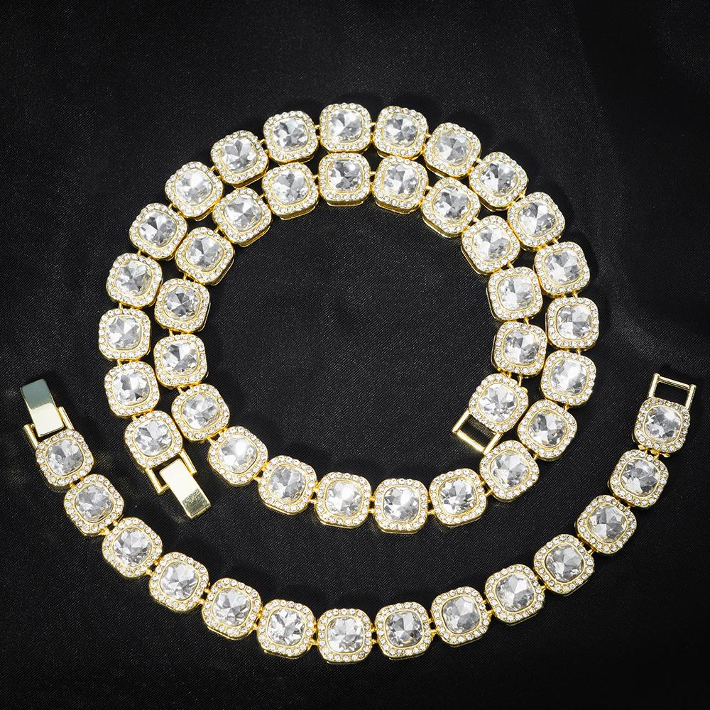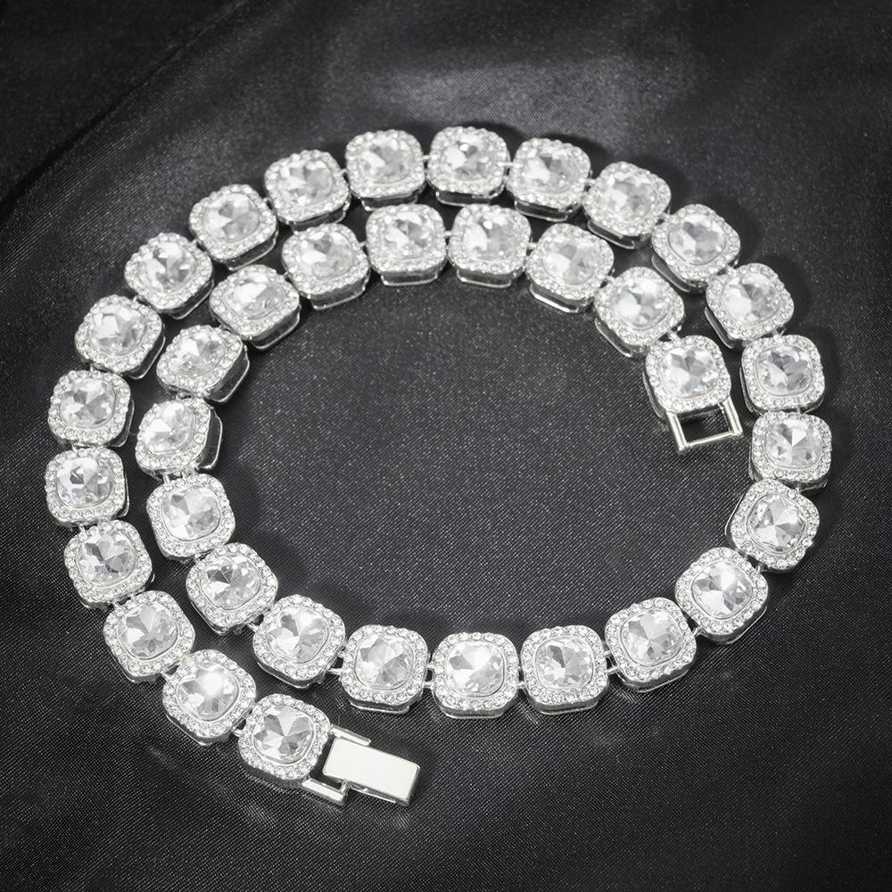 Hip-Hop Europeo y Americano para Hombre 13mm Cadena de Azúcar de Roca de Diamantes Completa Cadena Cubana Aleación de Zinc Hiphop Diamante Completo Collar de Diamantes Redondos Cuadrados