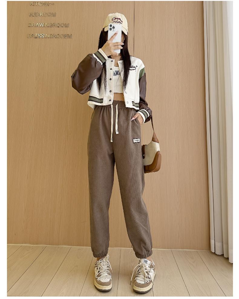 Pantalones deportivos casuales con forro polar para mujer, de otoño e invierno, gruesos, cálidos, de cintura alta, con cordones en los tobillos, sueltos y adelgazantes, pantalones deportivos para exteriores
