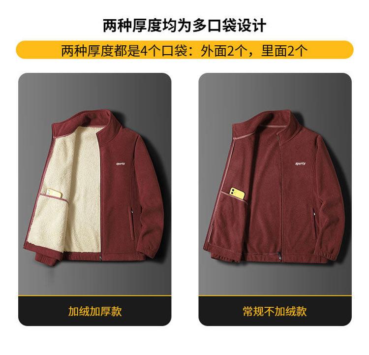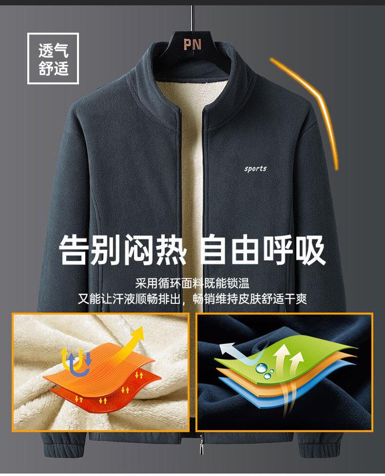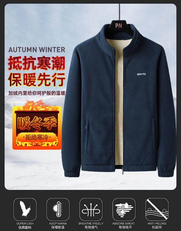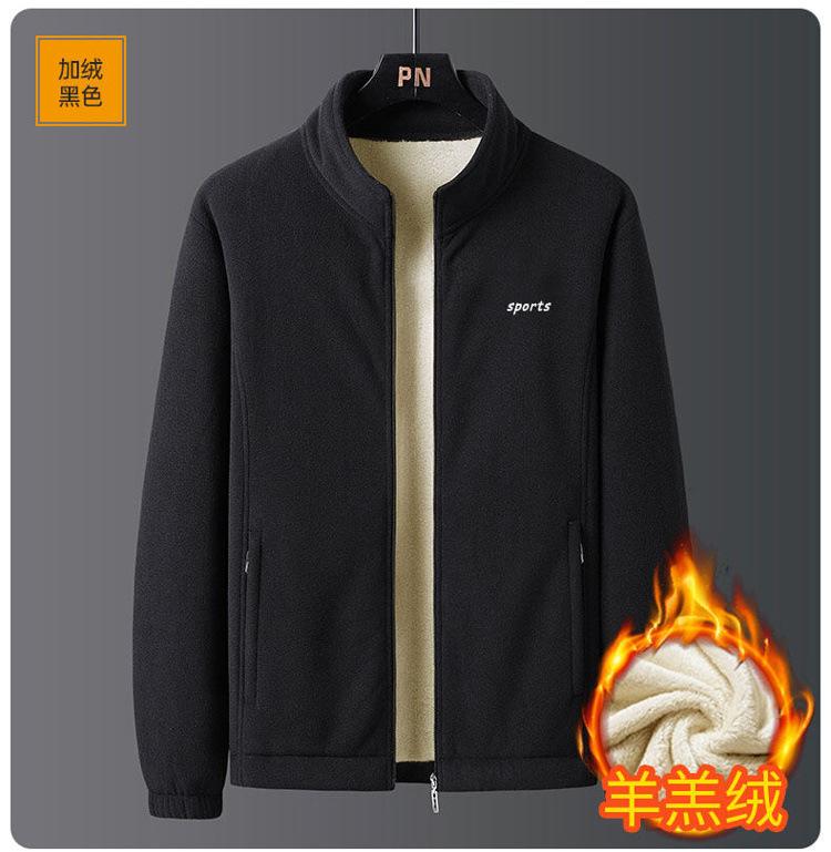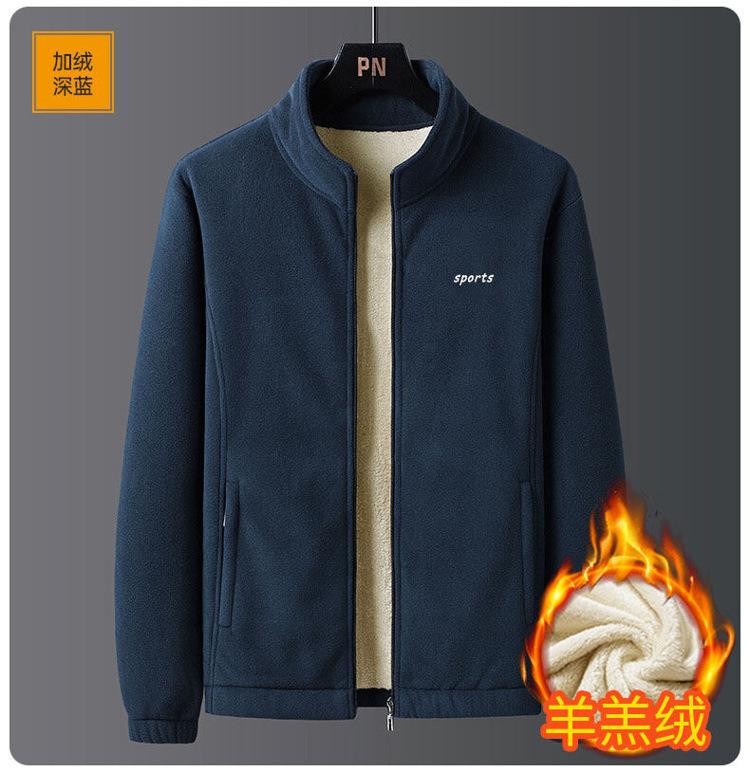 Chaqueta de lana polar nueva de otoño e invierno para hombre, de mediana edad y mayor, con cuello alto y forro polar, chaqueta informal de lana gruesa y moderna.