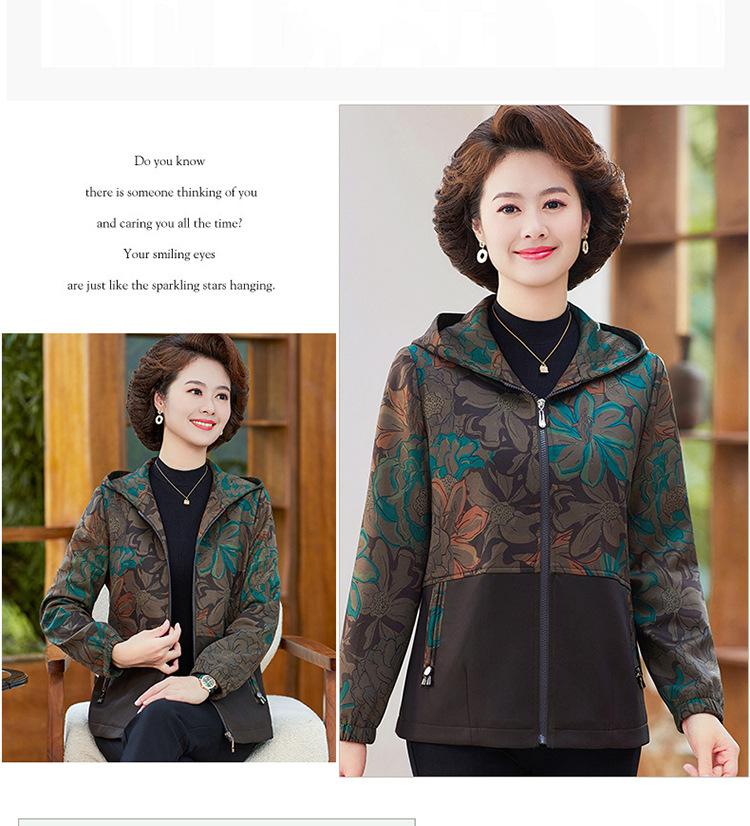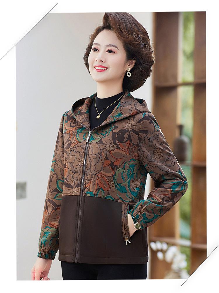 Chaqueta fina con capucha para mujer de mediana edad y anciana, primavera y otoño, holgada, informal, a la moda, cortavientos, para señora mayor, 2024