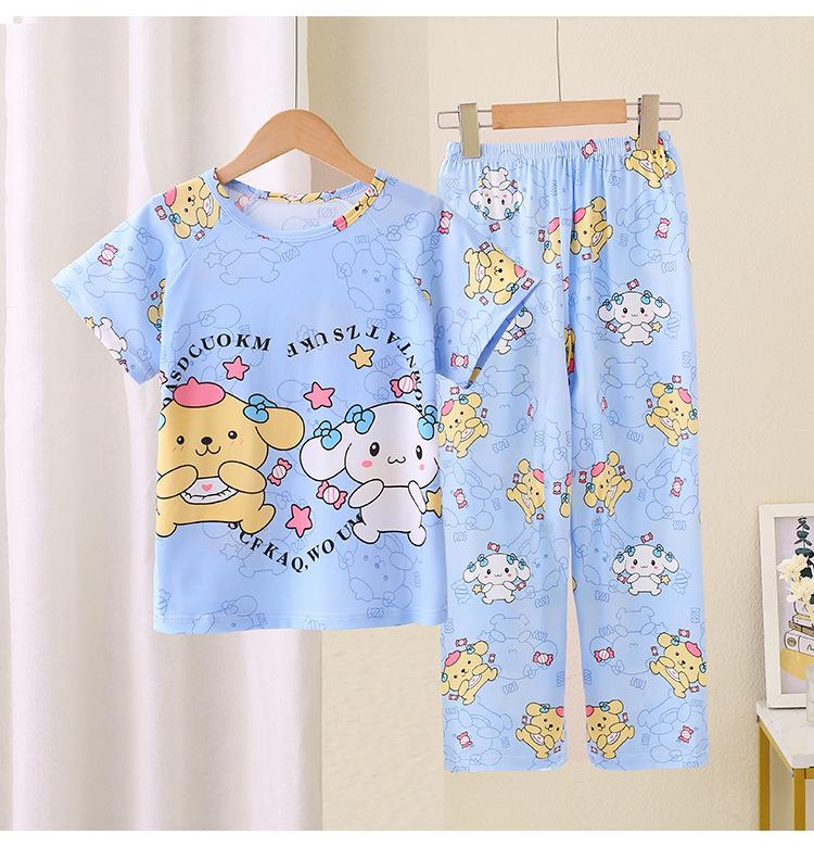 Pijama infantil de comercio exterior para niñas de verano de manga corta y pantalón, ropa de casa para bebés, niñas pequeñas y niños, juego al por mayor