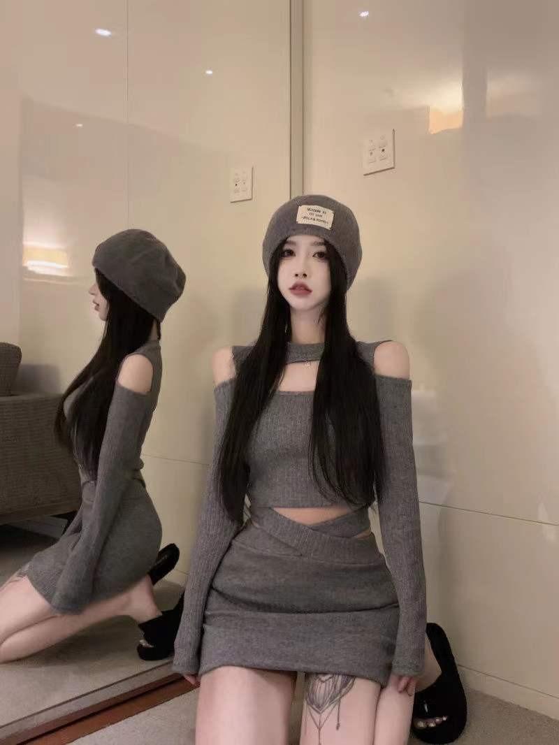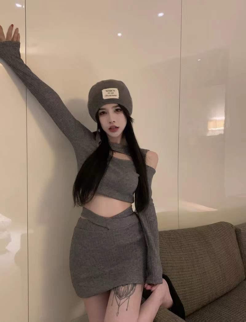 Traje de moda para mujer, primavera y verano 2022, nuevo, sexy, con falda superior para chica, traje adelgazante, sexy, antiedad, traje corto de dos piezas