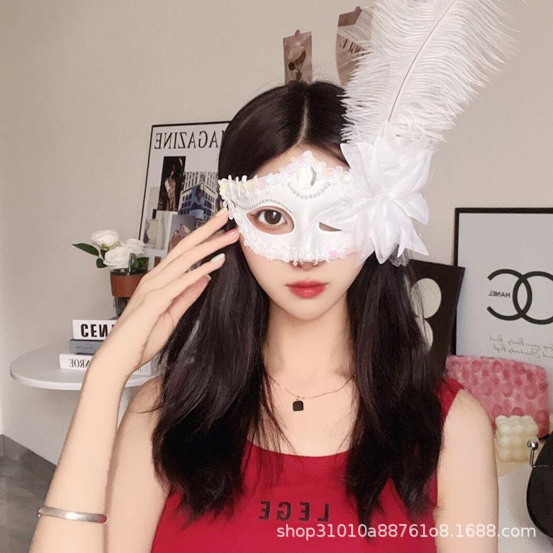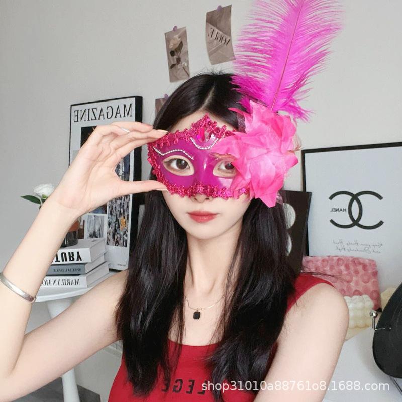 Nombre del producto: Máscara de plumas de avestruz con flores
