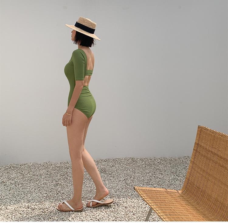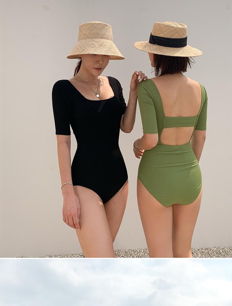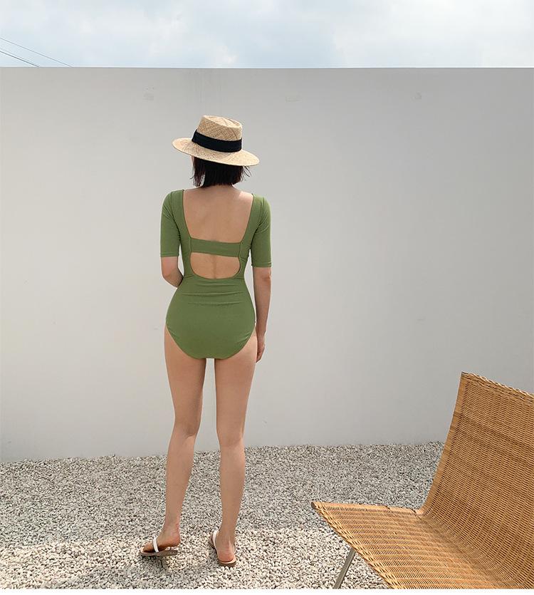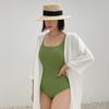 Traje de Baño Enterizo Nuevo 2025 para Mujer, Estilo Coreano, Adelgazante, Oculta el Abdomen, Conservador, Favorecedor de la Figura, Fruncido, Sin Espalda, Traje de Baño Estilo Vacaciones en Aguas Termales