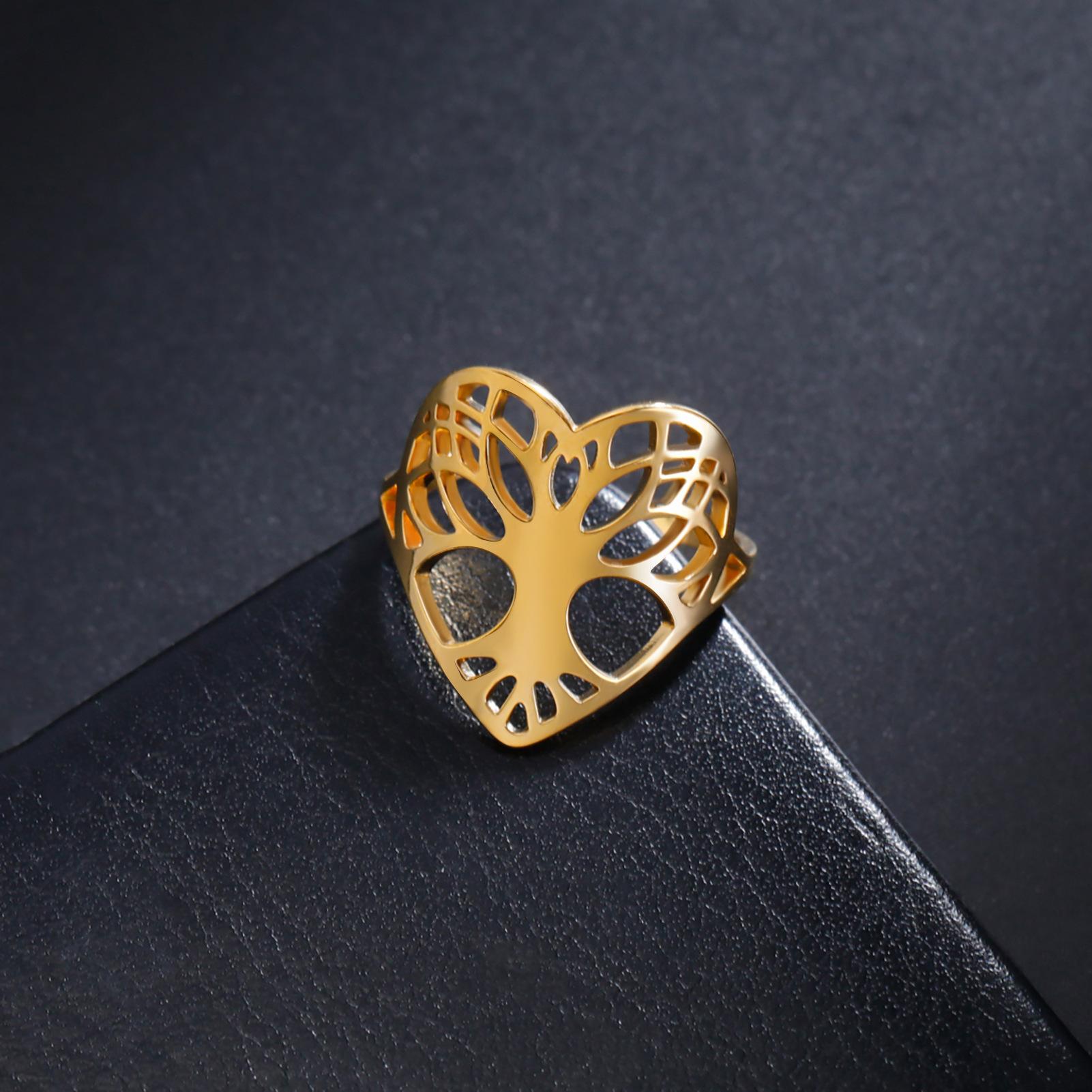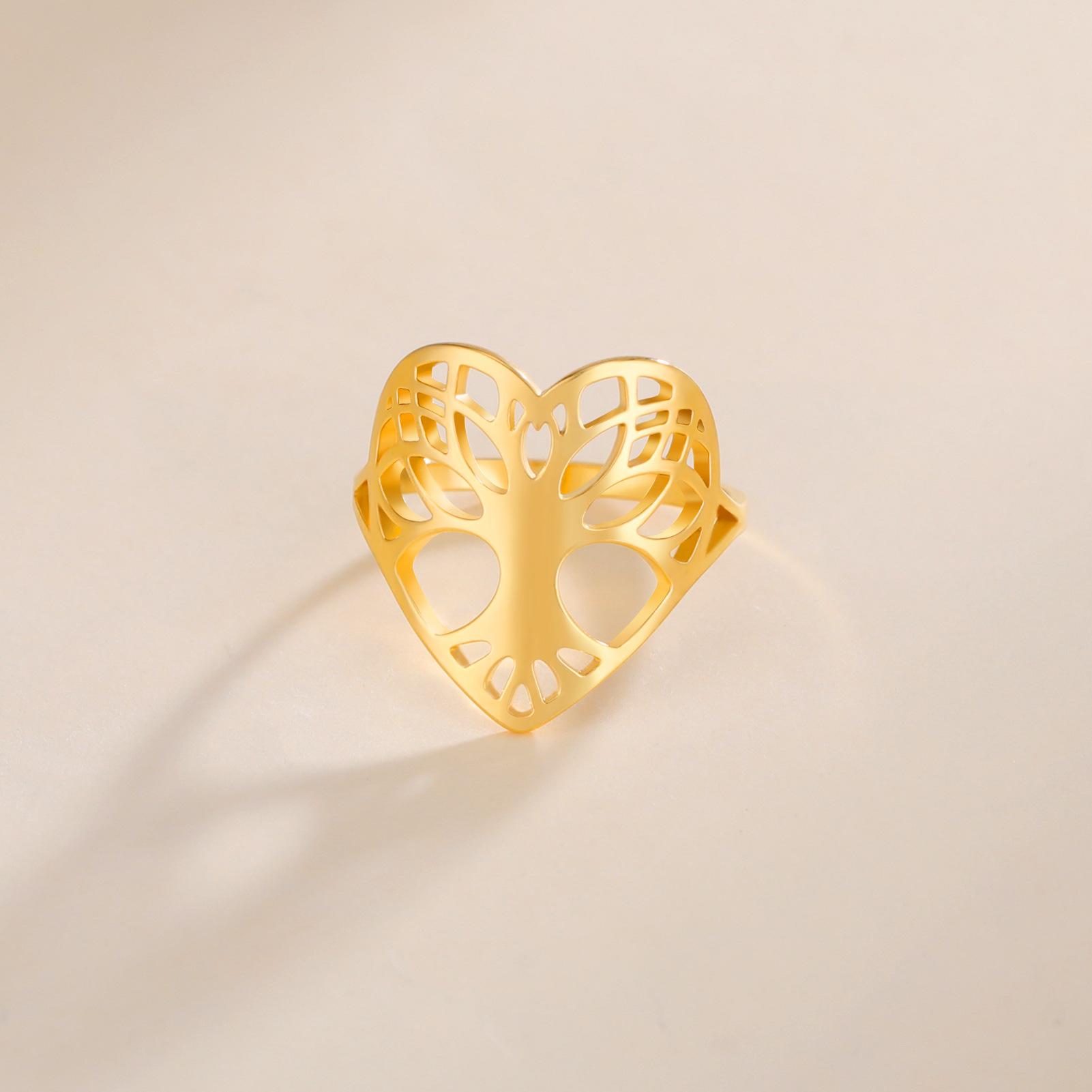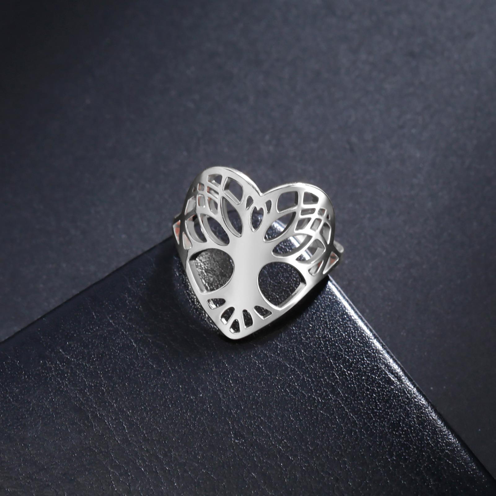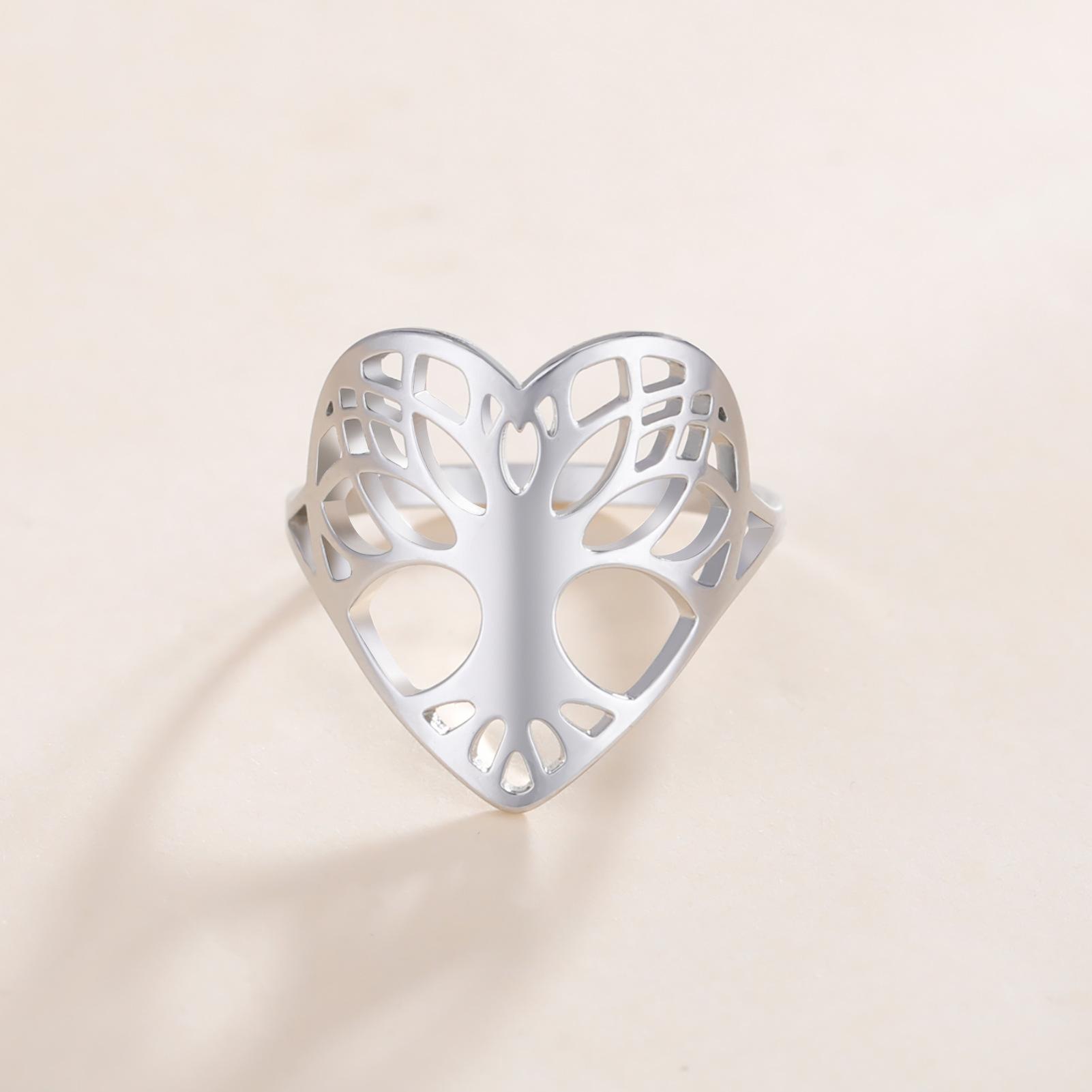 Stainless steel love hollow big tree ring titanium steel love ring, ins style