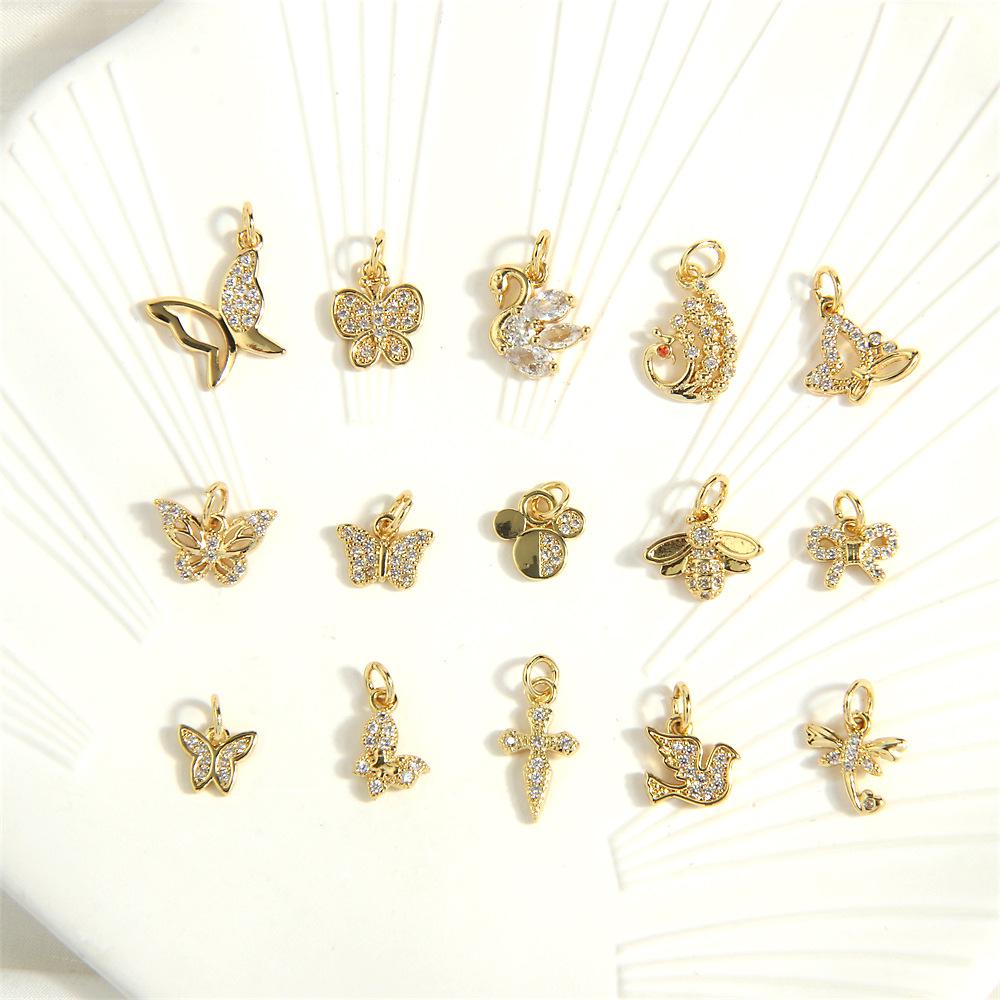 Colgante de mariposa con cruz de circonita microincrustada chapada en oro de 18 quilates que conserva el color, collar artesanal, accesorios pequeños para colgantes.