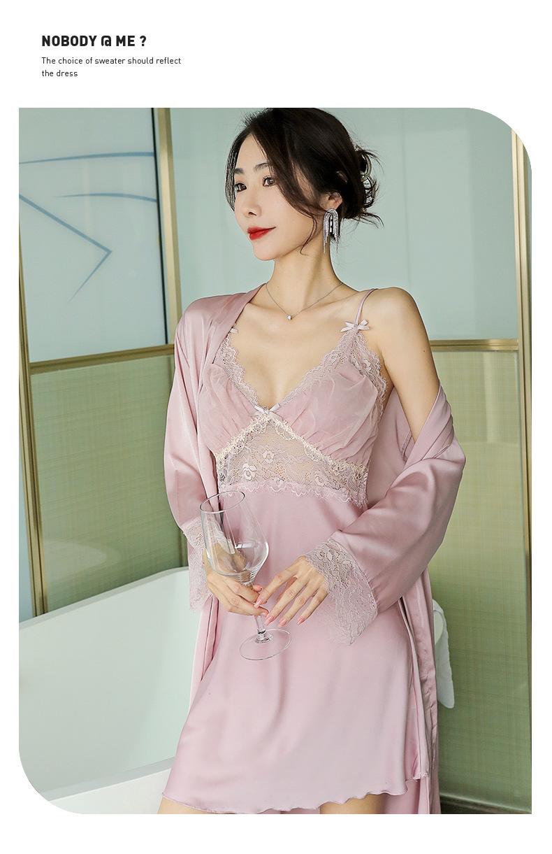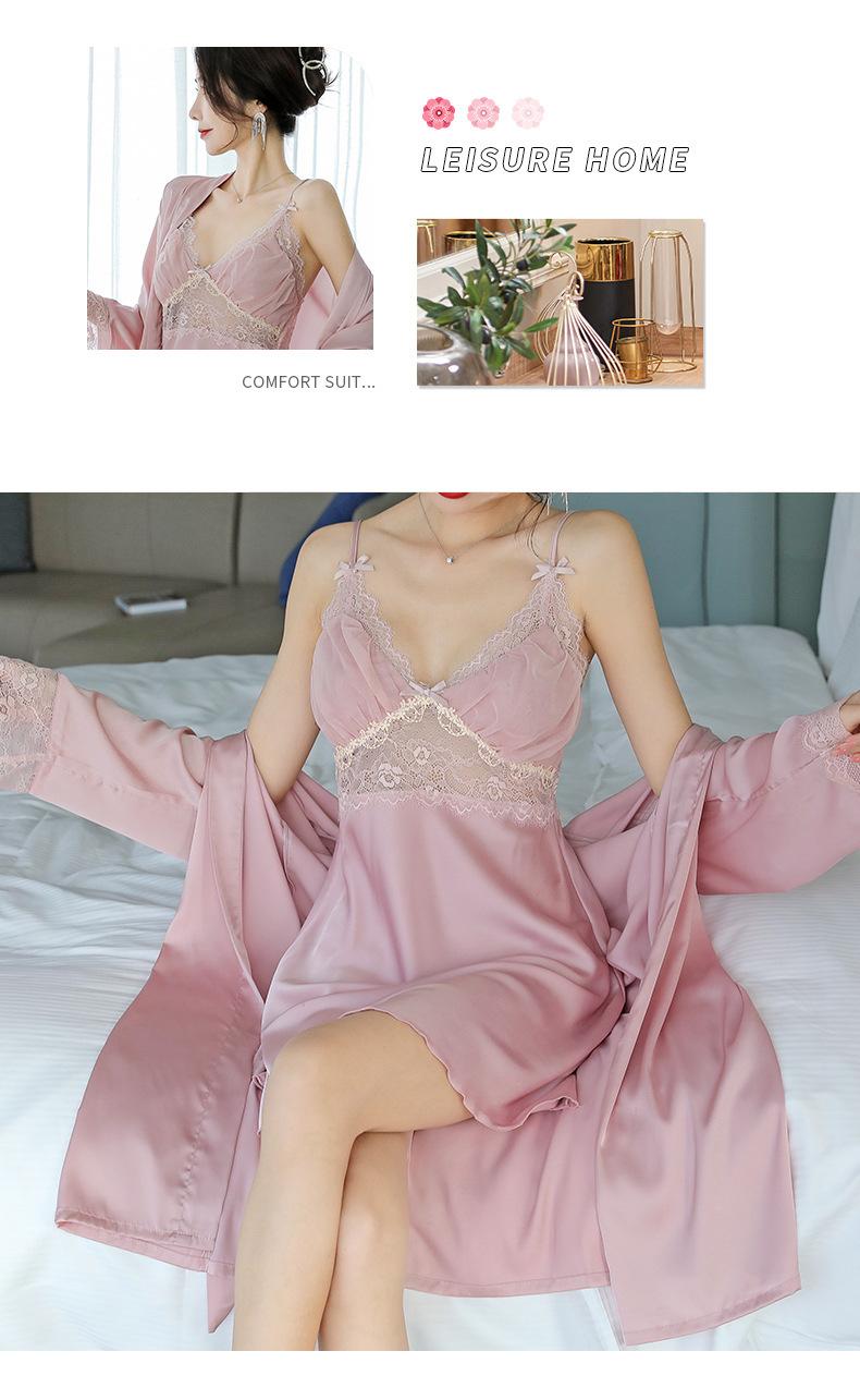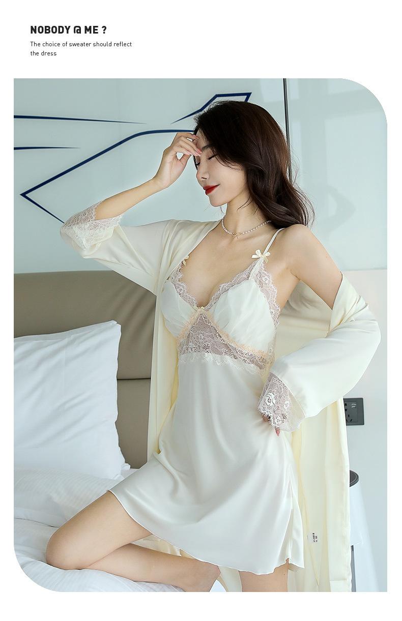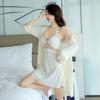 Pijama de mujer primavera y verano seda de hielo sexy encaje calado sexy deseo puro viento tirantes almohadilla para el pecho camisón camisón conjunto de dos piezas