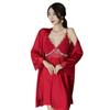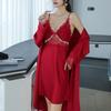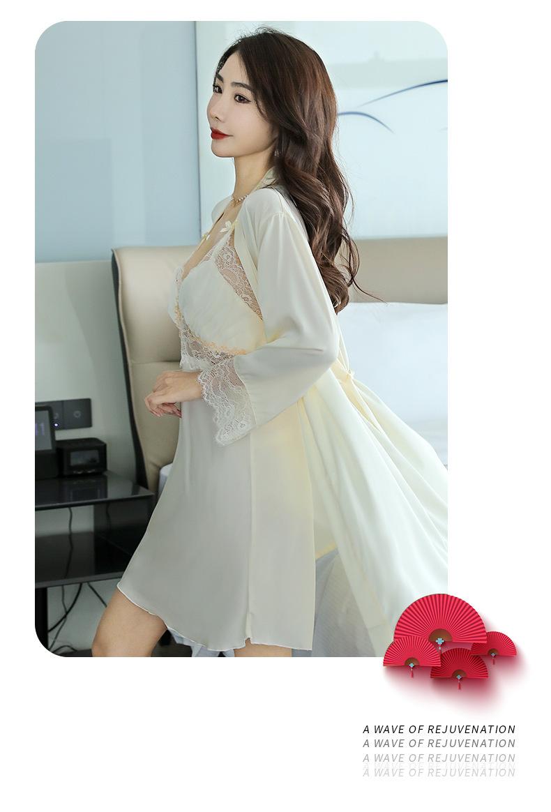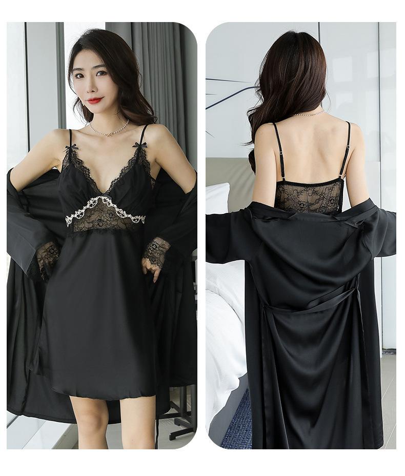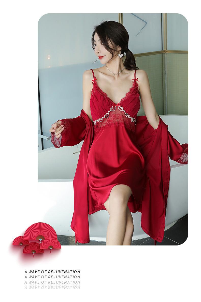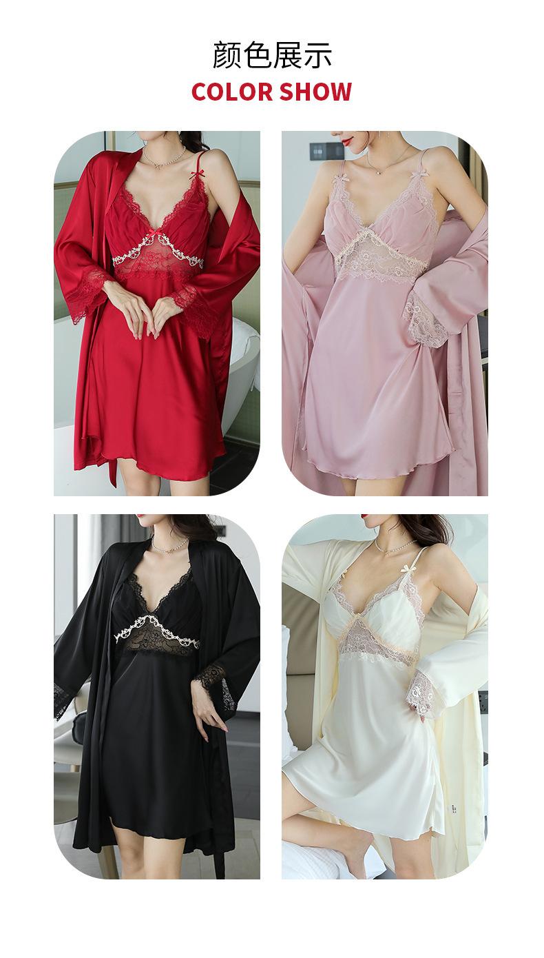 Pijama de mujer primavera y verano seda de hielo sexy encaje calado sexy deseo puro viento tirantes almohadilla para el pecho camisón camisón conjunto de dos piezas
