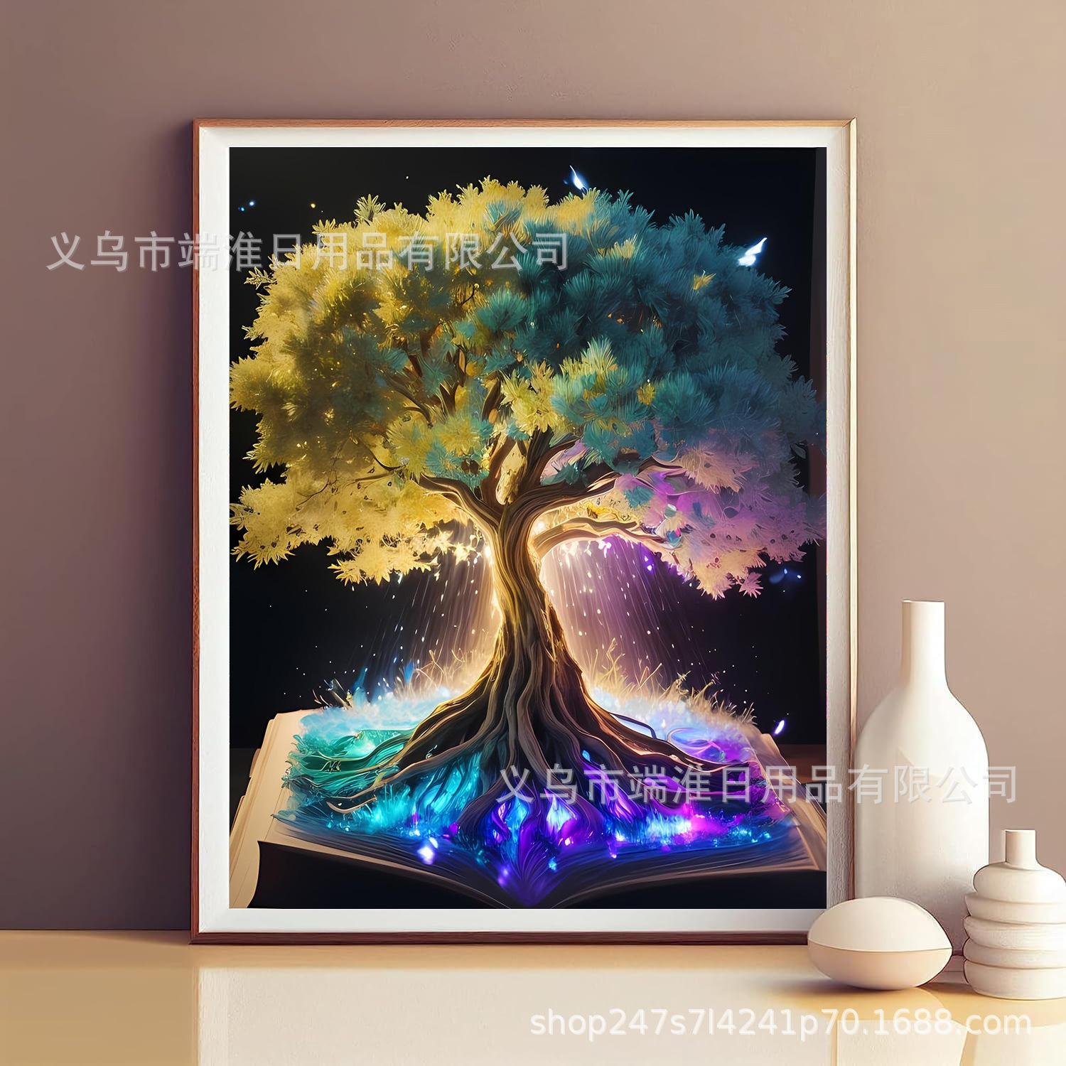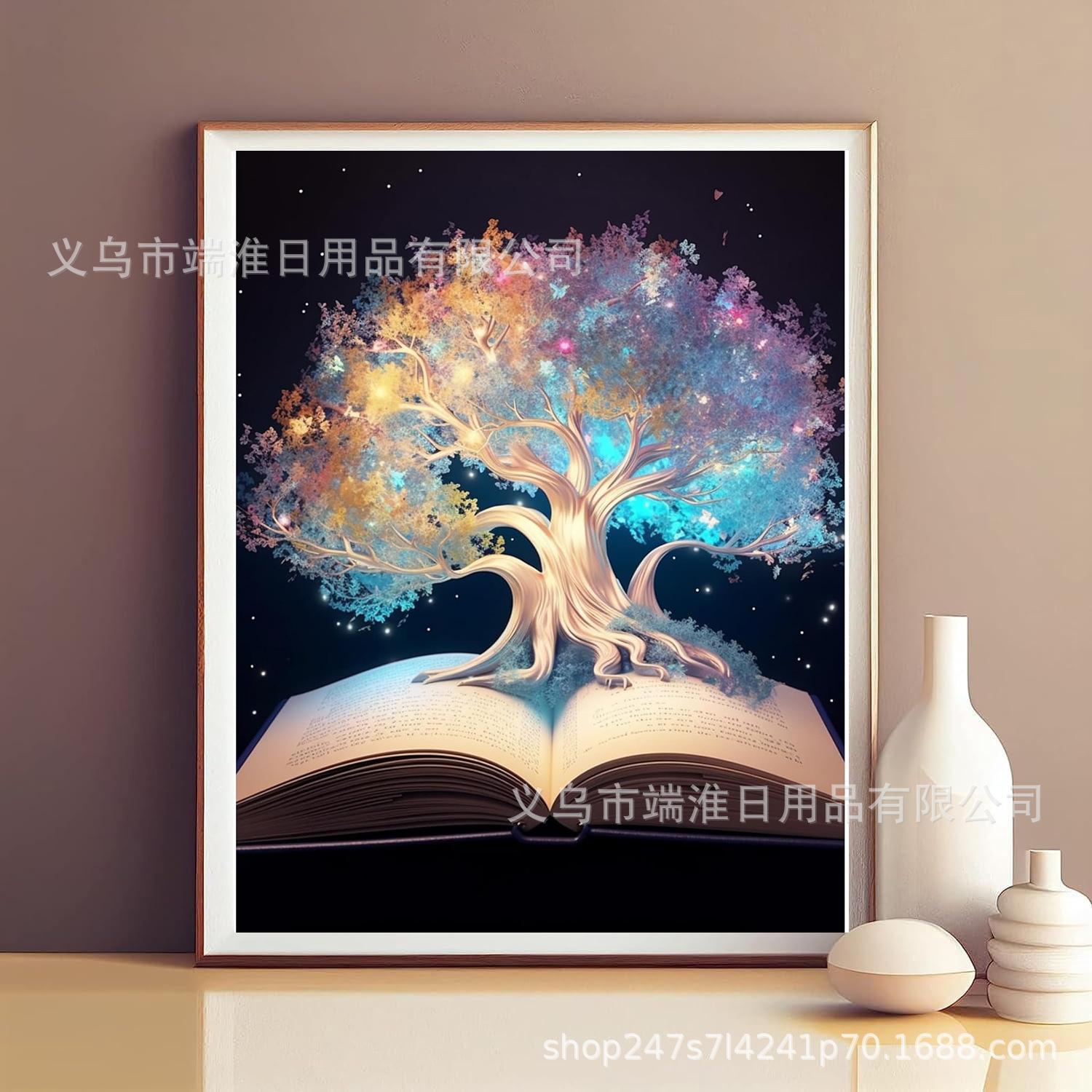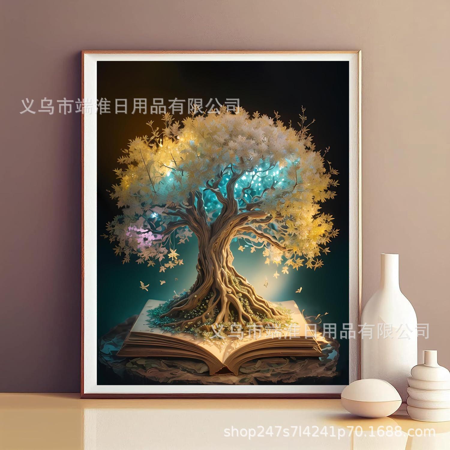 Amazon Nuevo Mosaico 5diy Pintura de Diamantes Libro Árbol de la Vida Diamante Redondo Completo Decoración Sala de Estar Pintura Colgante Directo de Fábrica