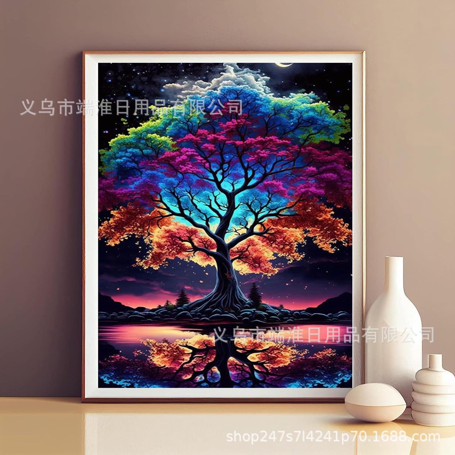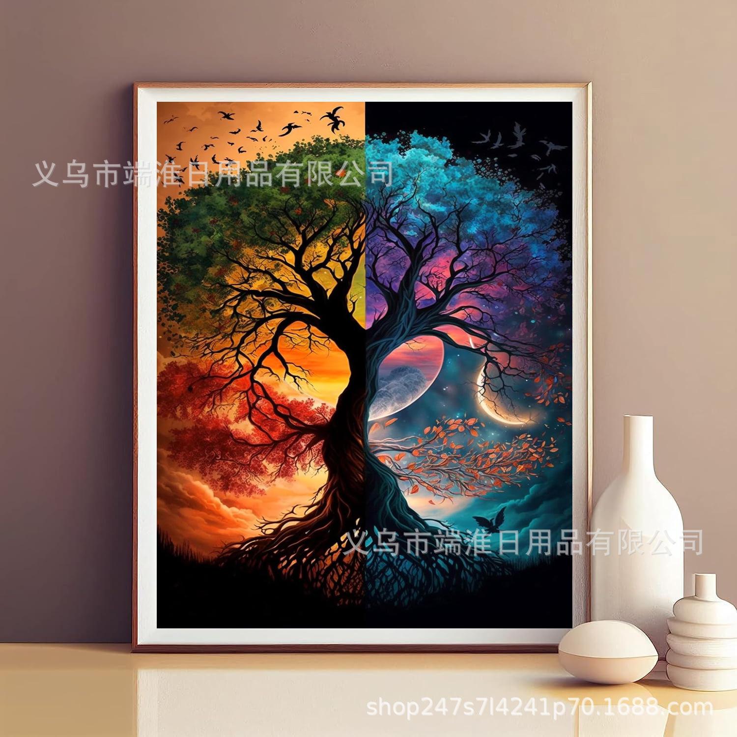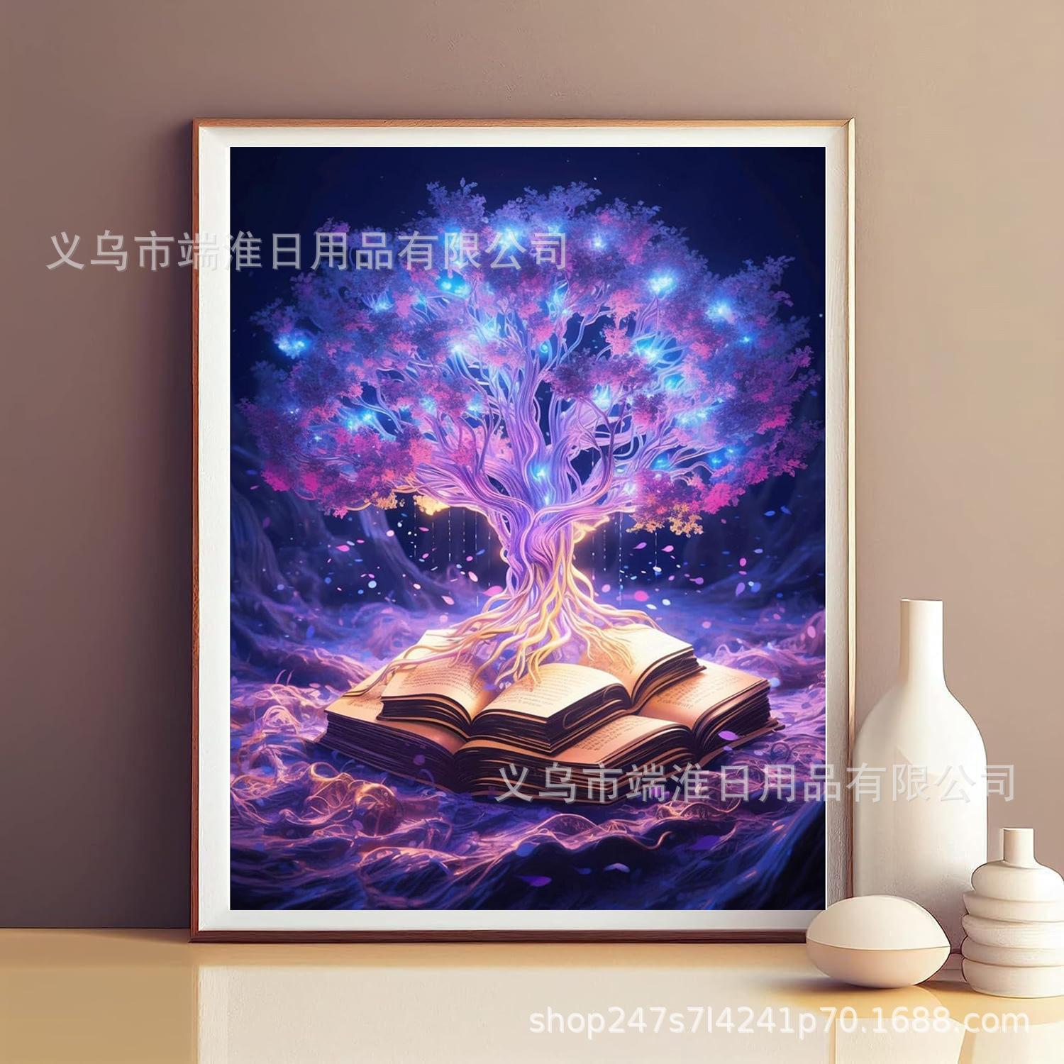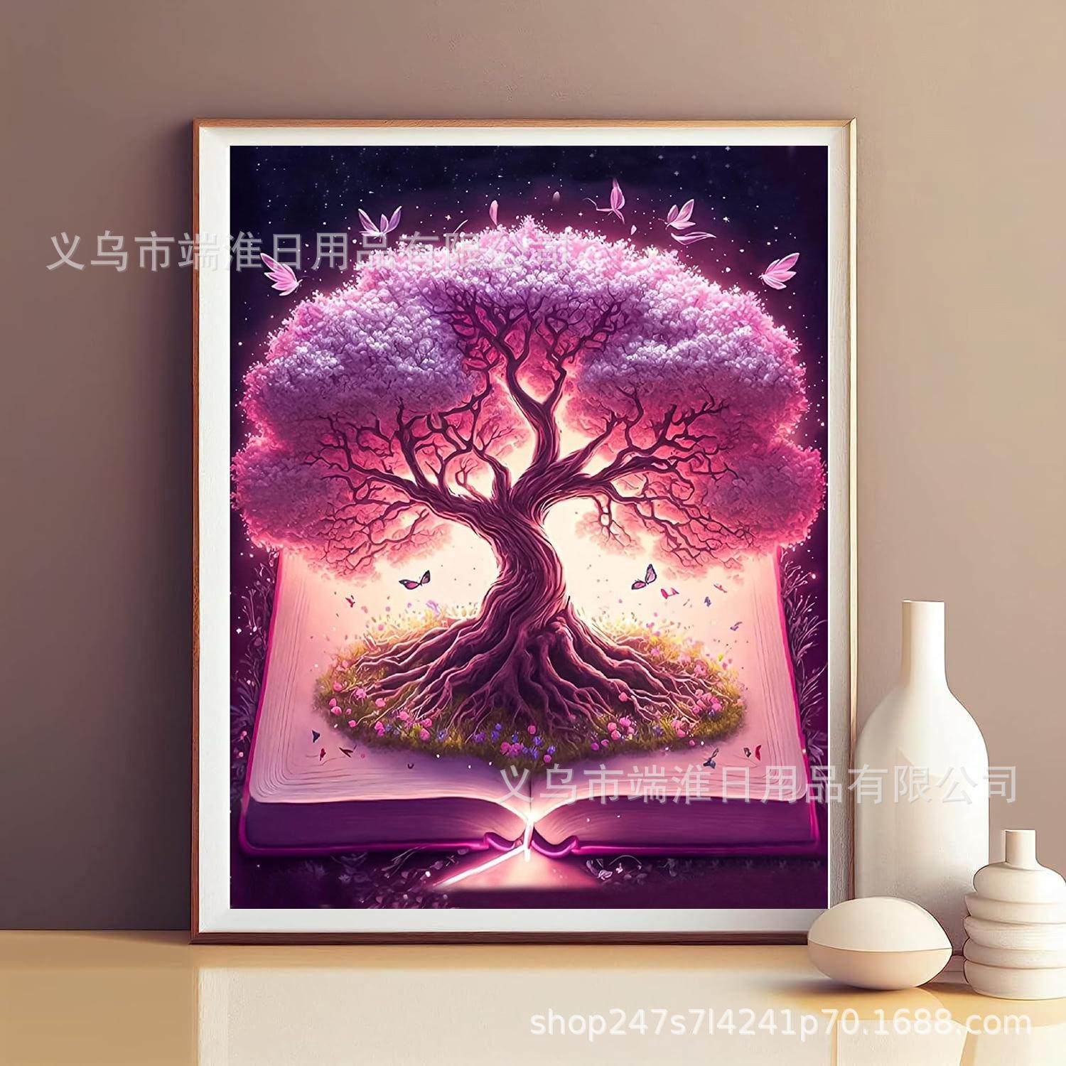 Amazon Nuevo Mosaico 5diy Pintura de Diamantes Libro Árbol de la Vida Diamante Redondo Completo Decoración Sala de Estar Pintura Colgante Directo de Fábrica