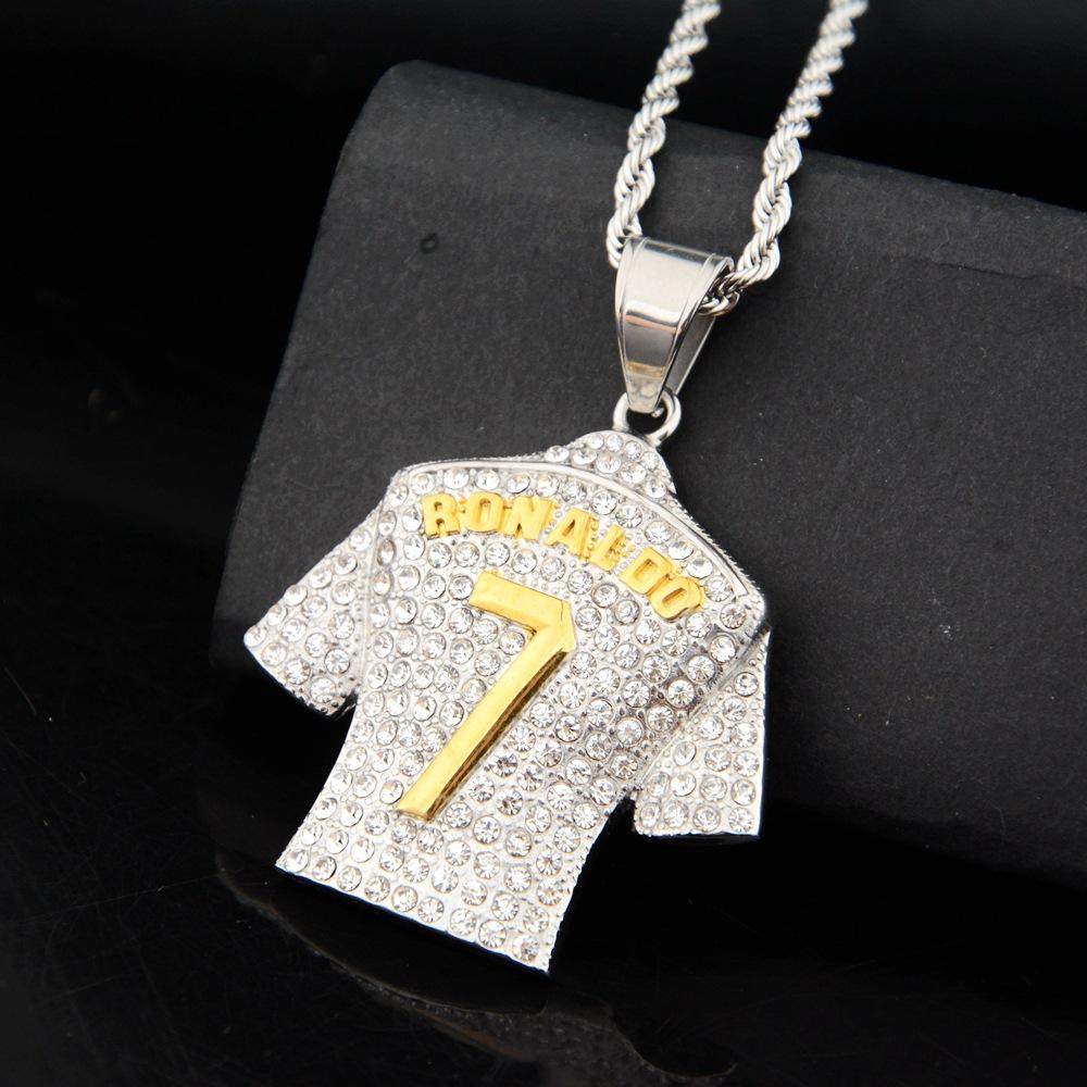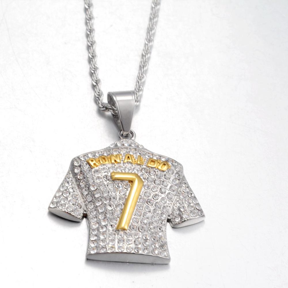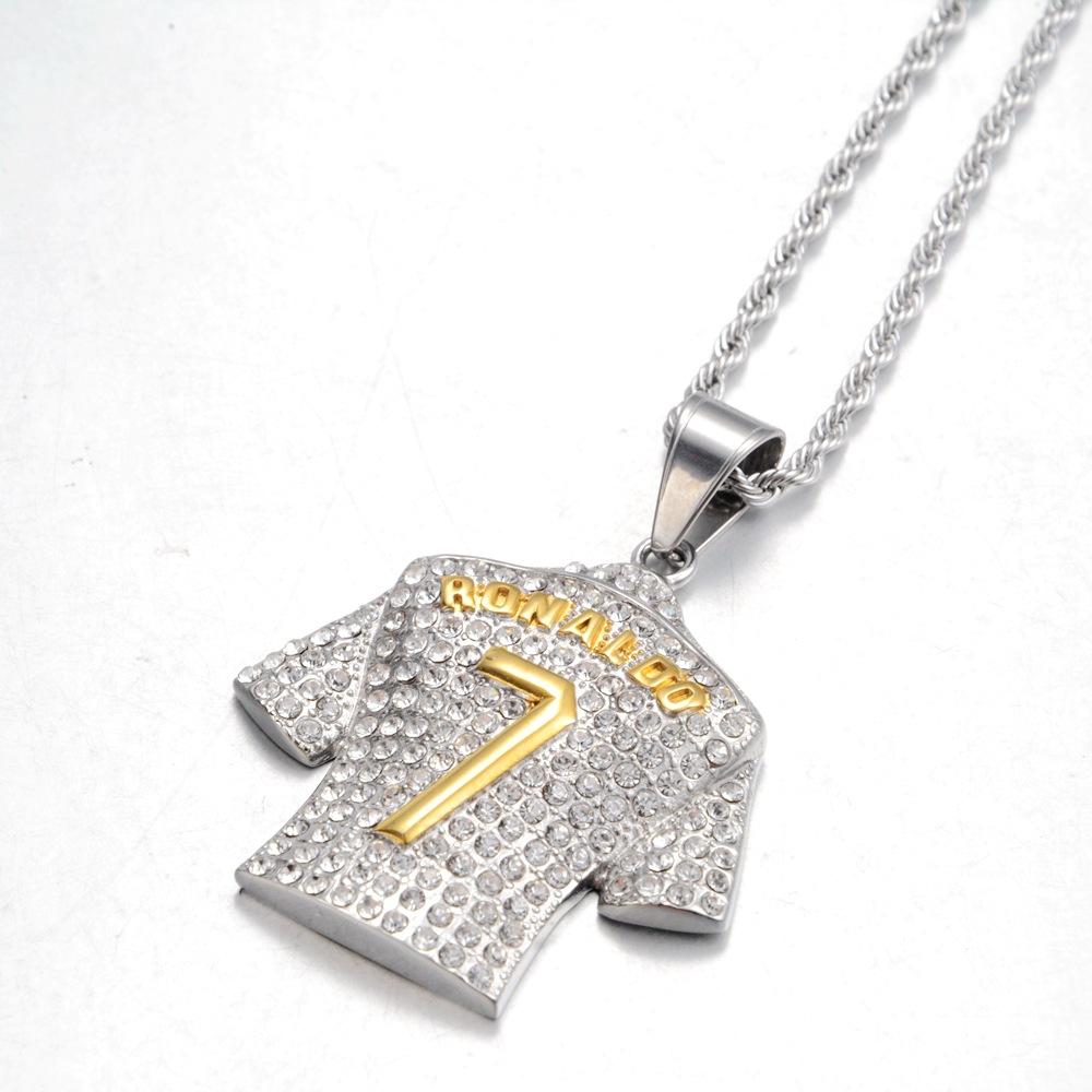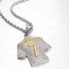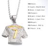 Moda popular hip hop todo fósforo titanio acero incrustado diamante No. Collar de pareja casual personalizado con colgante de camiseta de 7 piezas para hombre y mujer
