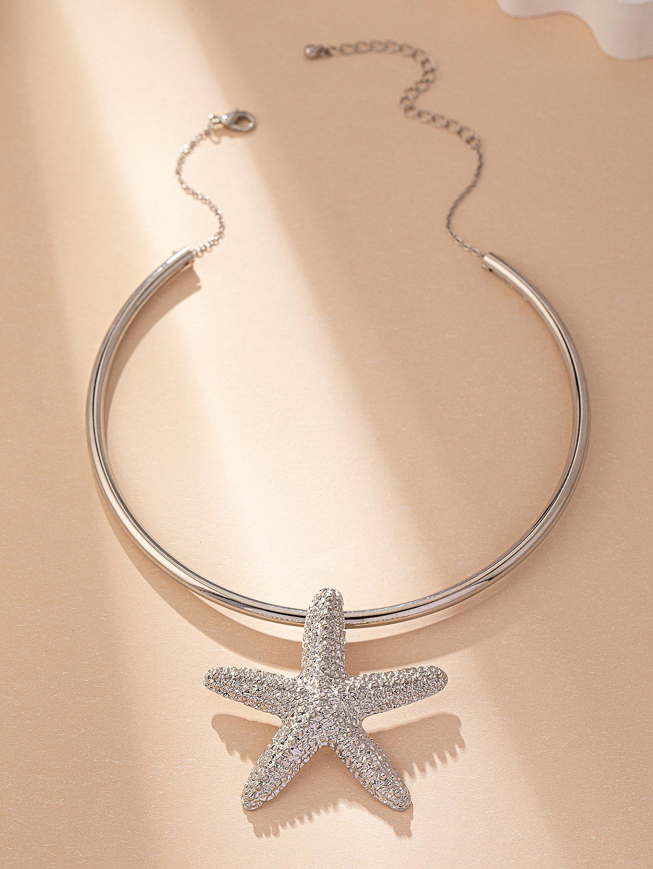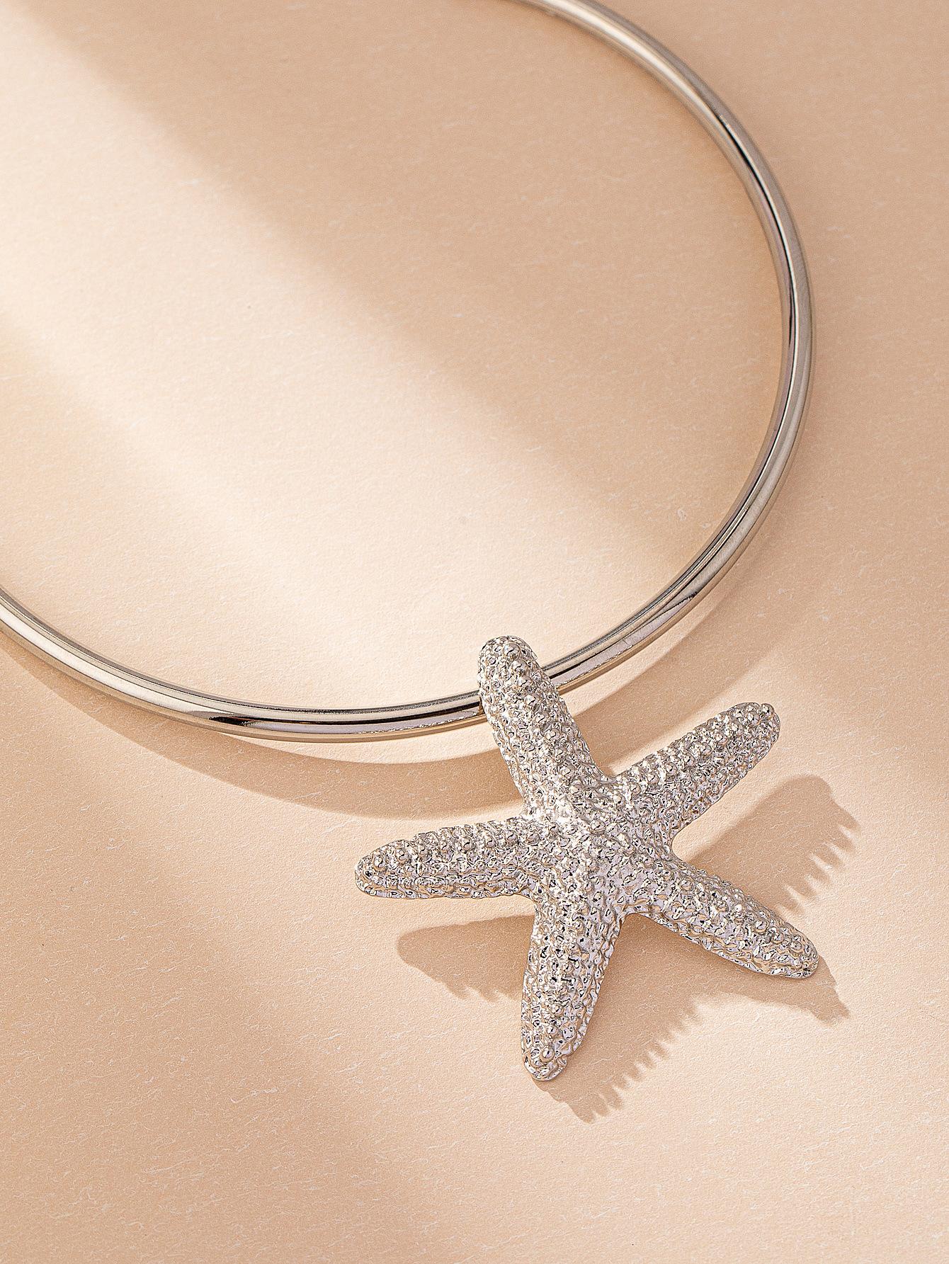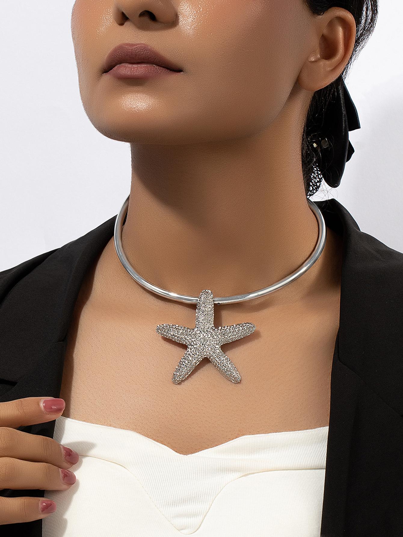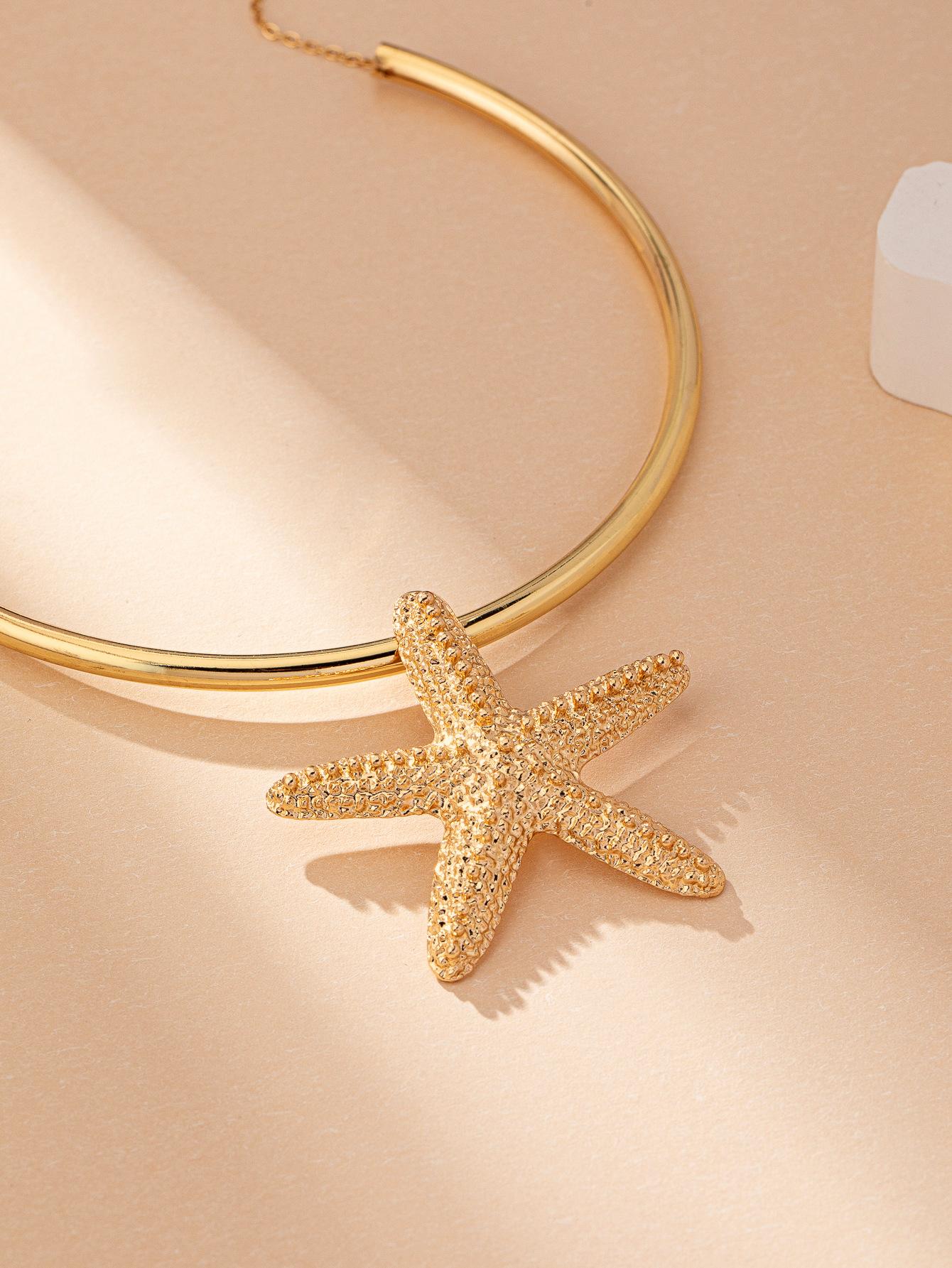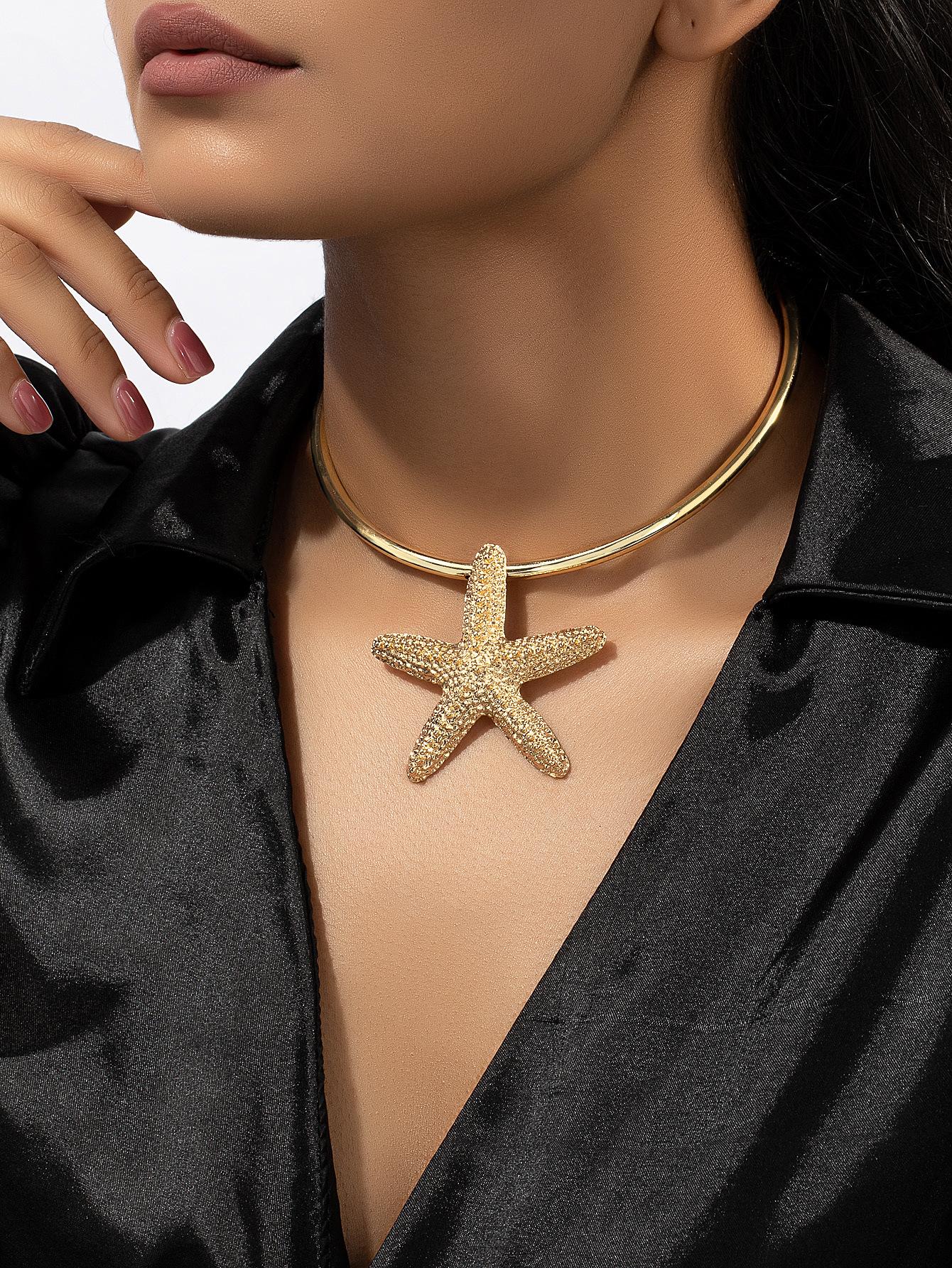 Collar con colgante de estrella de mar salvaje de diseño exagerado simple, collar de estilo metálico geométrico