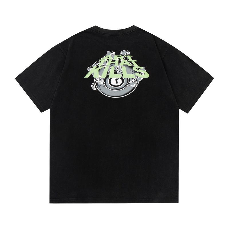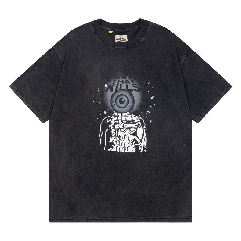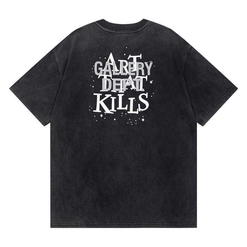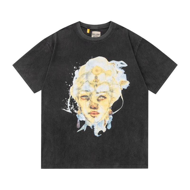 Camiseta de manga corta informal de verano holgada con estampado antiguo, estilo vintage lavado, para hombre y mujer, con letras en color, del departamento de galería