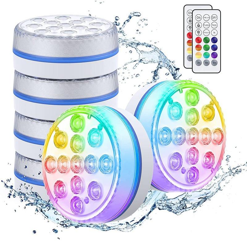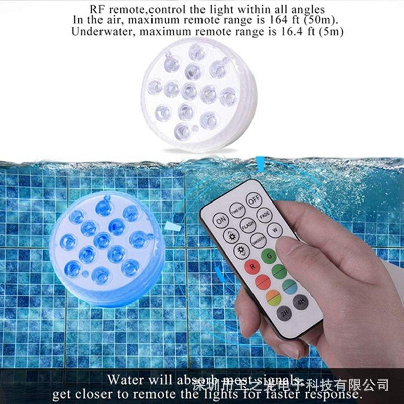 1x Luz de Buceo (batería no incluida) + 1 x Control Remoto RF (batería incluida) + Ventosa Extra +