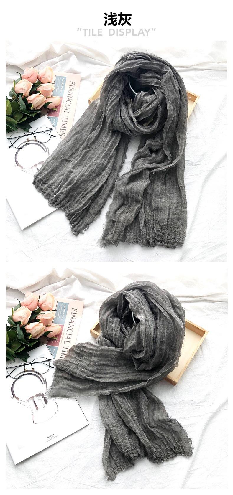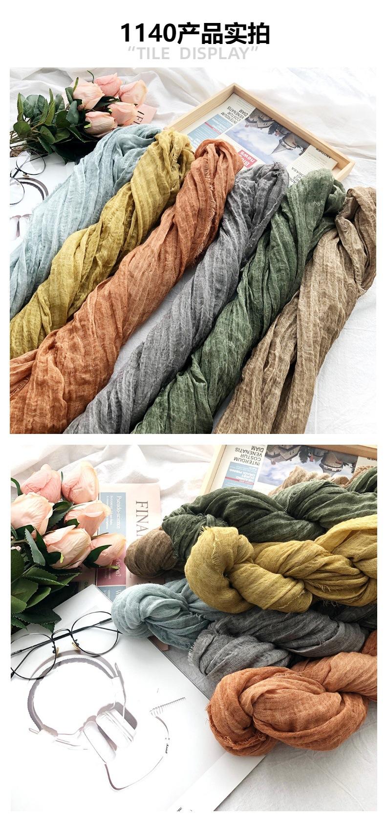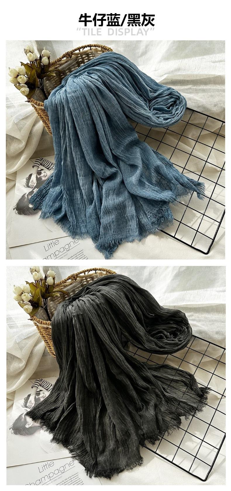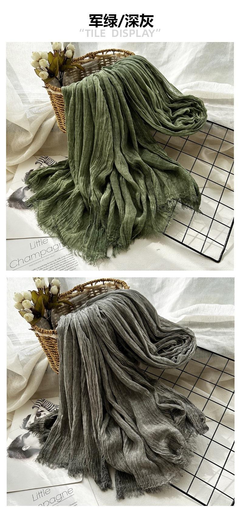 Bufanda de algodón y lino de color sólido transfronterizo, otoño e invierno, nueva bufanda de comercio exterior para hombre, bufanda de lino arrugada natural al por mayor, chal para mujer