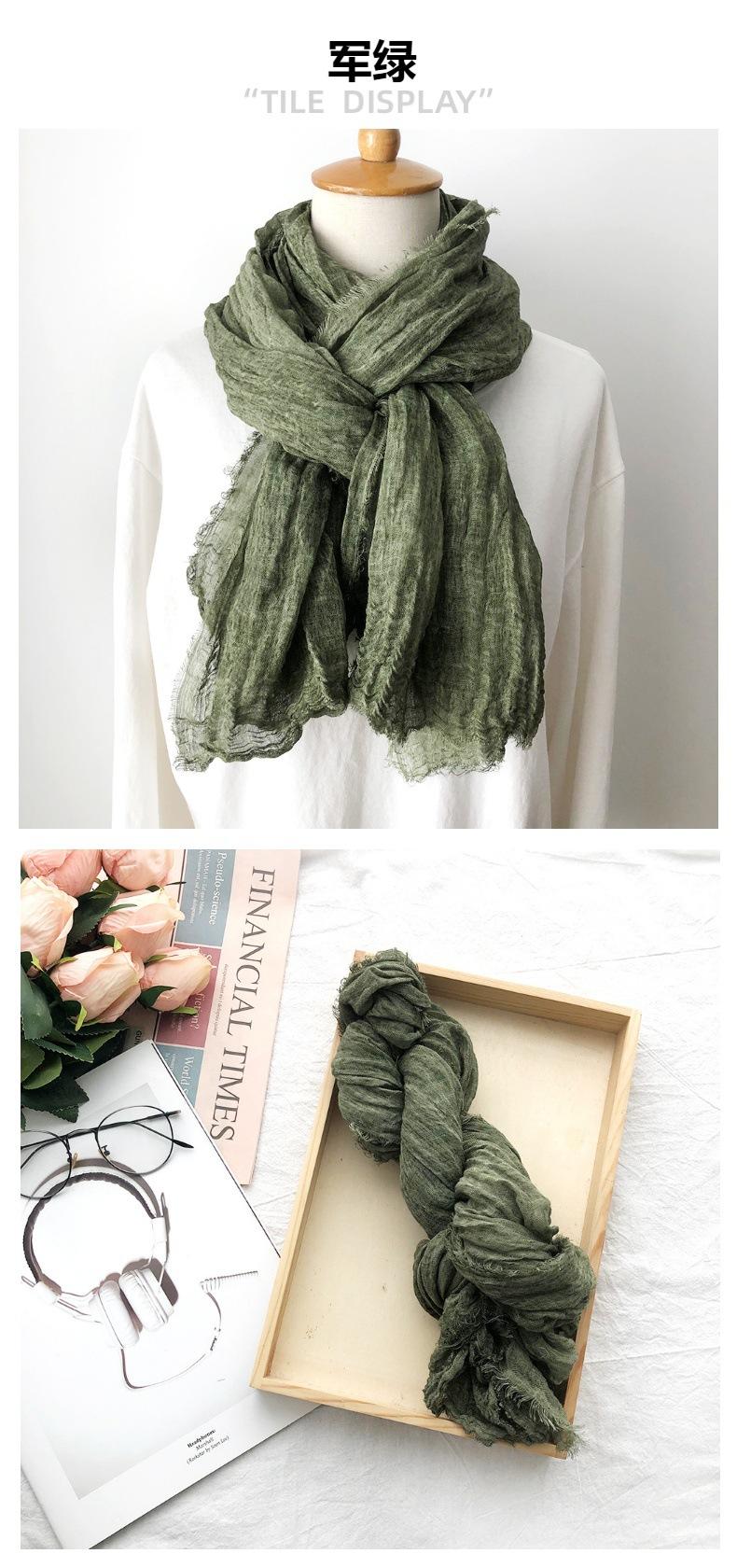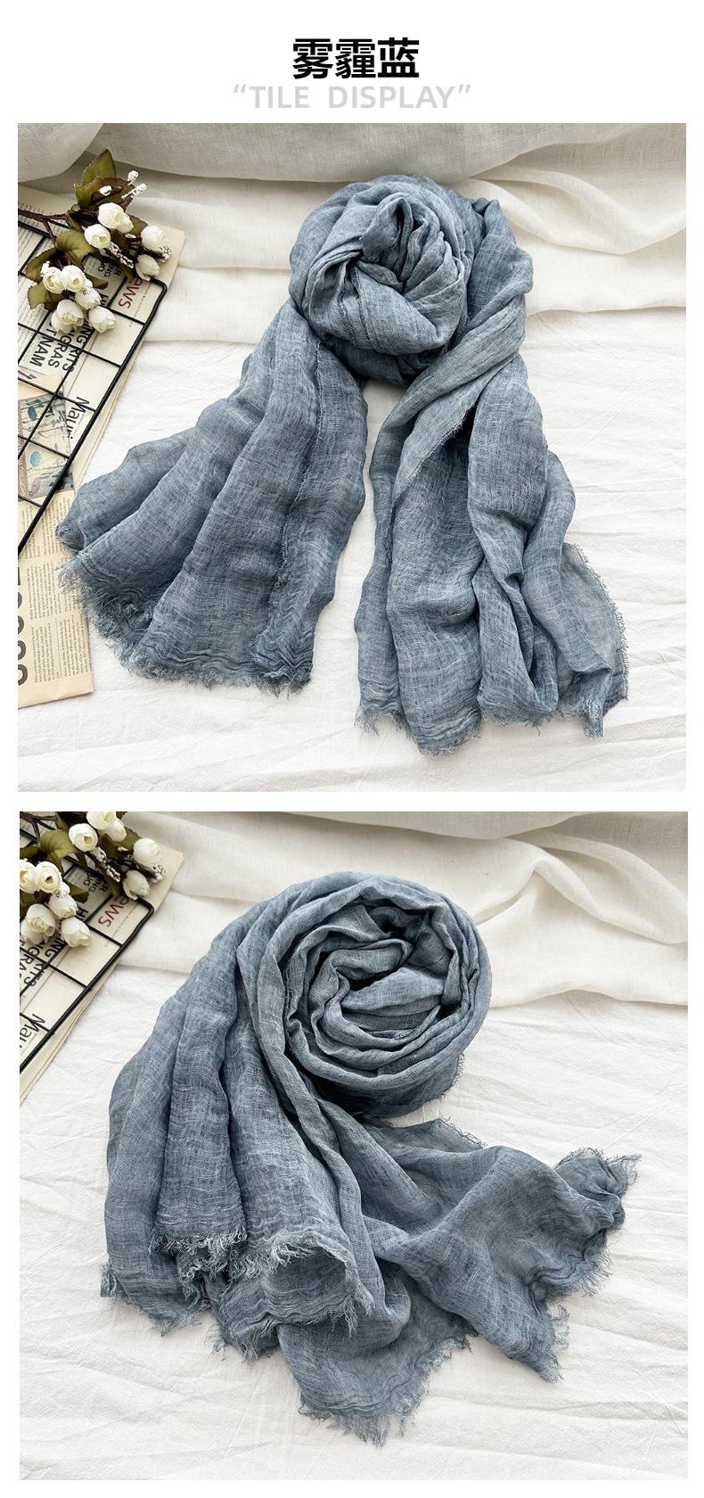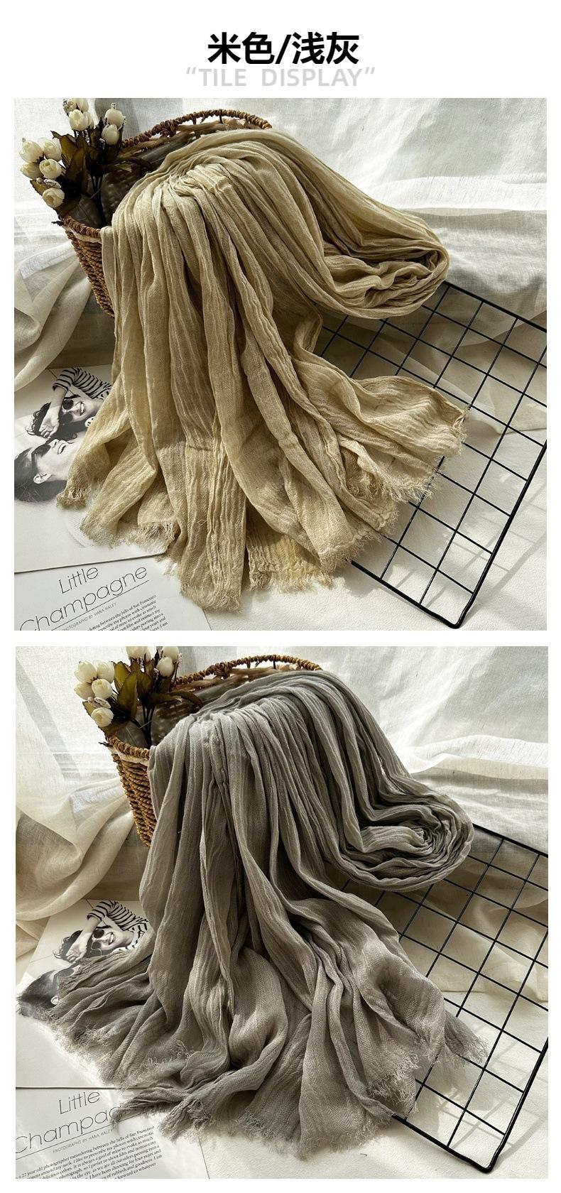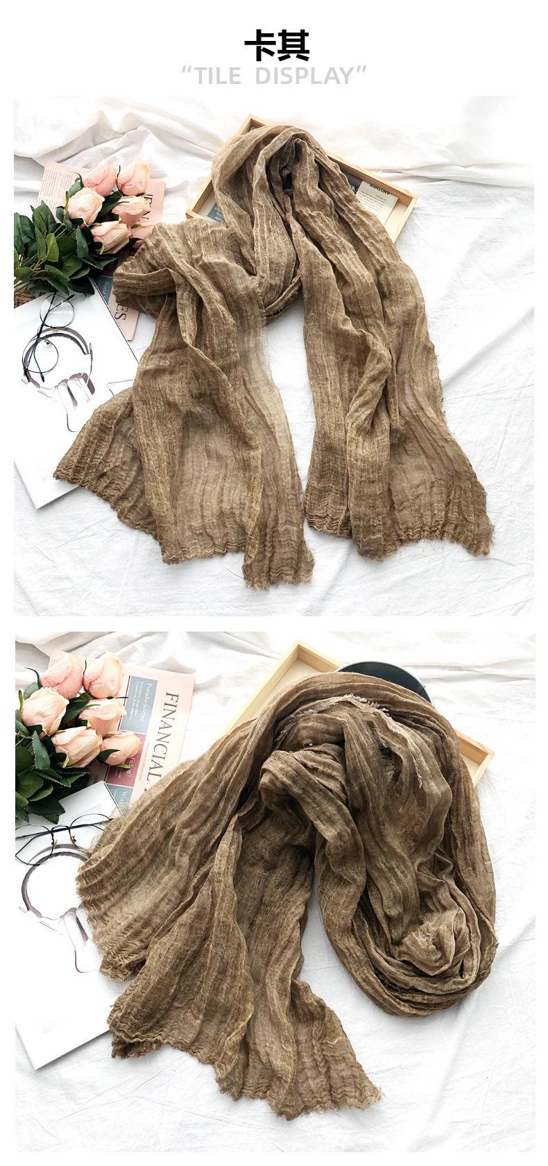 Bufanda de algodón y lino de color sólido transfronterizo, otoño e invierno, nueva bufanda de comercio exterior para hombre, bufanda de lino arrugada natural al por mayor, chal para mujer