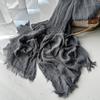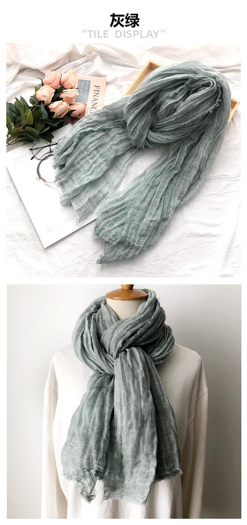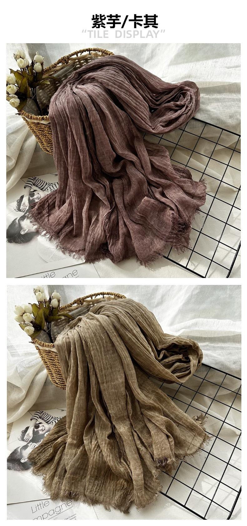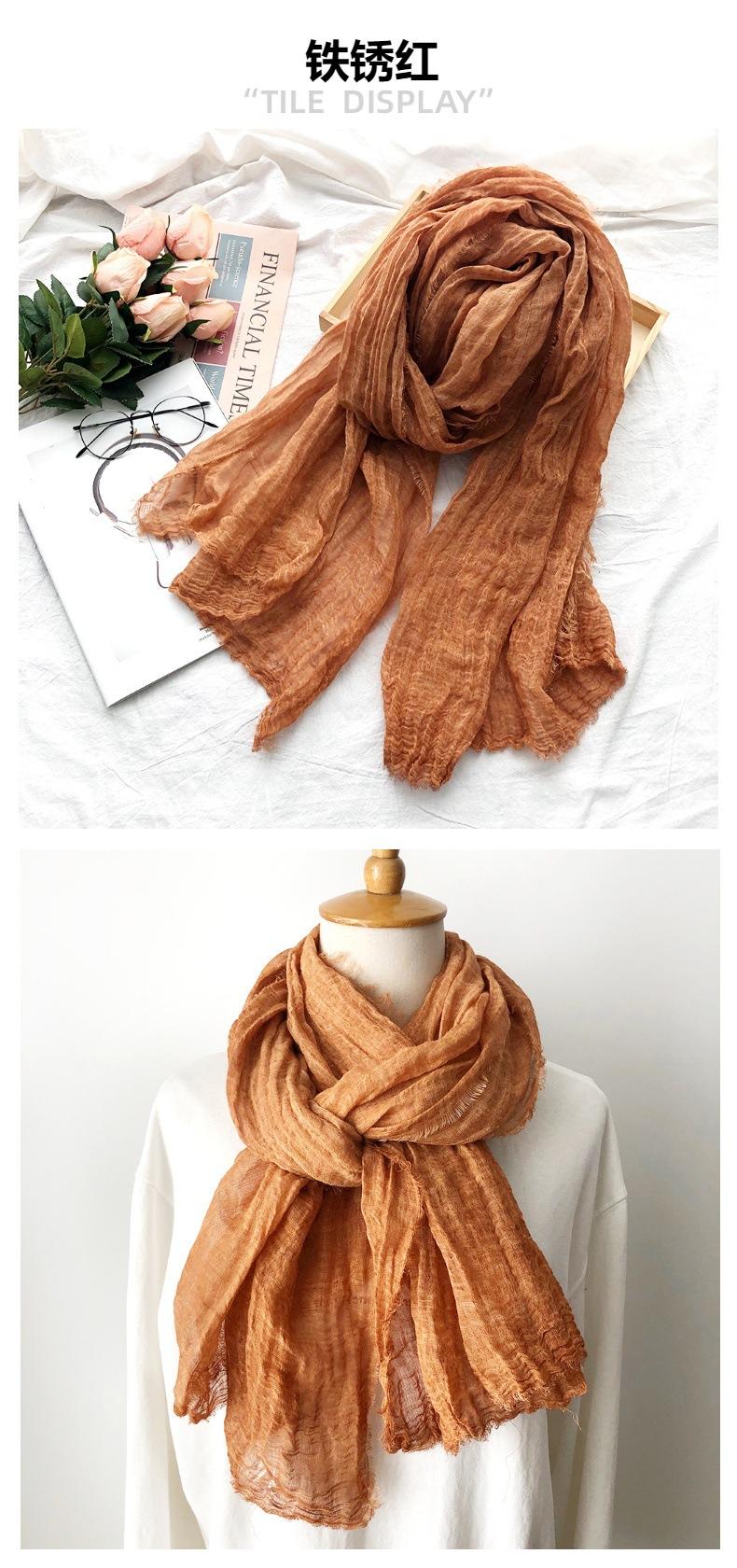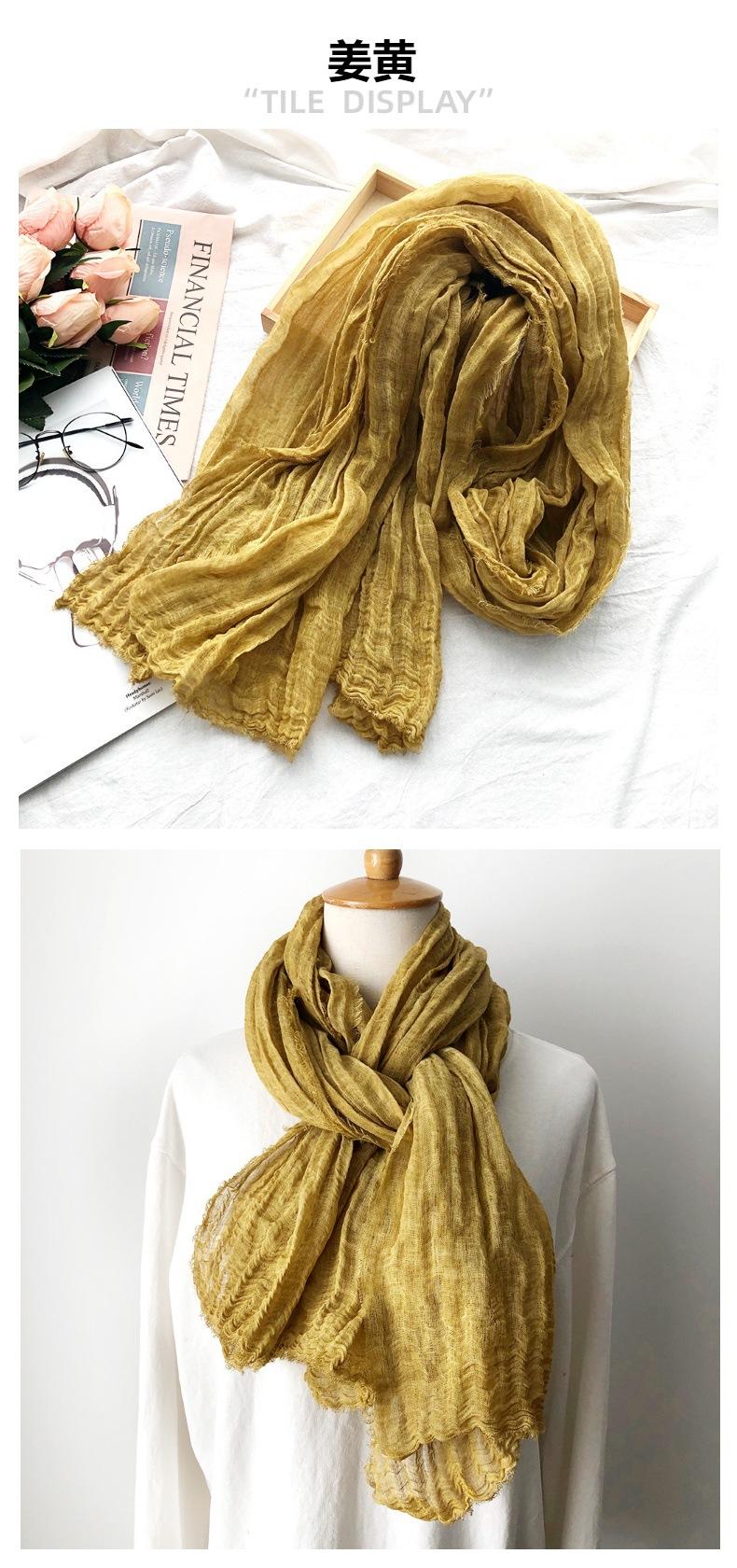 Bufanda de algodón y lino de color sólido transfronterizo, otoño e invierno, nueva bufanda de comercio exterior para hombre, bufanda de lino arrugada natural al por mayor, chal para mujer
