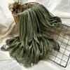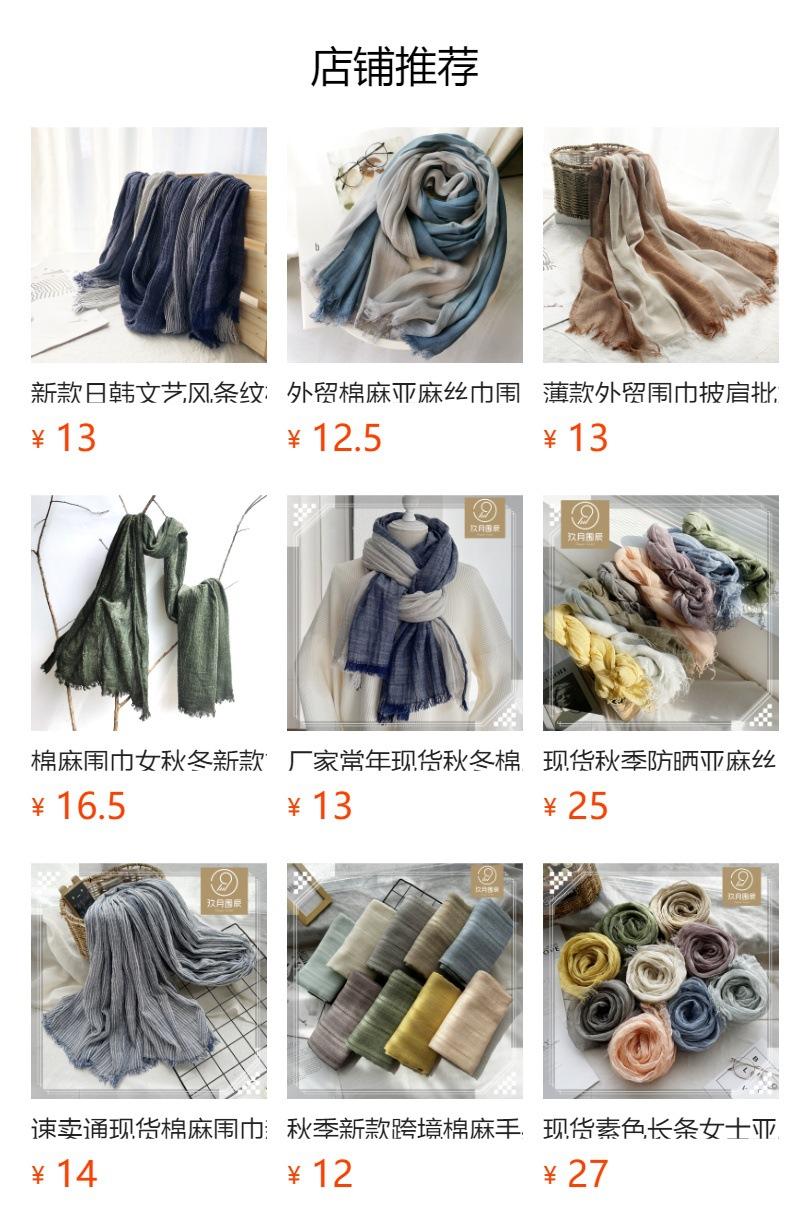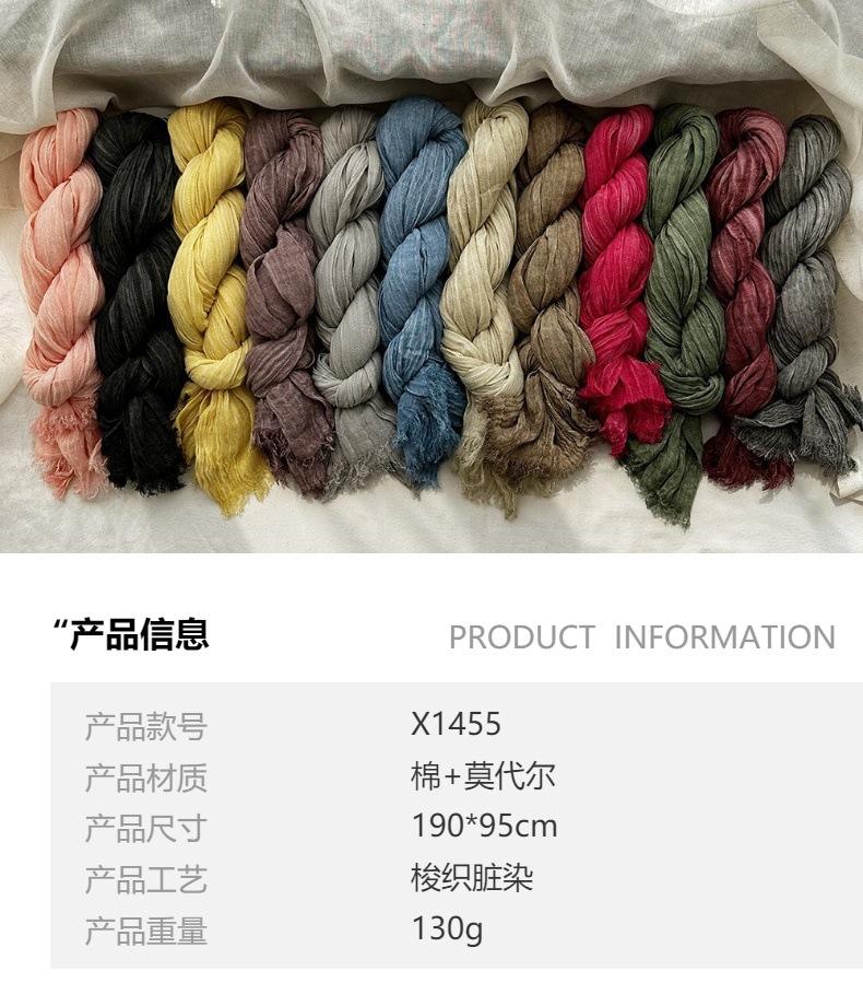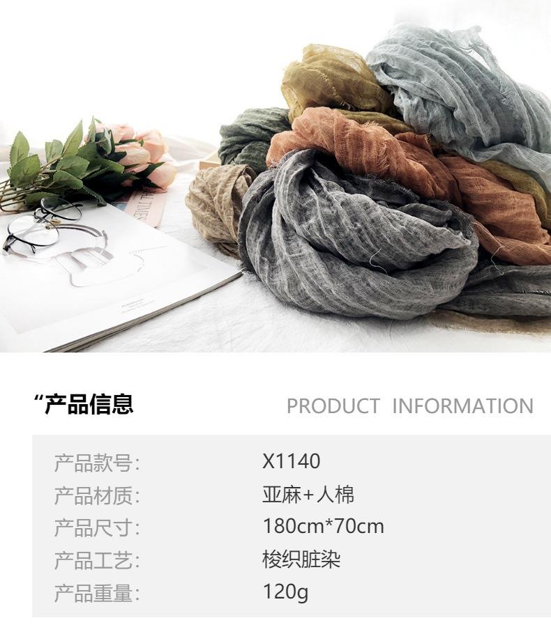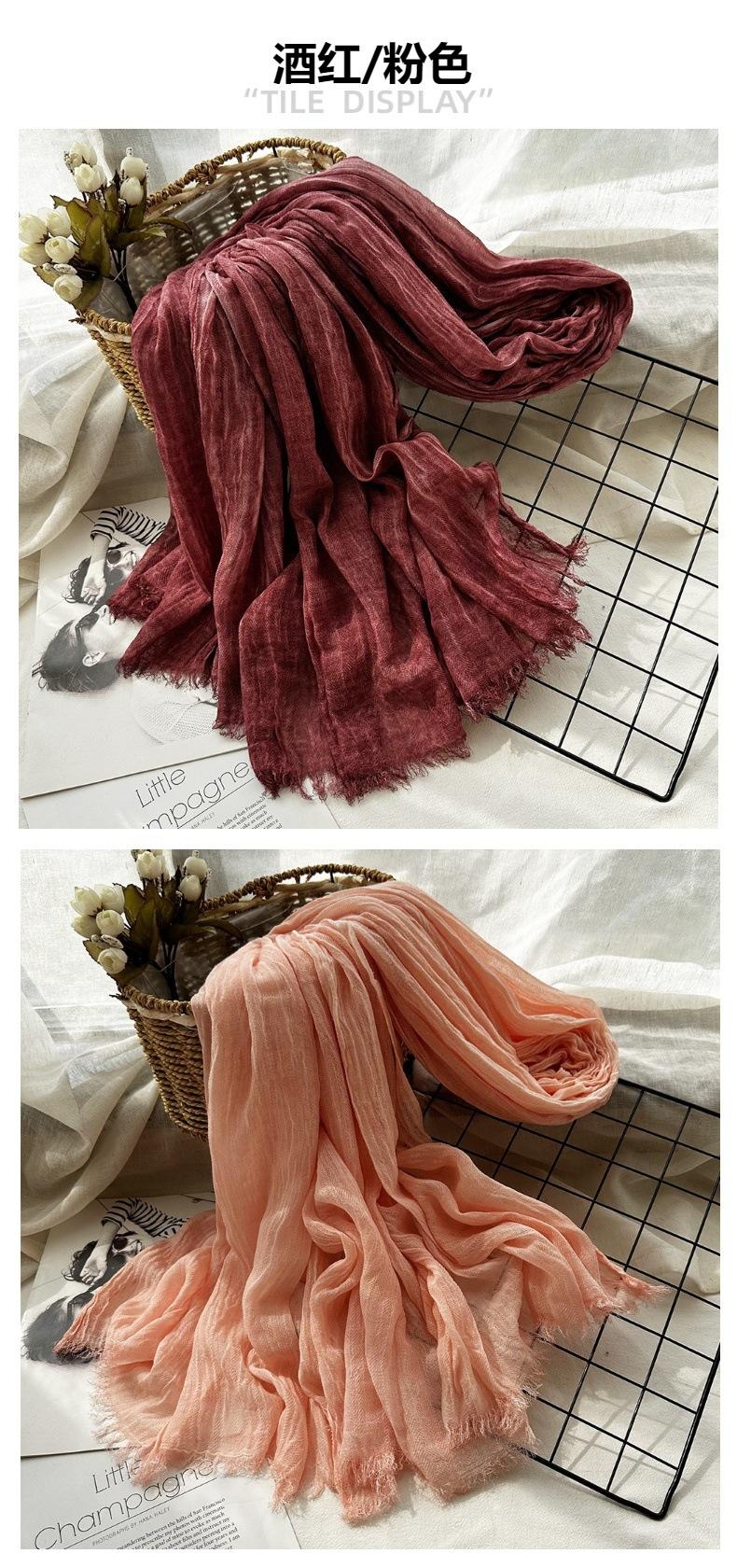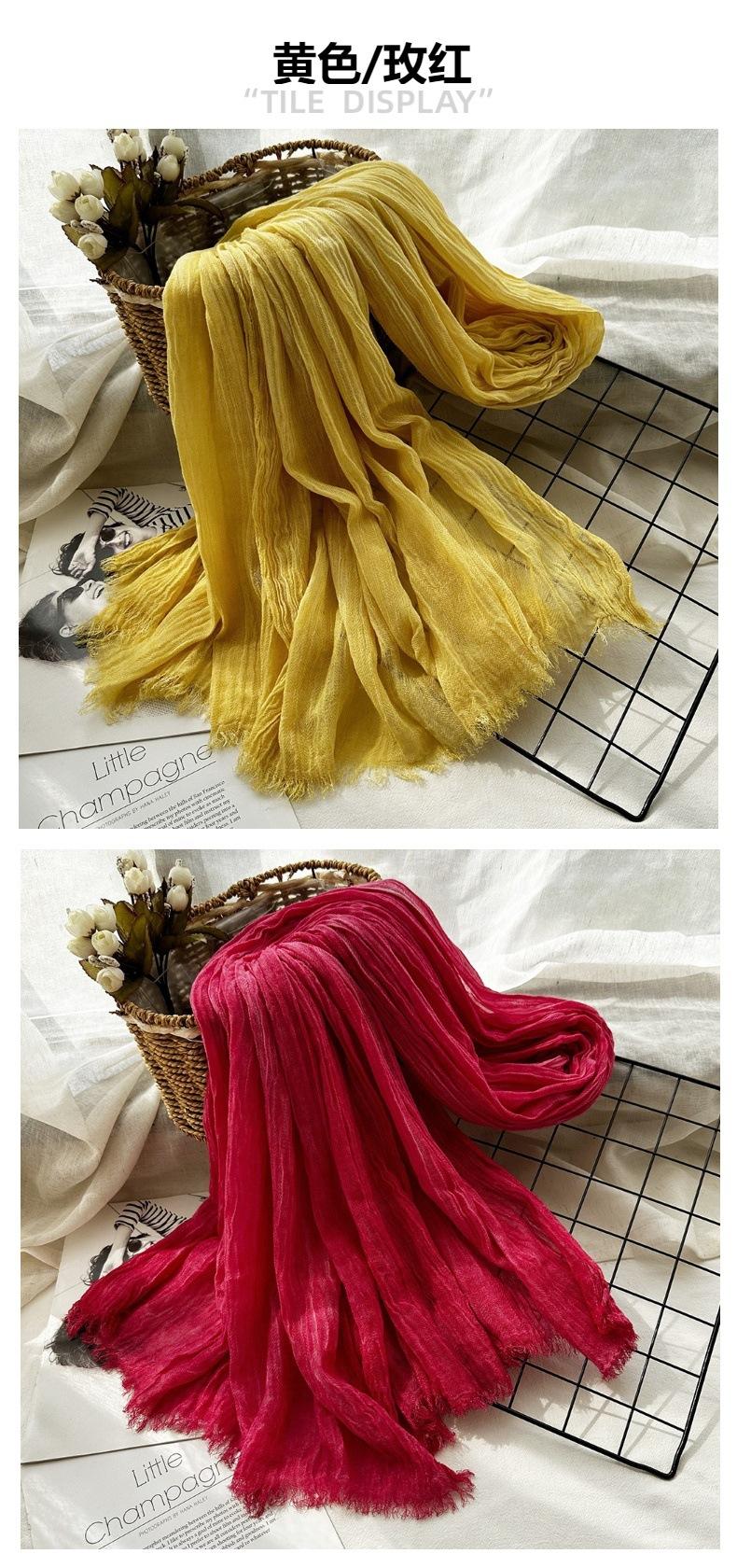 Bufanda de algodón y lino de color sólido transfronterizo, otoño e invierno, nueva bufanda de comercio exterior para hombre, bufanda de lino arrugada natural al por mayor, chal para mujer