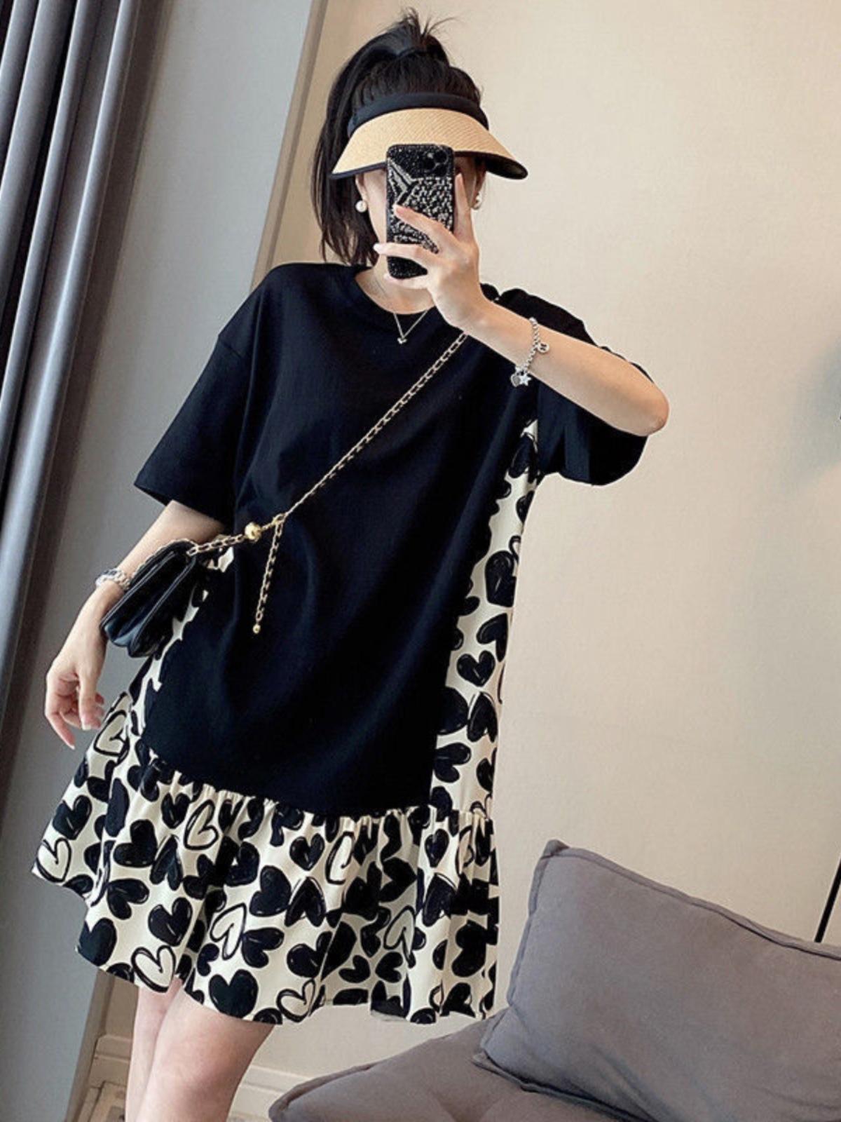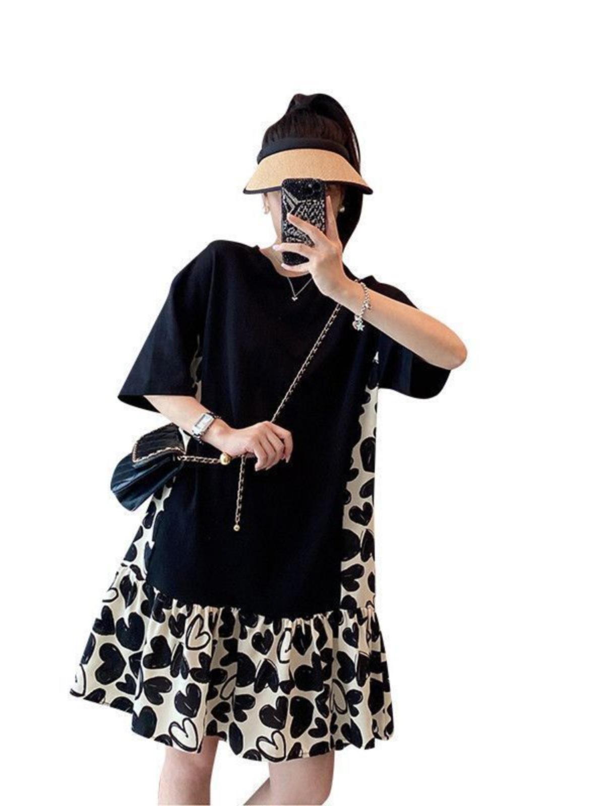 Vestido de maternidad de verano de talla grande, vestido de amor, nuevo vestido de verano de estilo coreano con flores, vestido para embarazadas.
