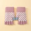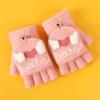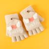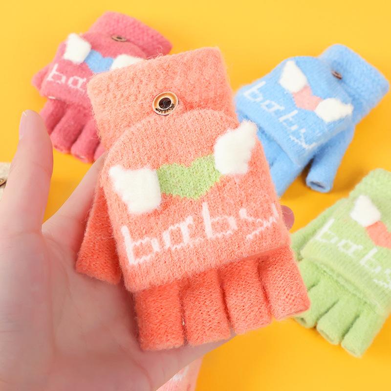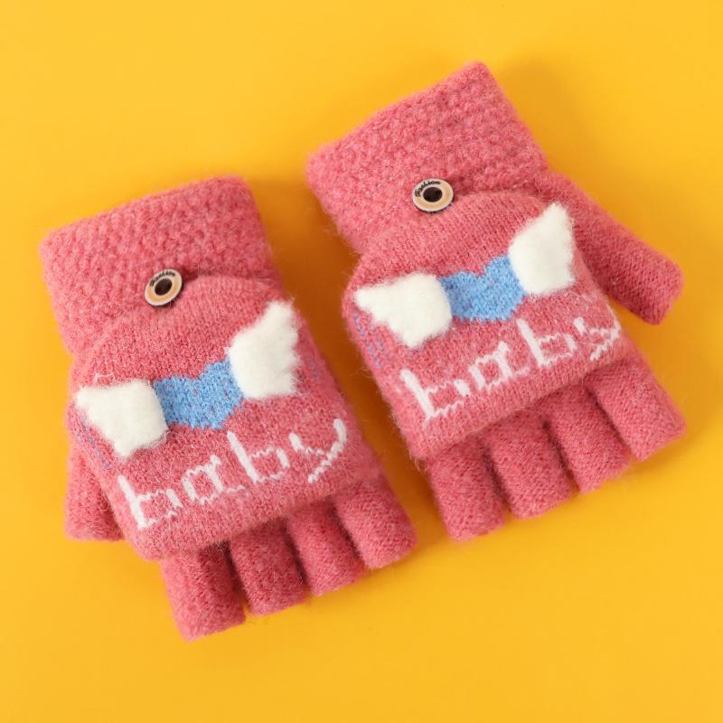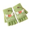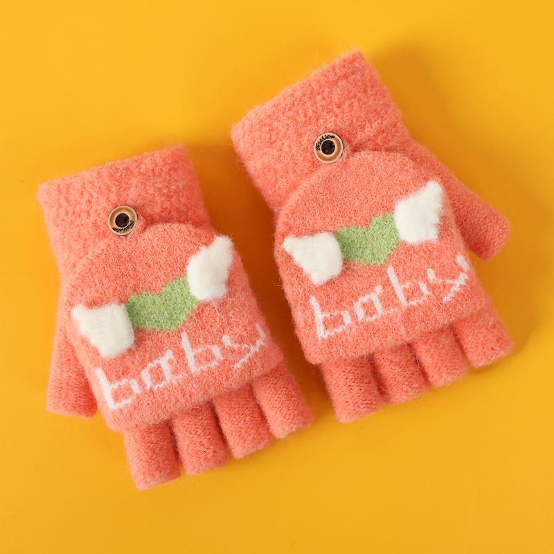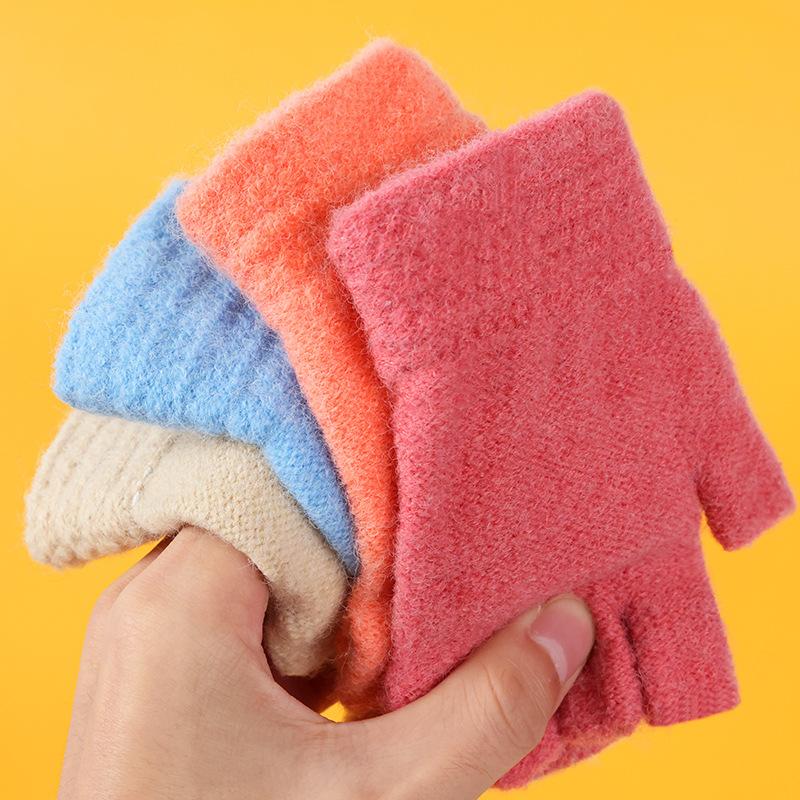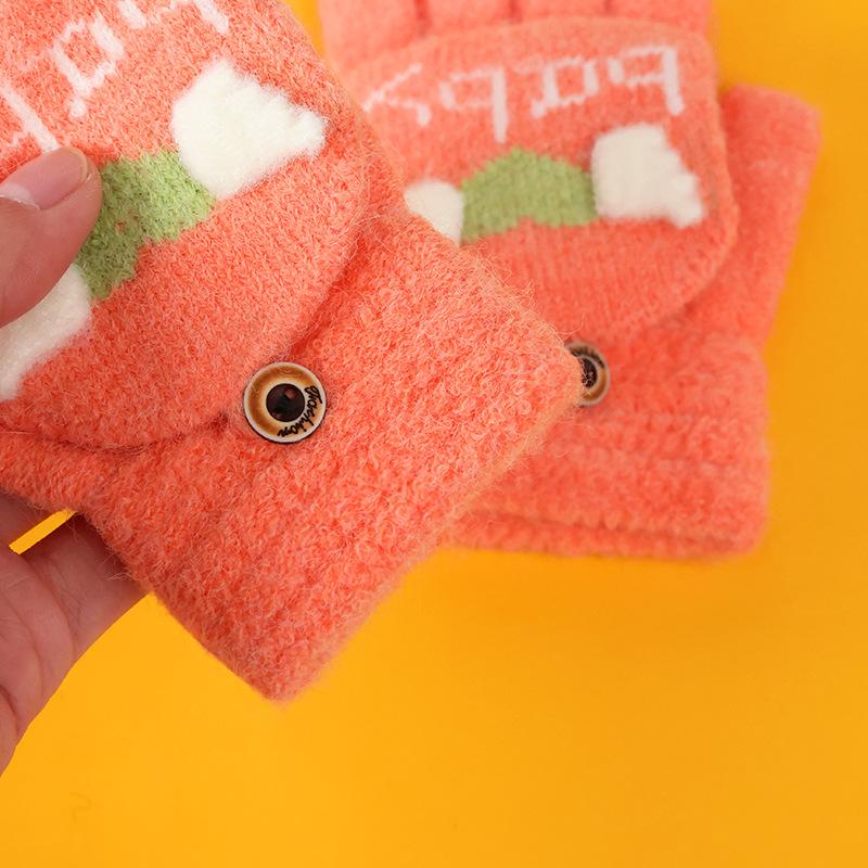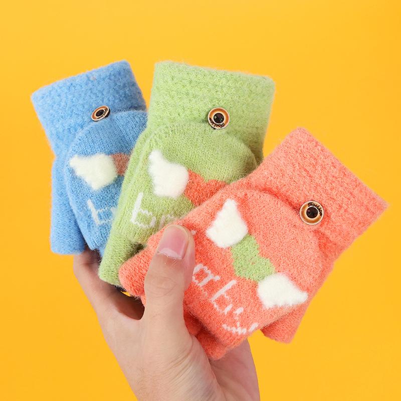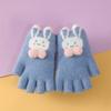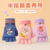 Guantes de invierno para niños, lindos guantes de medio dedo tejidos de lana para niño, dibujos animados, de doble uso, de cinco dedos, forrados de vellón, para estudiantes, para escribir en medio dedo.