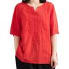 Camiseta de algodón y lino de color liso para mujer, novedad de 2024, camisa holgada artística de manga corta de verano, elegante, holgada, retro, a la moda.