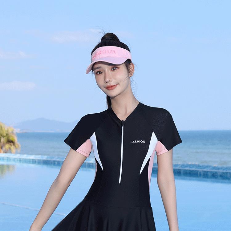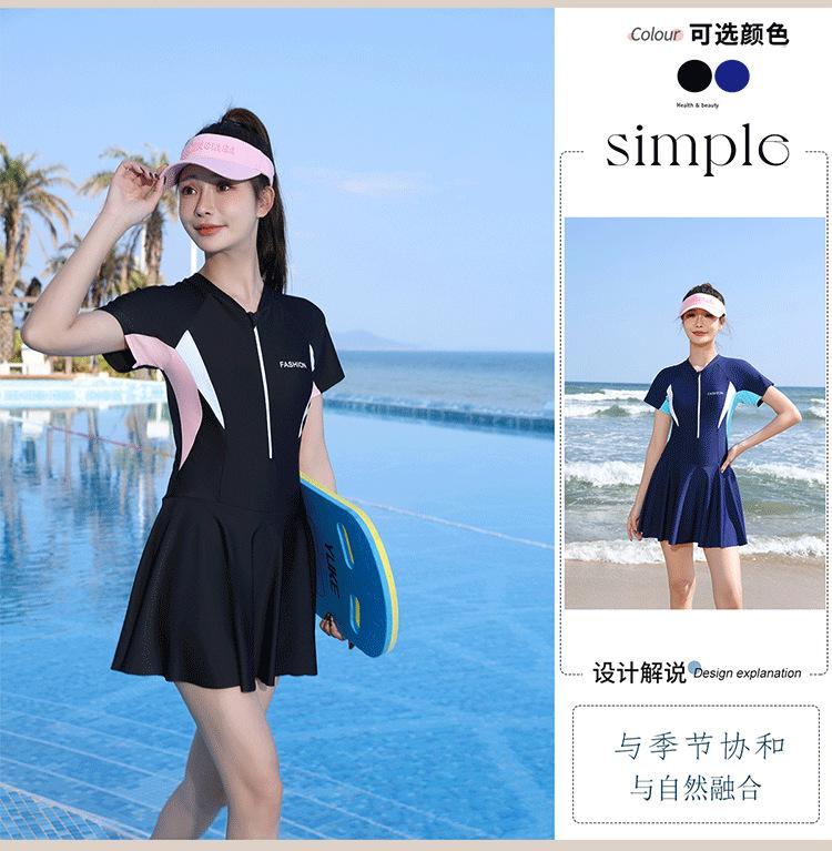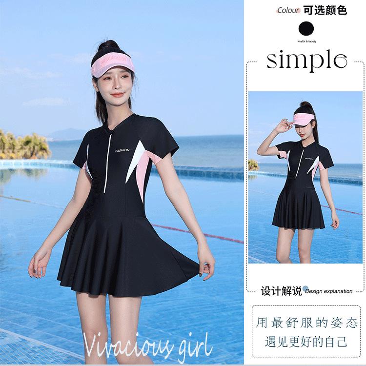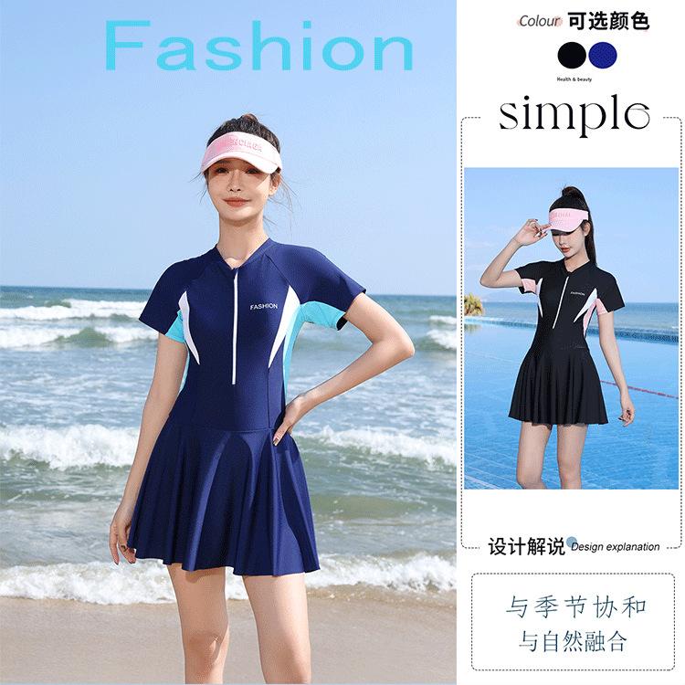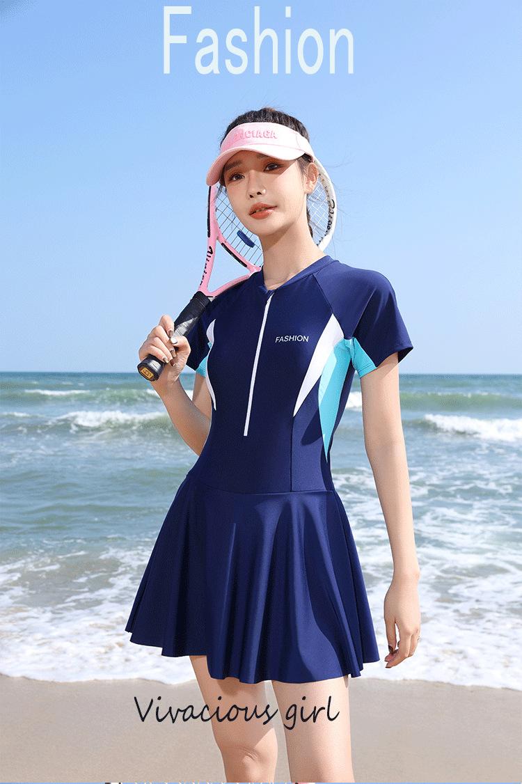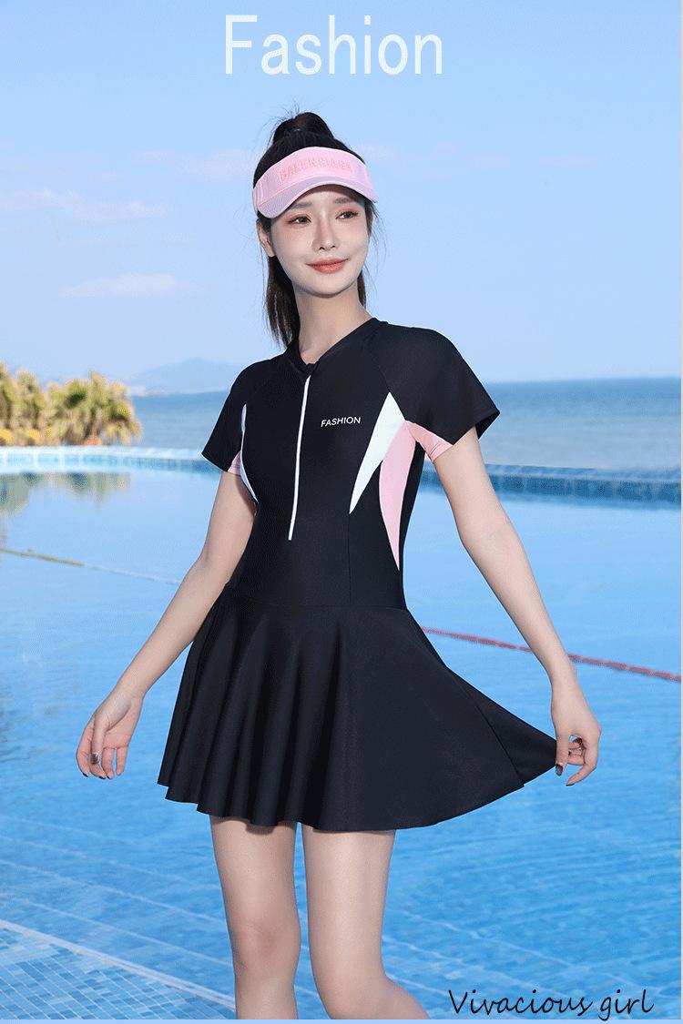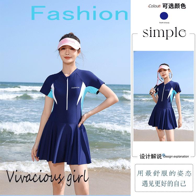 Traje de Baño Nuevo 2024 Moda Femenina Falda Deportiva Estudiante Una Pieza Conservador Cubre Vientre Adelgazante Secado Rápido Fresco Orilla del Mar
