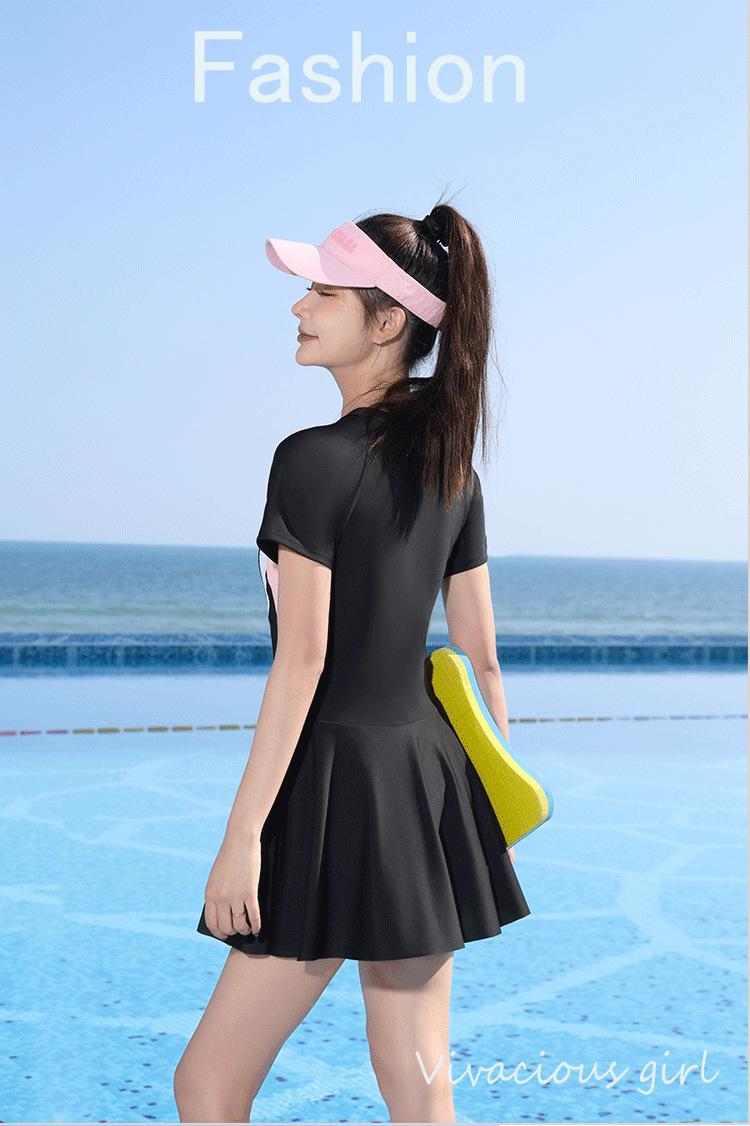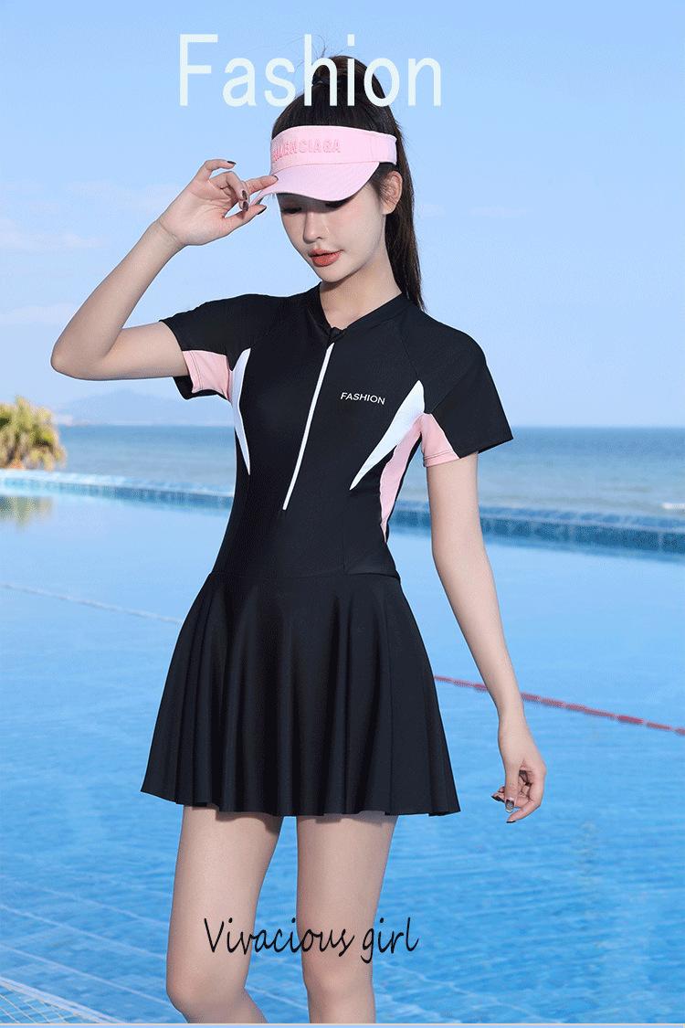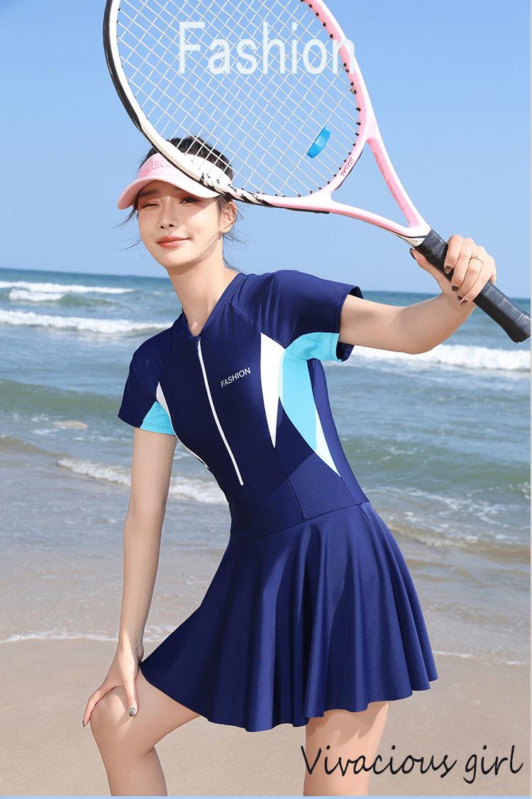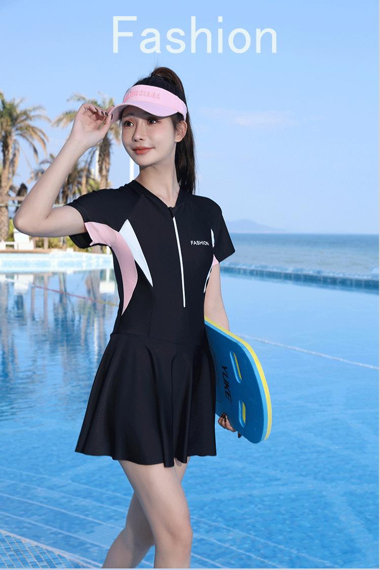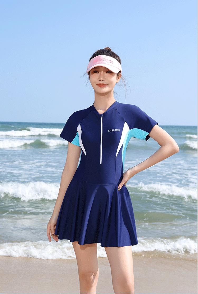 Traje de Baño Nuevo 2024 Moda Femenina Falda Deportiva Estudiante Una Pieza Conservador Cubre Vientre Adelgazante Secado Rápido Fresco Orilla del Mar