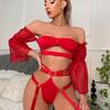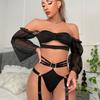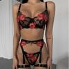 Conjunto de lencería sexy de Europa y Estados Unidos, suministro de comercio exterior, perspectiva sexy, liguero, ropa interior sexy, conjunto de tres piezas
