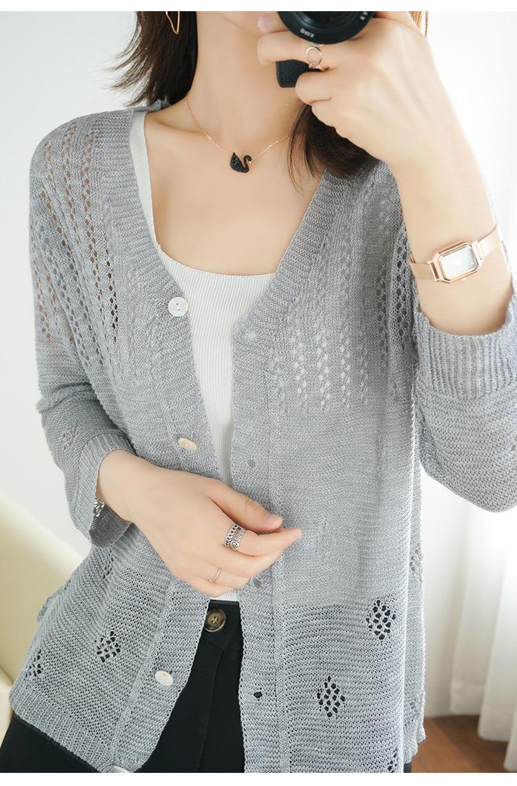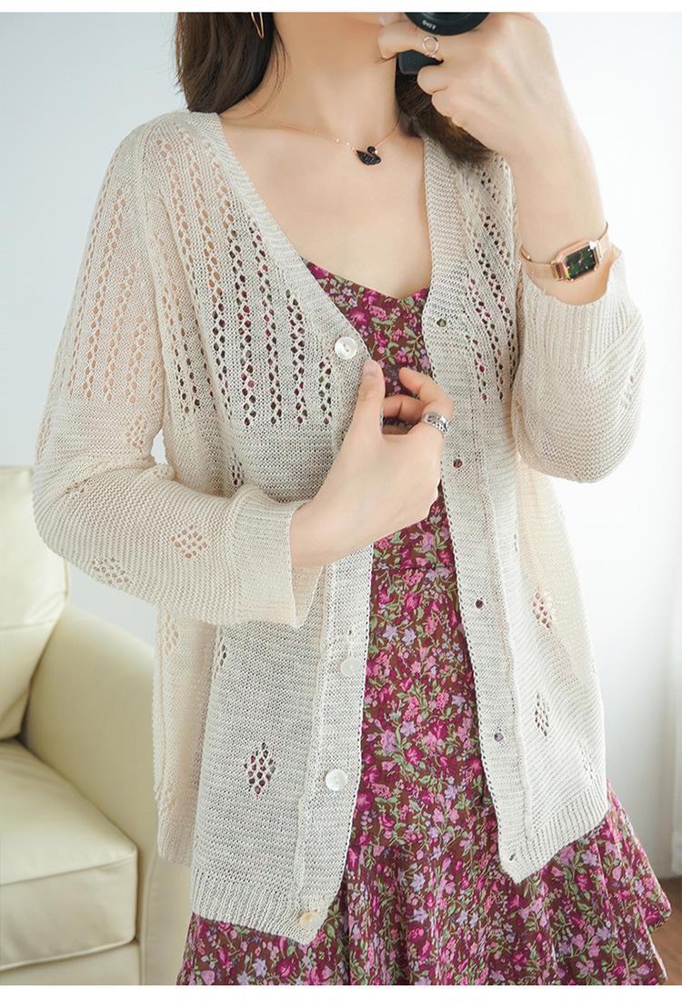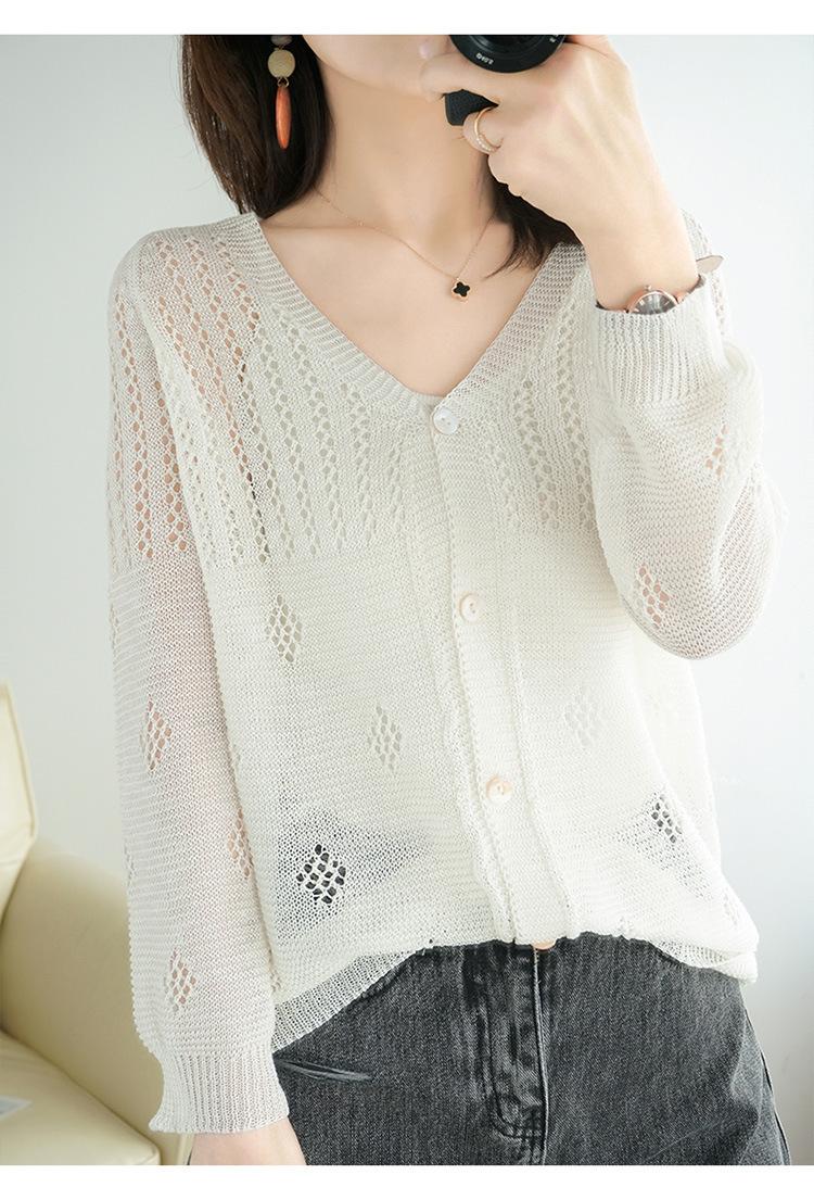 Cárdigan de punto corto de estilo coreano popular en Internet, nueva camisa fina hueca con protección solar para primavera y verano, camisa de aire acondicionado para mujer, chal exterior