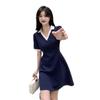 Vestido Línea A de Cintura con Cuello en V Diseño Pequeño Nicho Francés Falda Larga 2025 Verano para Mujer Nuevo Estilo