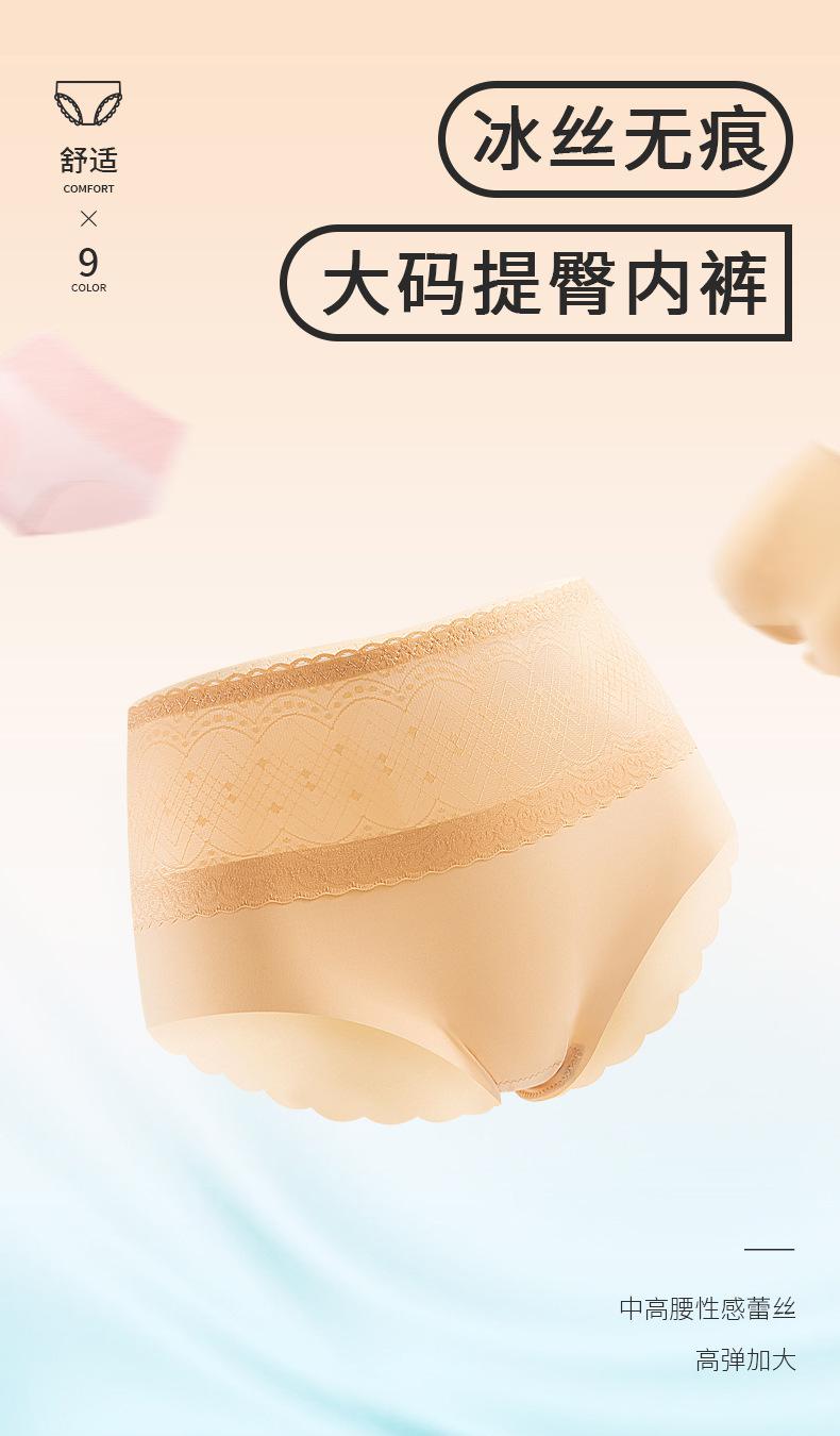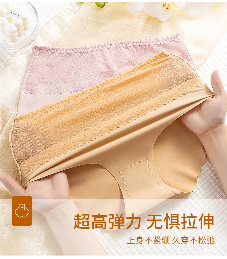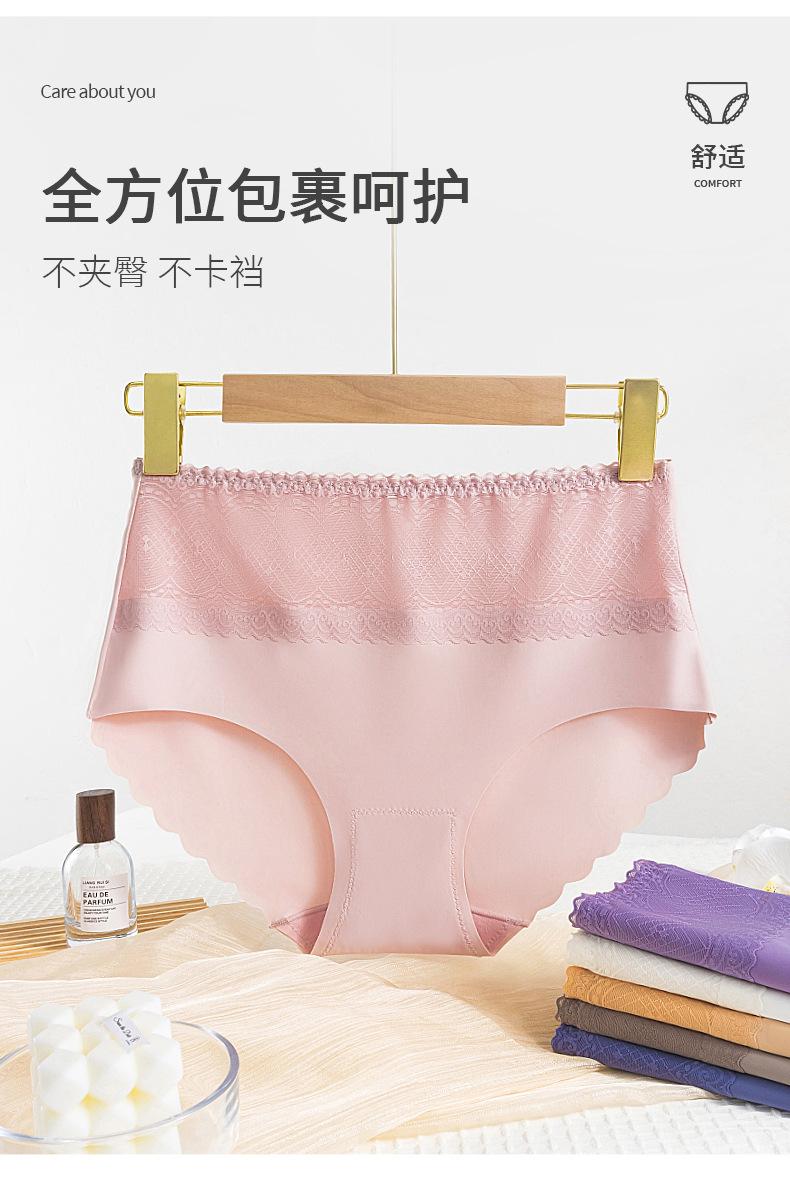 Ropa interior para mujer Xiaotianer sin costuras de talle medio, de seda de hielo, tipo funda, levanta glúteos, transpirable, sensación desnuda, cómoda, color sólido, entrepierna antibacteriana de algodón puro