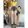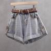 Talla Grande Gordo mm Shorts de Mezclilla de Cintura Alta para Mujer Chic Verano 2025 Nuevo Look Holgado Adelgazante Pierna Ancha Dobladillo A-Line Hot Pants