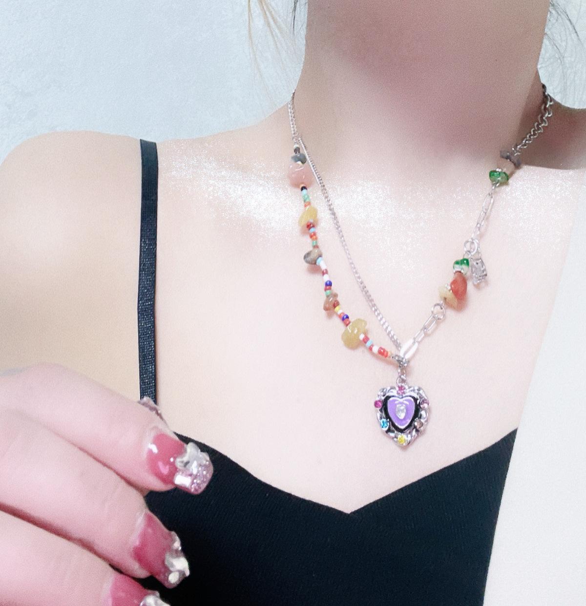 Collar con colgante de corazón morado estilo Spice Girl con costuras naturales y dopamina de color para mujer