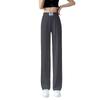 Pantalones anchos de pierna ancha con bolsillo 2024 para mujer, nuevos pantalones casuales rectos y sueltos de seda helada con cintura alta y finos de verano.
