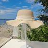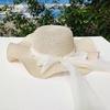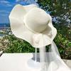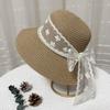 Sombrero de Paja de Malla de Perlas Sombrero de Verano para Mujer Sombrero Parasol de Moda Combinable Sombrero de Playa para la Costa Protección UV Sombrero para el Sol