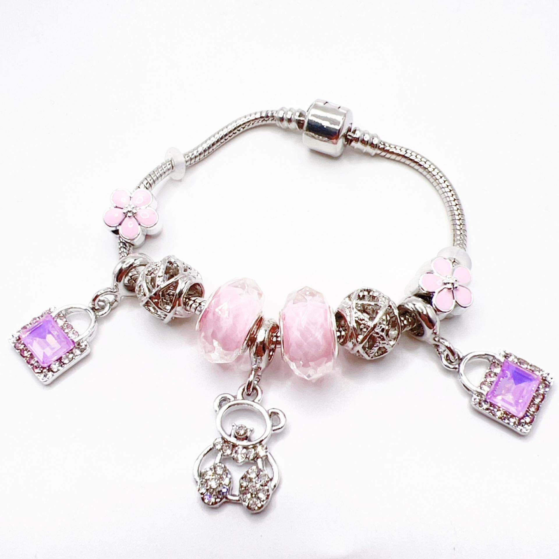 Pulsera colgante con diseño de oso multicolor transfronterizo de Panjia, con flores que gotean, transmisión en vivo, venta al por mayor de moda en Amazon