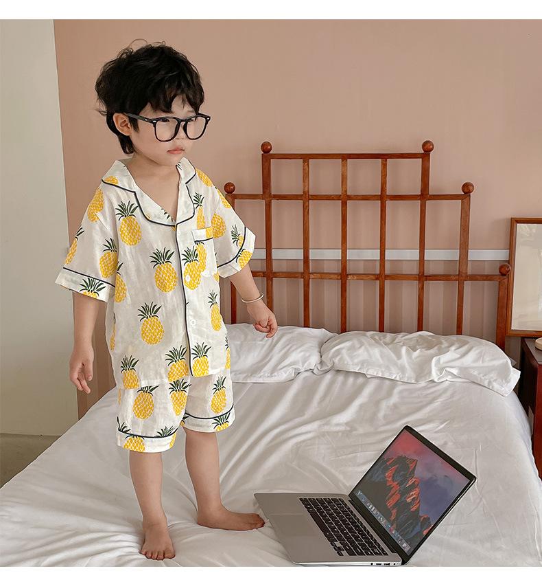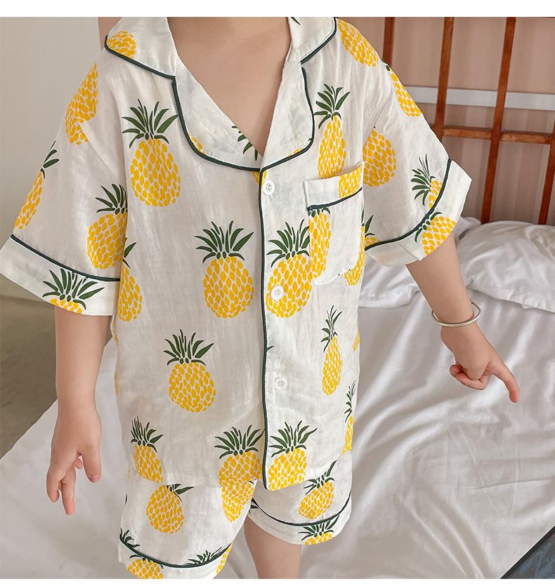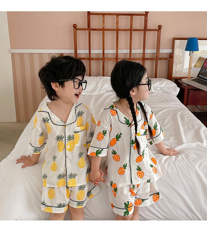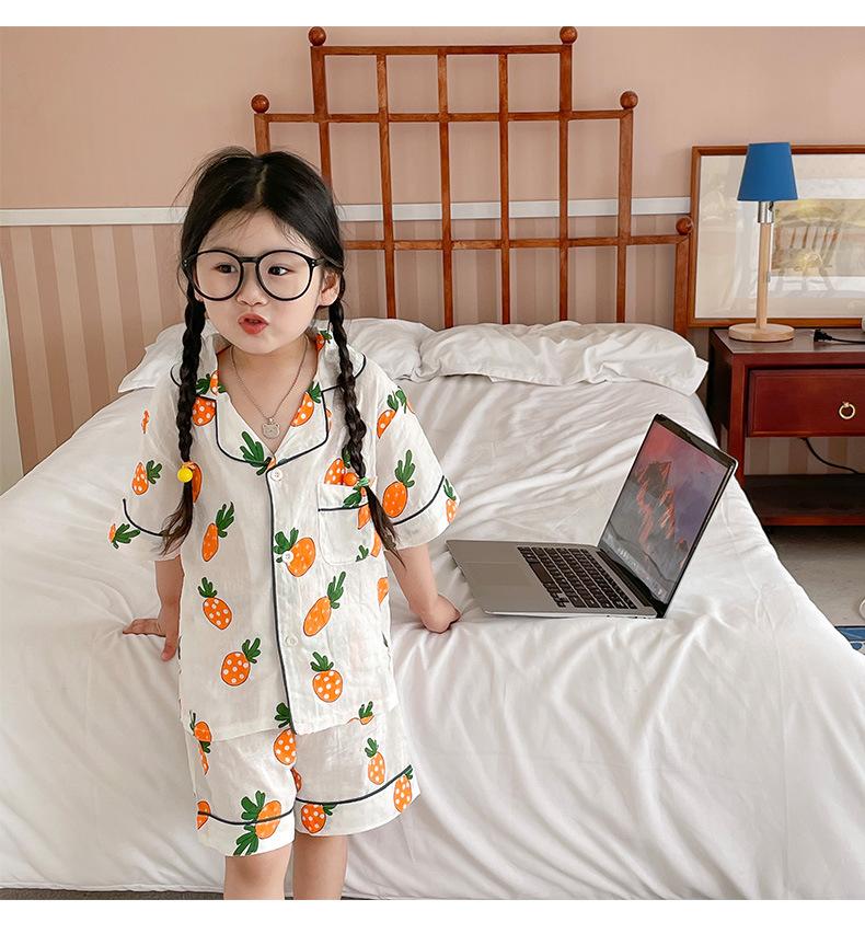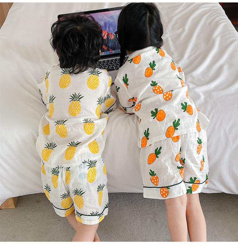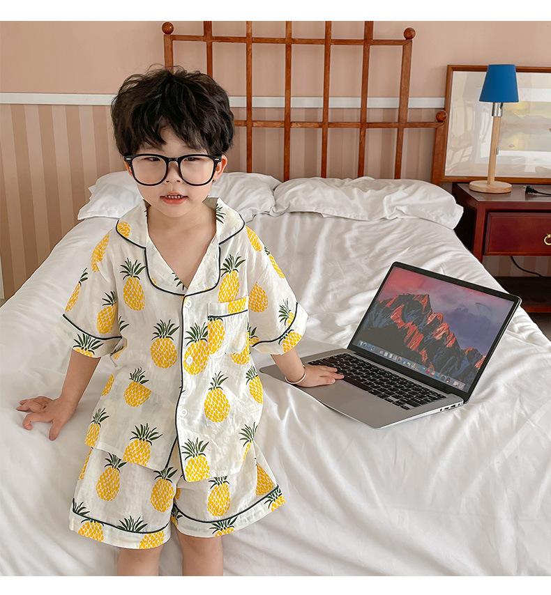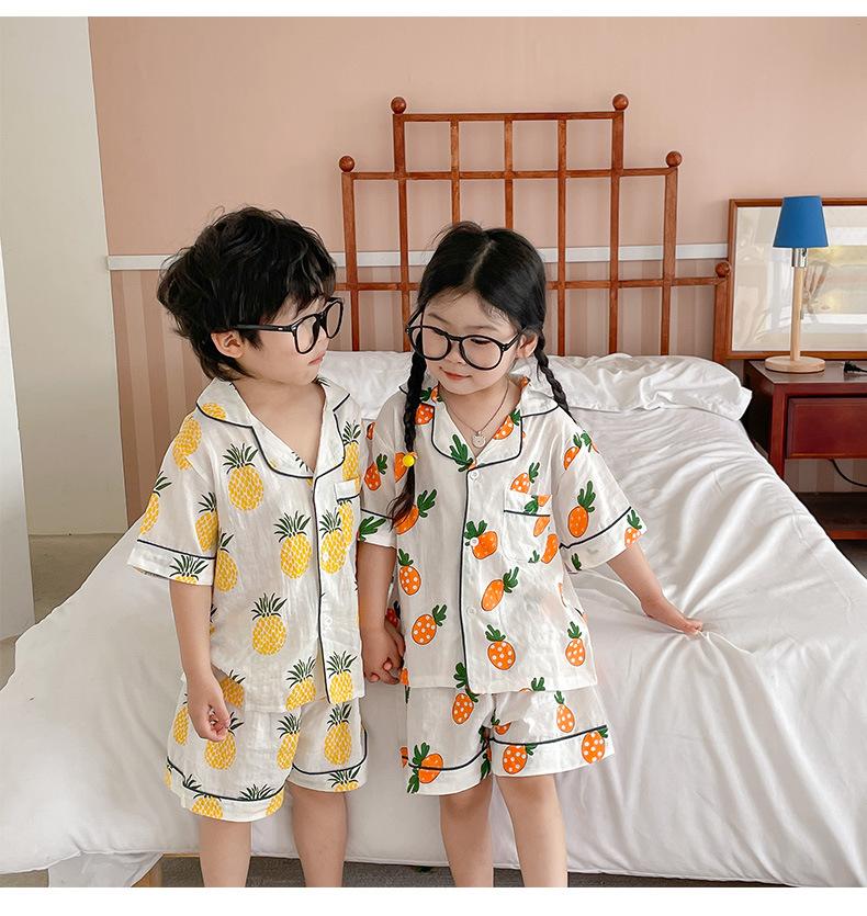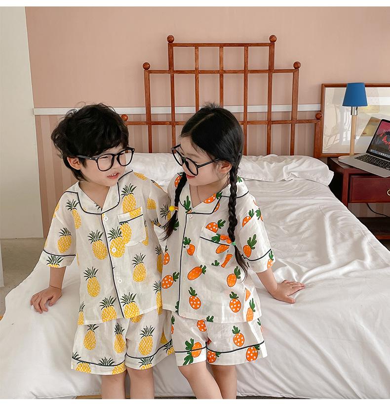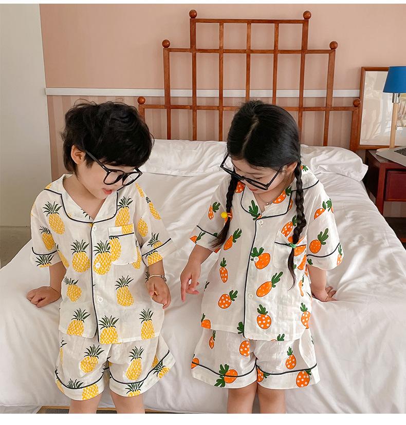 Conjunto de Pijama de Algodón Puro de Manga Corta para Niños Verano Algodón Fino Gasa Ropa para el Hogar para Niños y Niñas, Absorbe la Humedad y Elimina el Sudor
