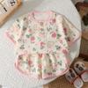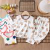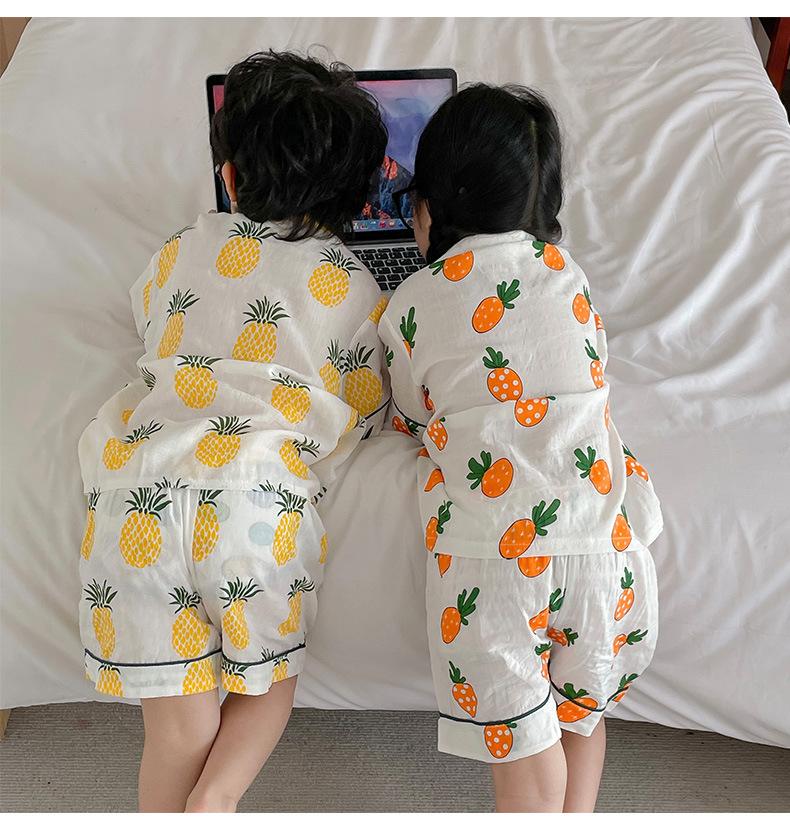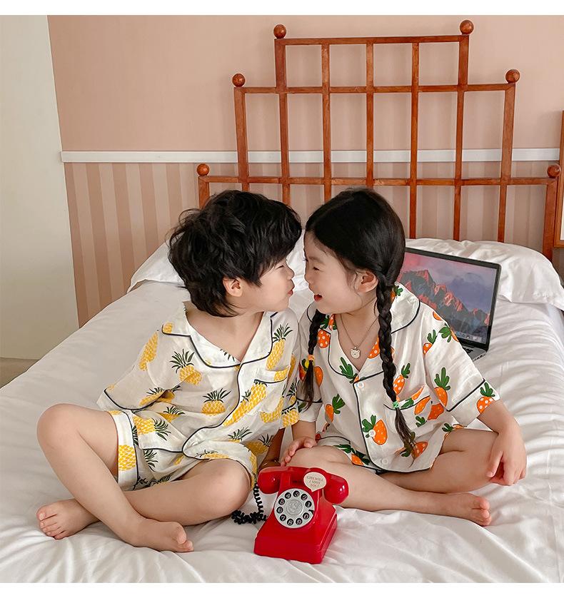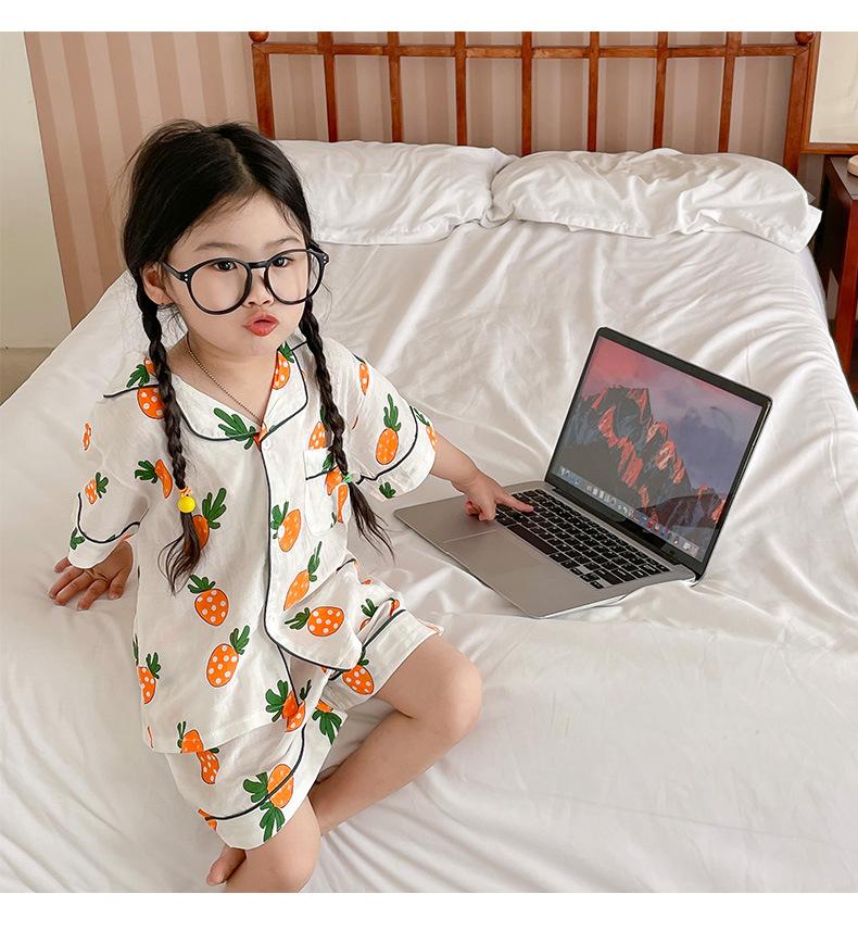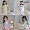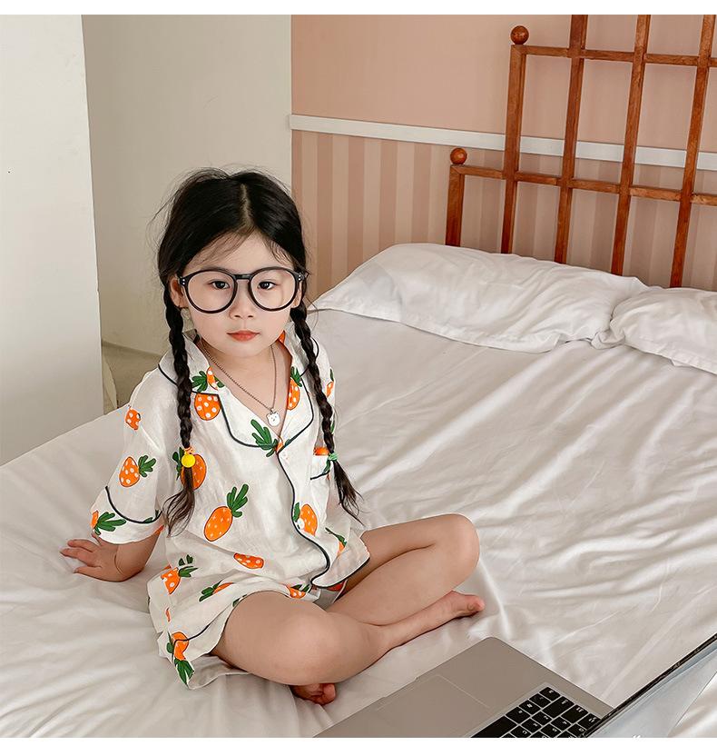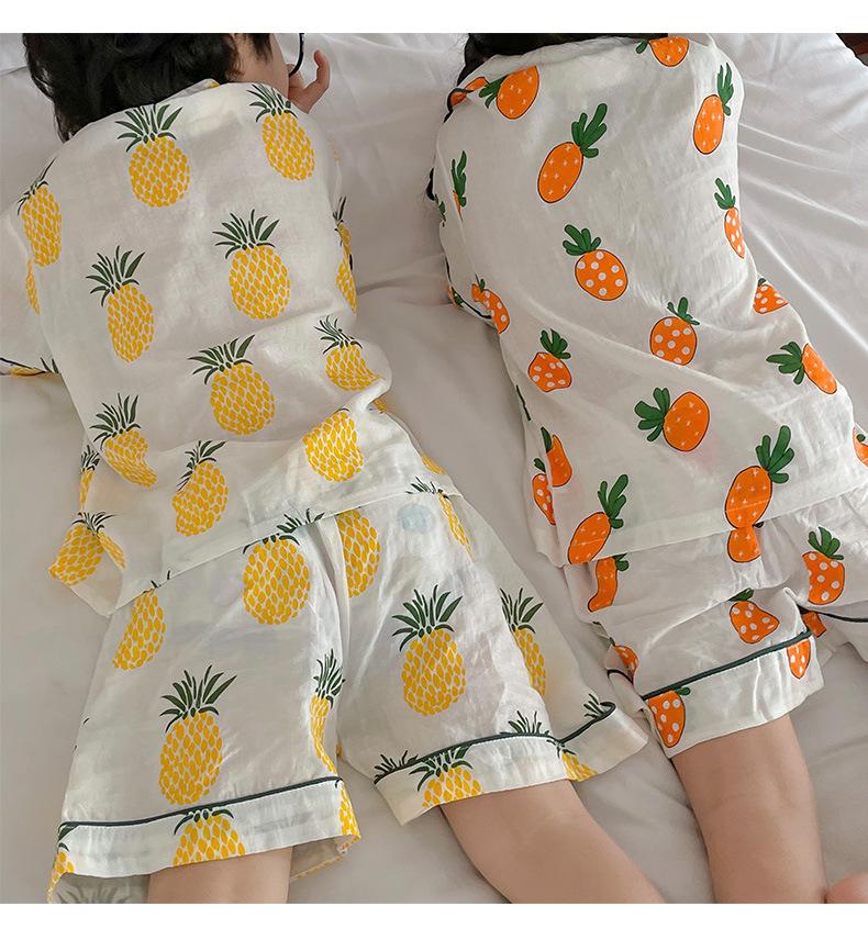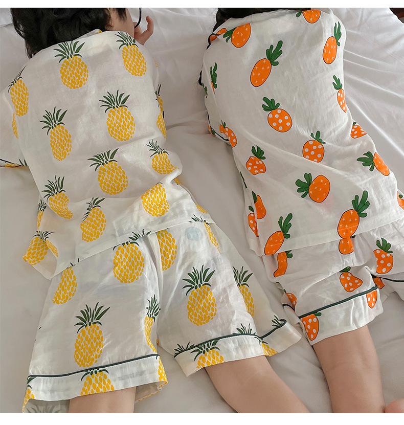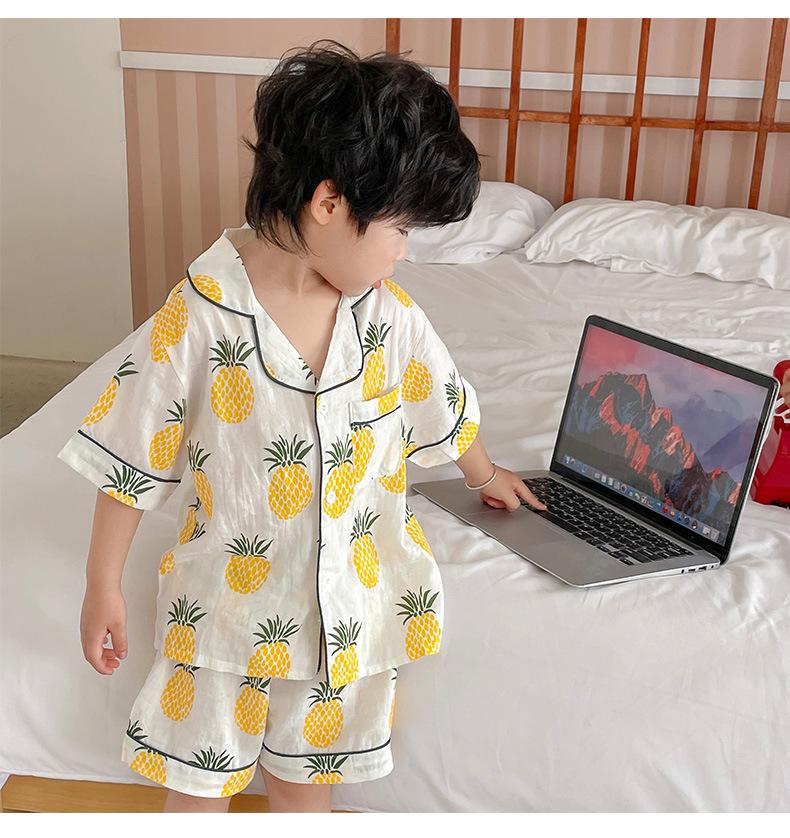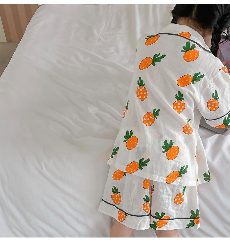 Conjunto de Pijama de Algodón Puro de Manga Corta para Niños Verano Algodón Fino Gasa Ropa para el Hogar para Niños y Niñas, Absorbe la Humedad y Elimina el Sudor