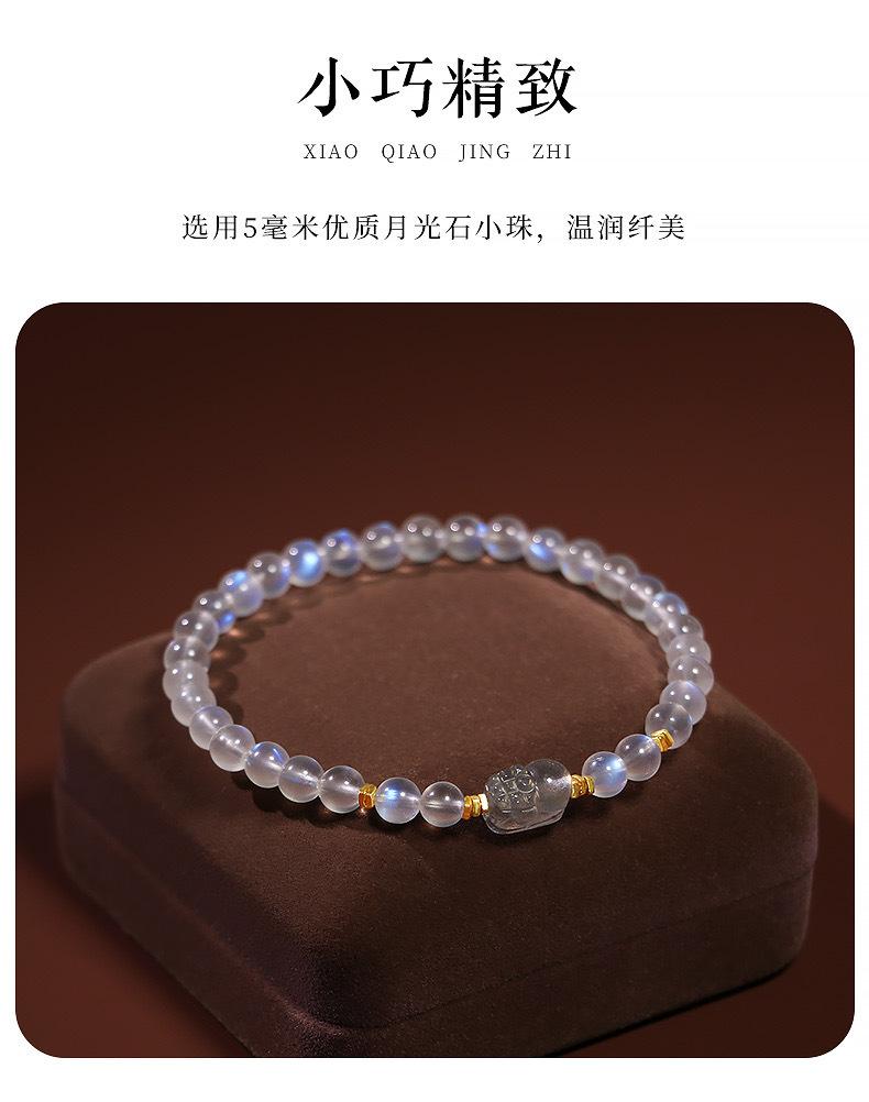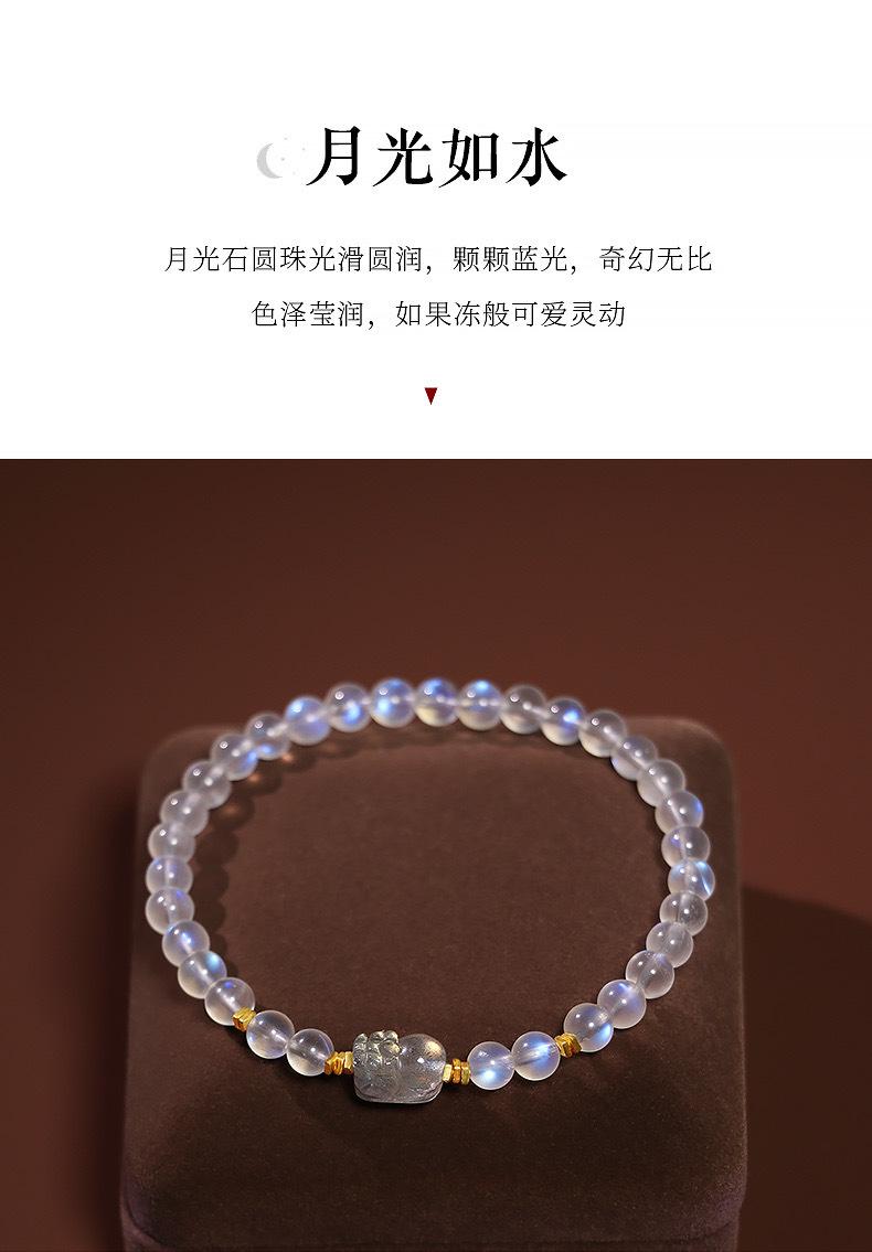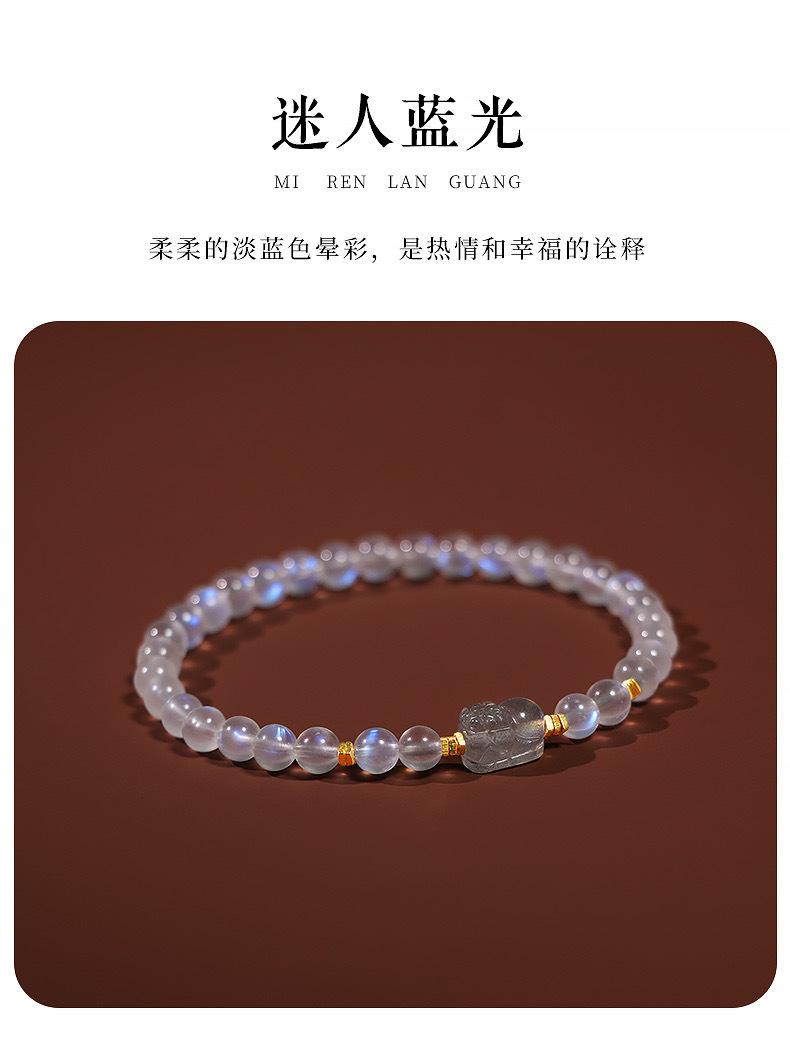 Pulsera Pixiu de Piedra de Luz de Luna para Mujer, Piedra de Tracción, Luz Azul, Lujo, Nicho, Piqiu Exquisito, Pulsera de Cuentas de Transferencia
