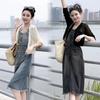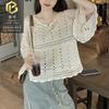 Cárdigan de punto con protector solar de seda de hielo para mujer, de verano, talla grande, cuello en V, color liso, fino, chal hueco, chaqueta exterior corta