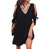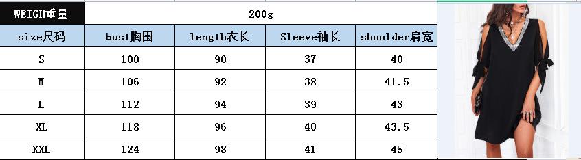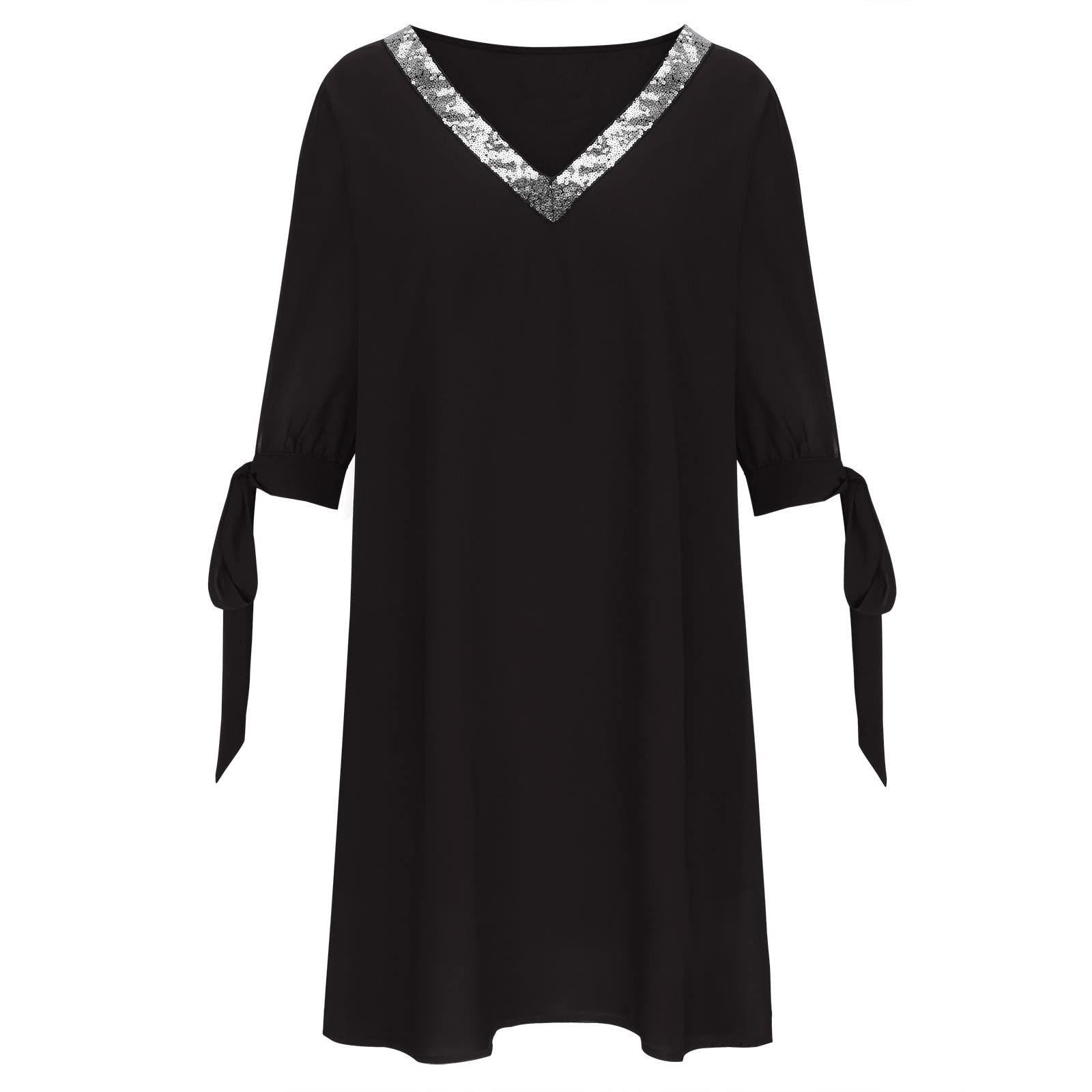 Vestido de Chifón de Color Sólido con Cuello en V, Parche de Lentejuelas, Lazado, Manga Corta Holgada con Hombros Descubiertos, Estilo Europeo y Americano Transfronterizo para Mujer con un Ambiente Moderno y Elegante