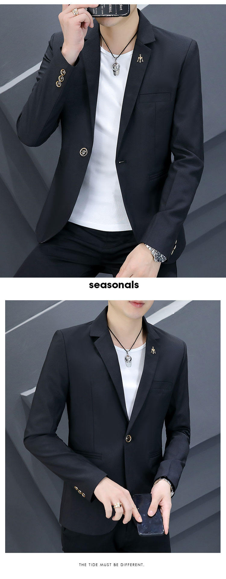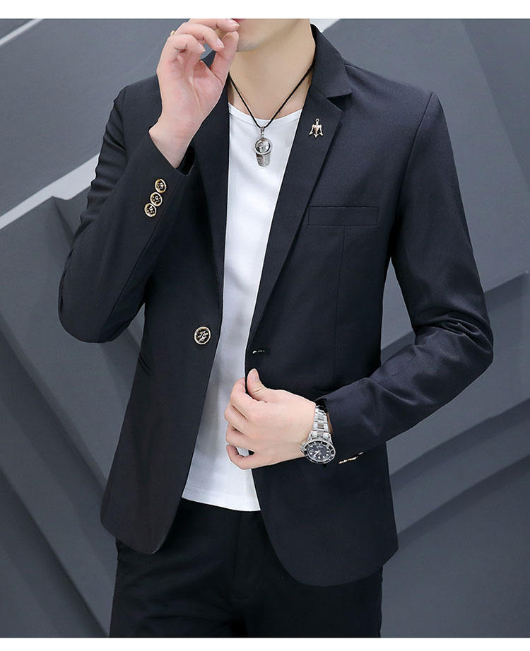 Traje sencillo para hombre transfronterizo, estilo coreano, corte entallado, elegante, informal, de color sólido, traje formal de moda, abrigo para hombre