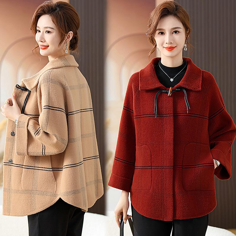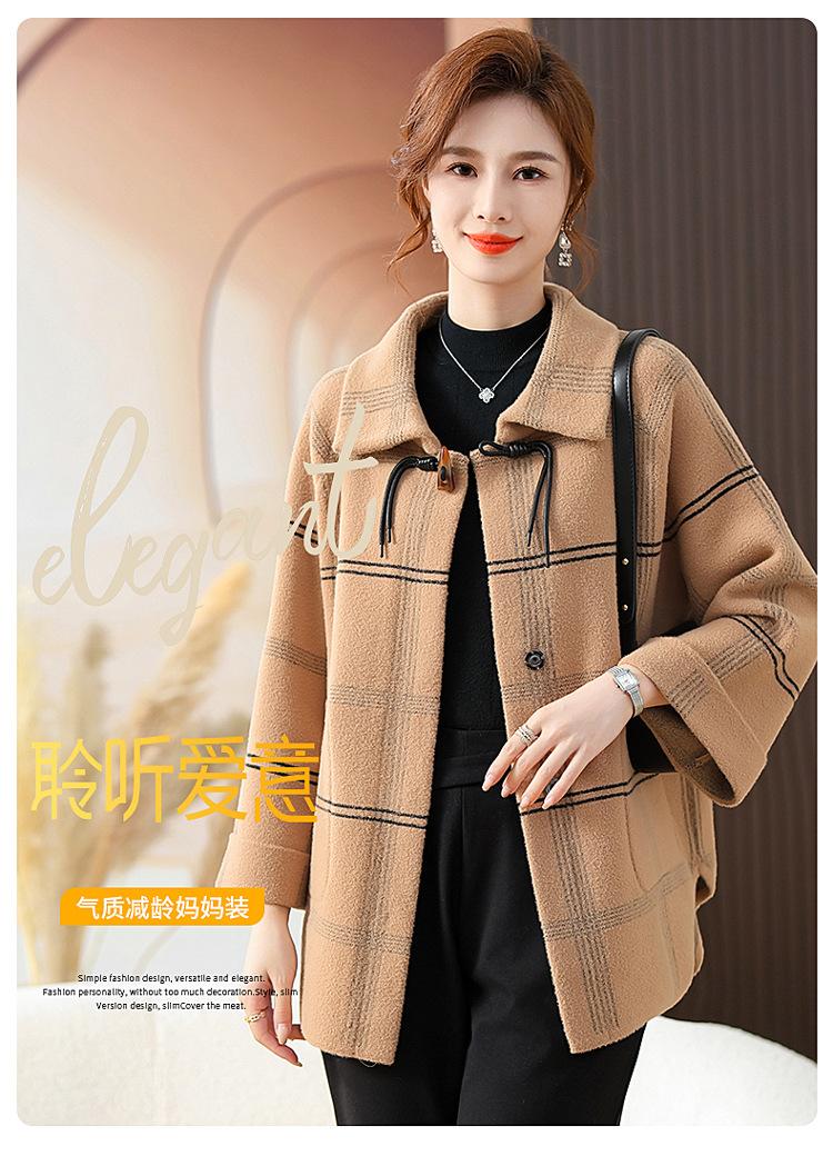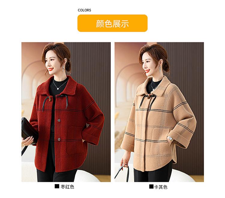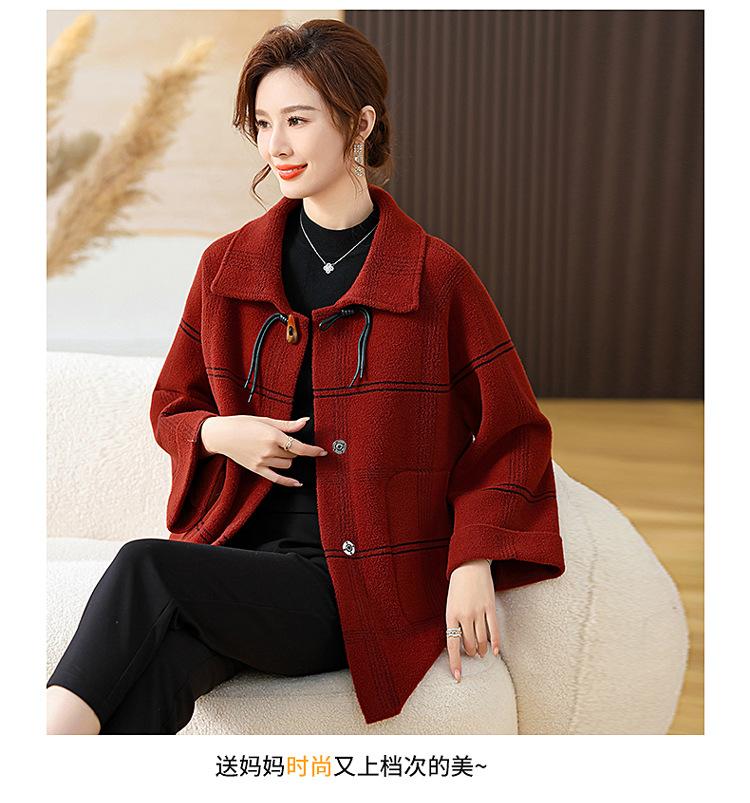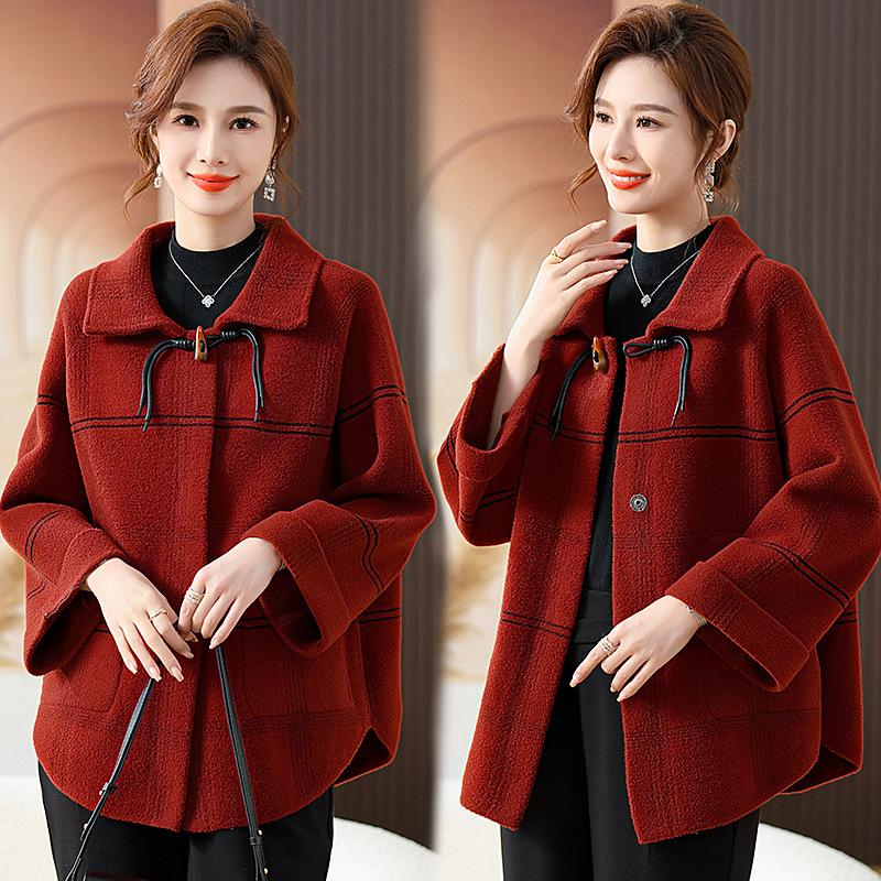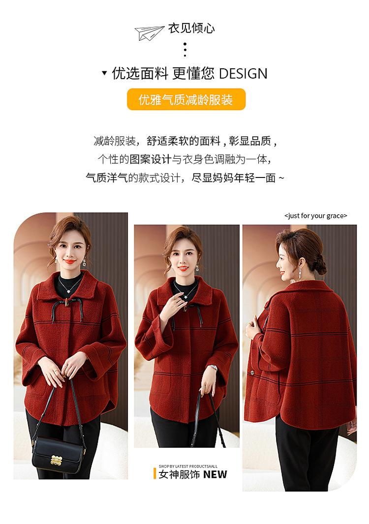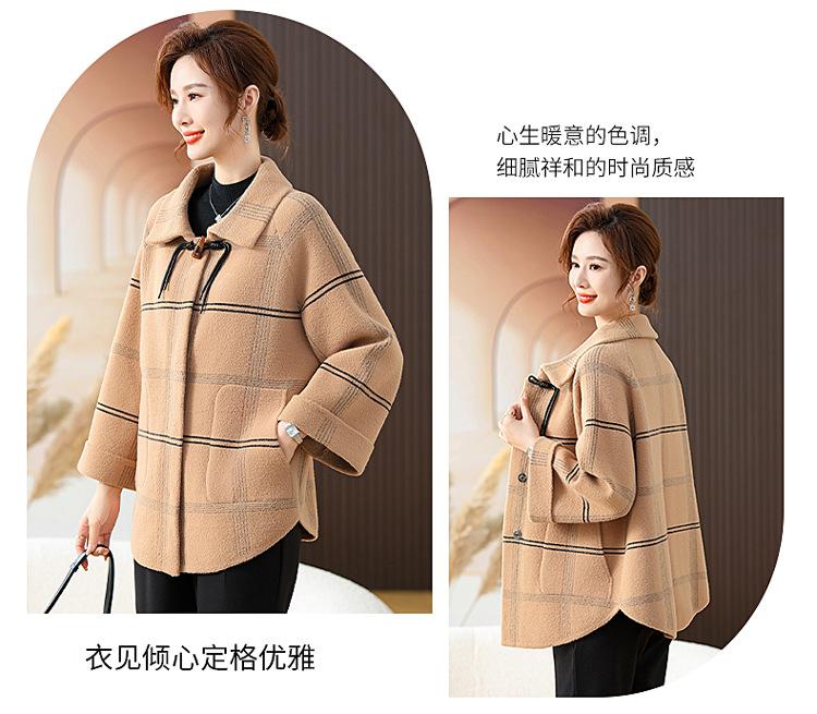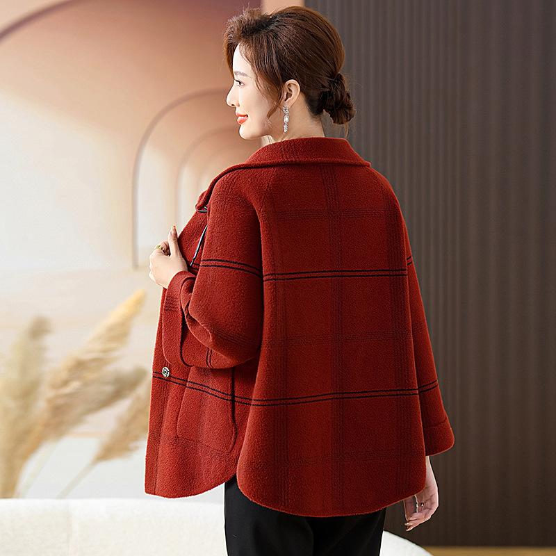 Elegante abrigo de cachemira de otoño e invierno para mamá, ropa para mujeres de mediana edad y mayores, abrigo corto de lana estilo occidental de talla grande
