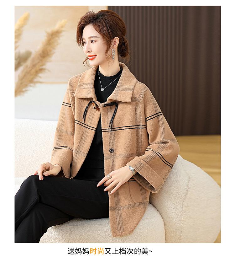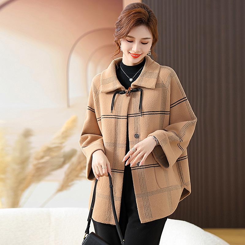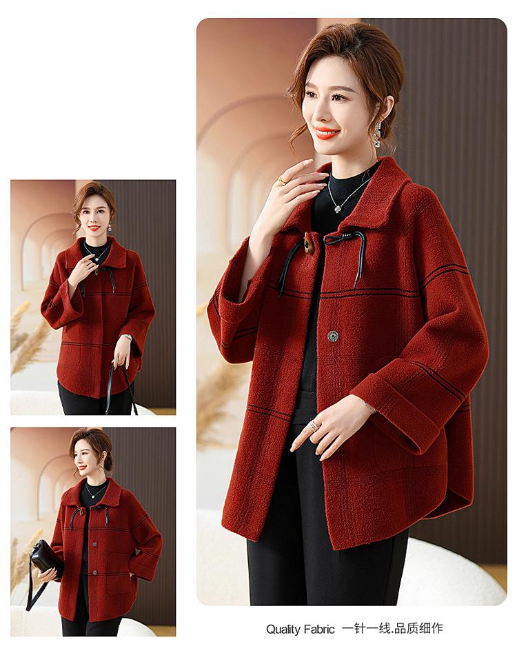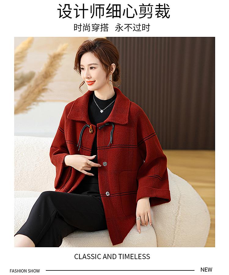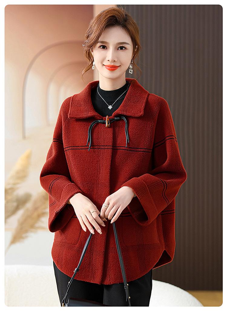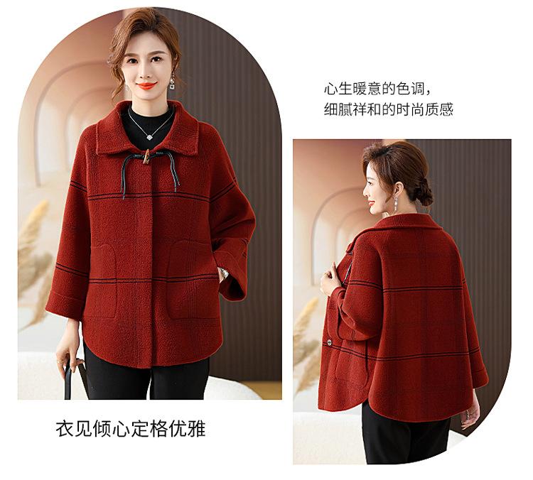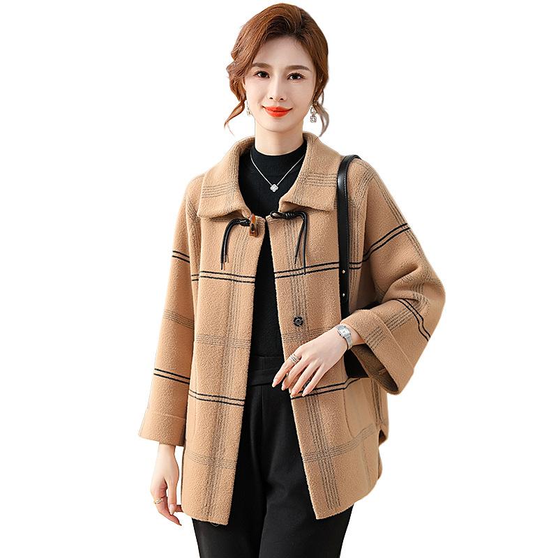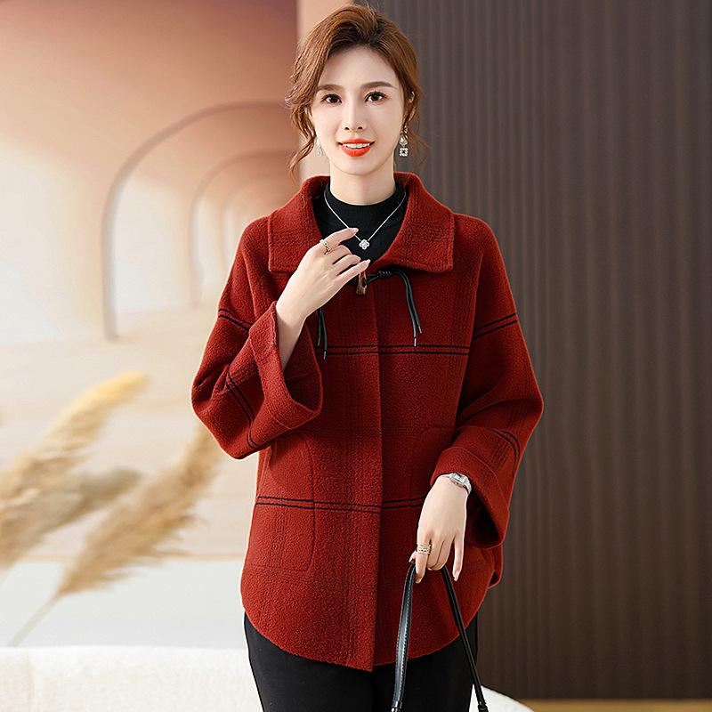 Elegante abrigo de cachemira de otoño e invierno para mamá, ropa para mujeres de mediana edad y mayores, abrigo corto de lana estilo occidental de talla grande