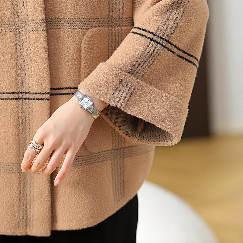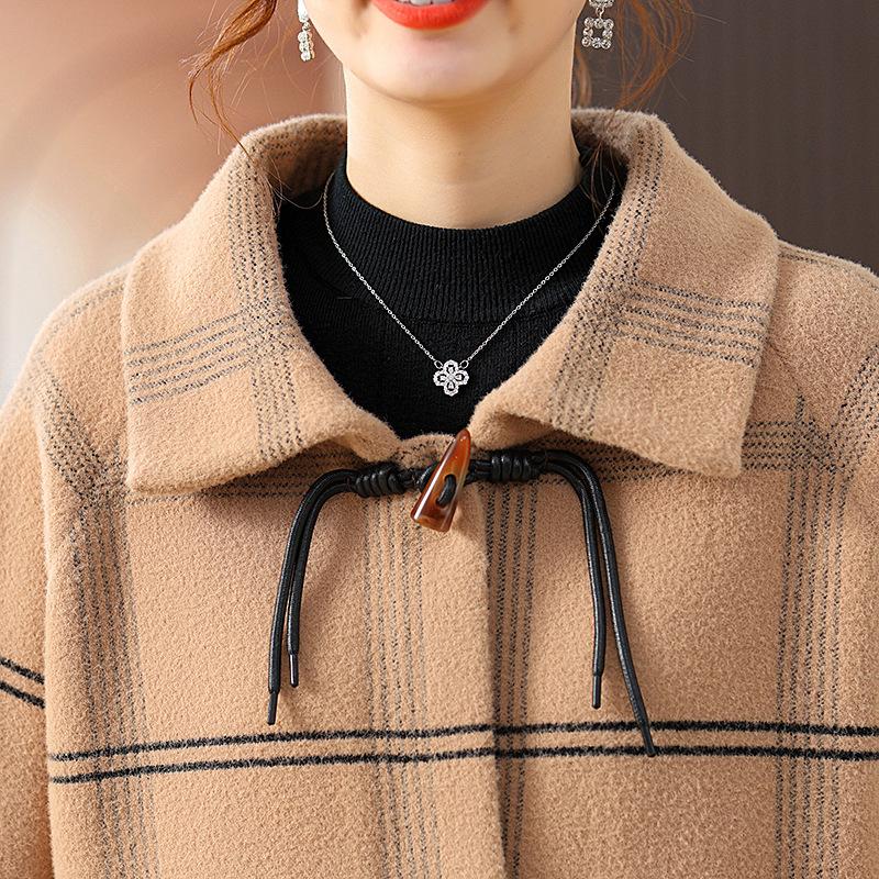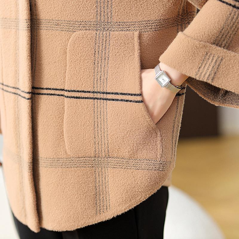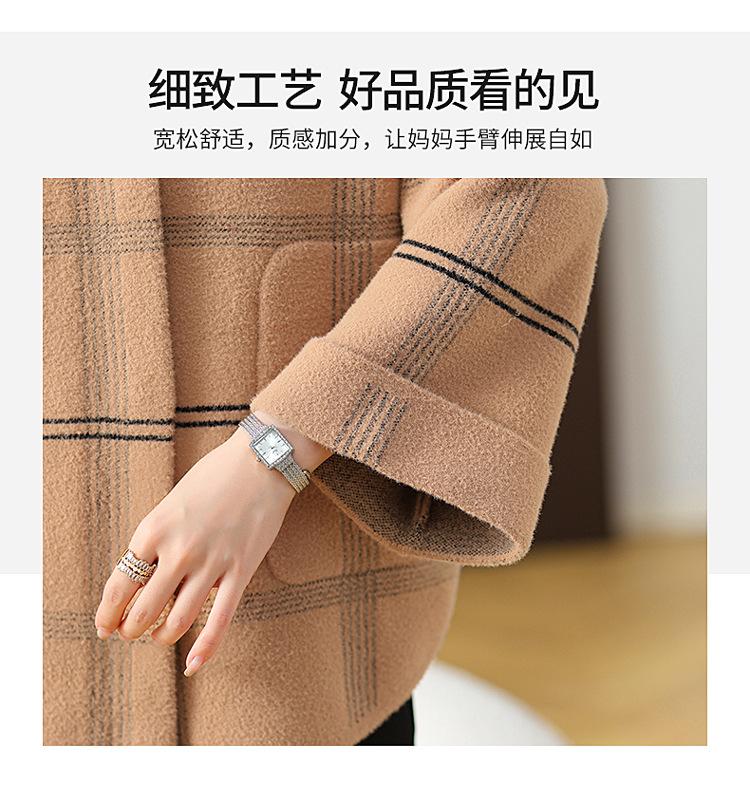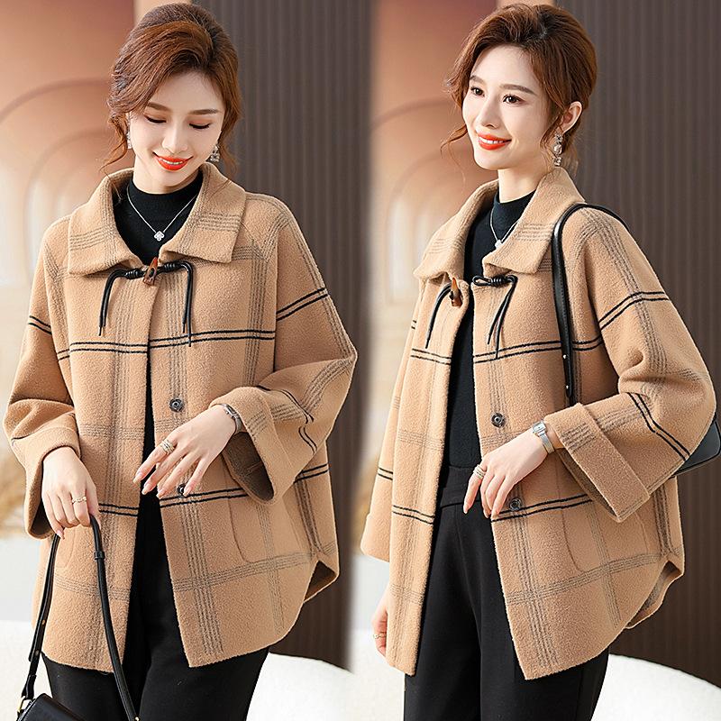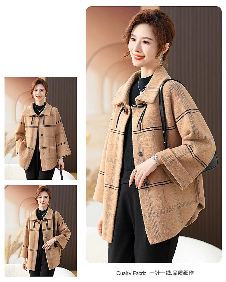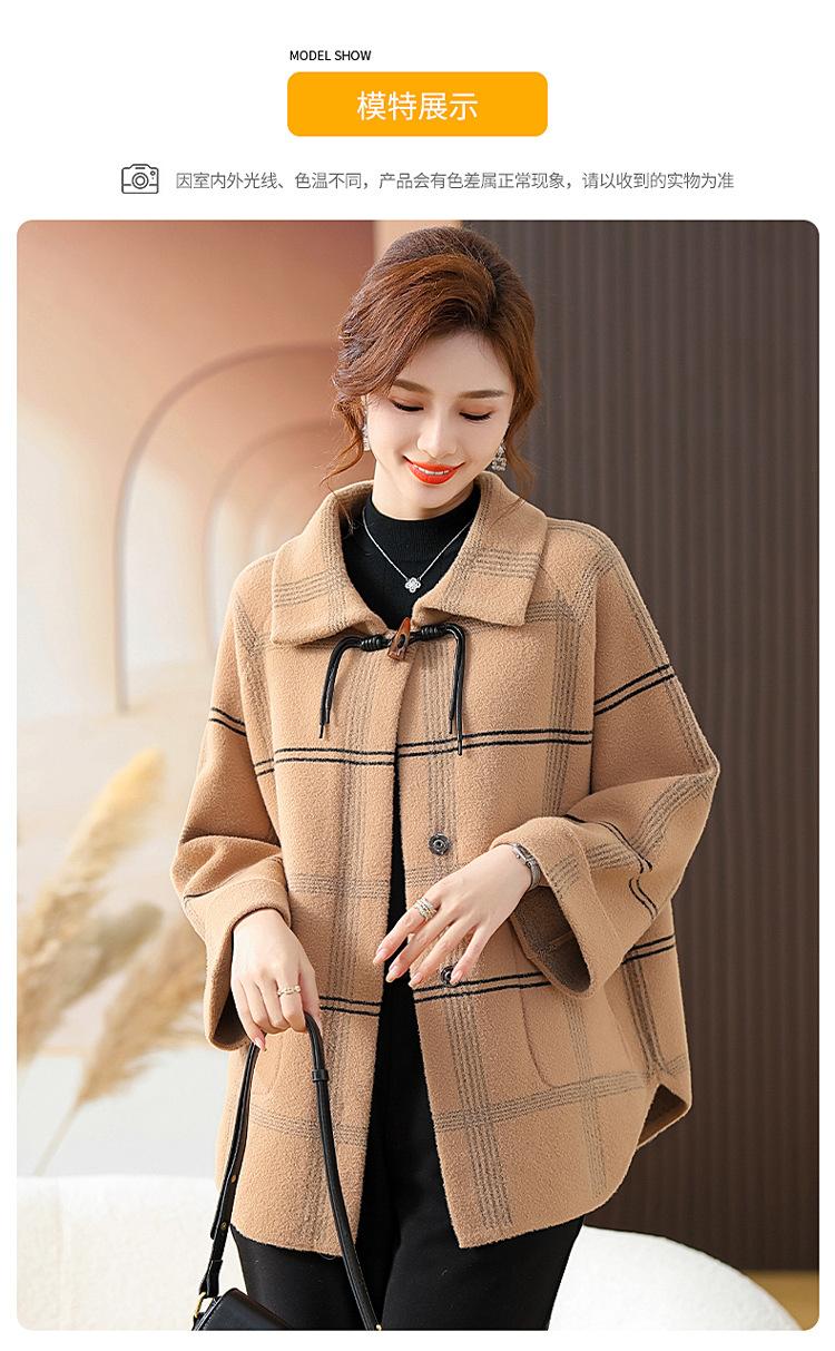 Elegante abrigo de cachemira de otoño e invierno para mamá, ropa para mujeres de mediana edad y mayores, abrigo corto de lana estilo occidental de talla grande