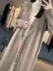 Cárdigan de cachemira gruesa de lana pura de longitud media estilo perezoso de estilo coreano, suéter de cachemira suelto de otoño e invierno con borlas para mujer